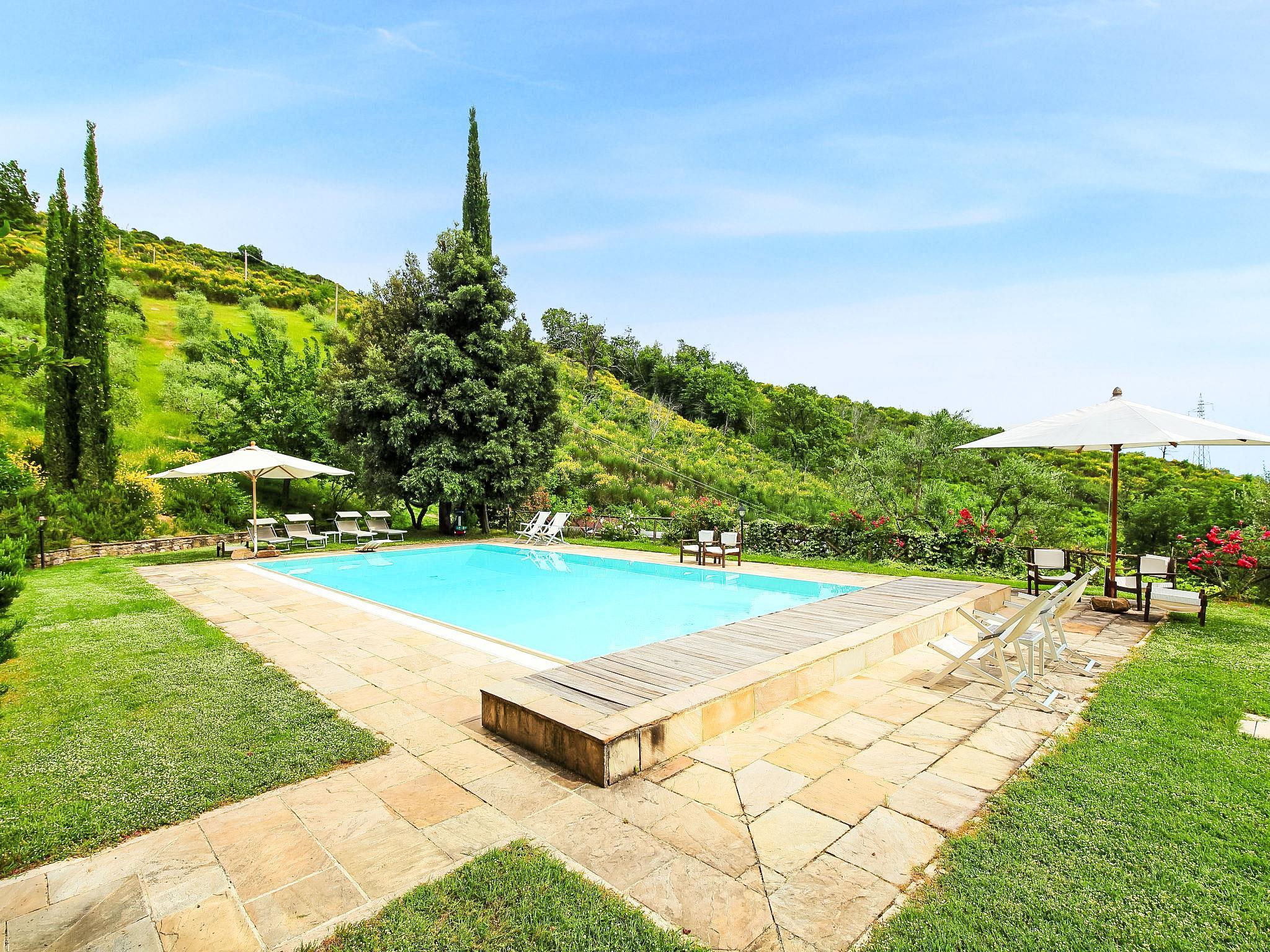 Situated at the top of a beautiful hill in the heart of Umbria, well connected to the main service centers, this house has an incomparable view of the valley. Ideal for relaxing holiday and with beautiful nature, without lacking of any kind of comfort. Villa " Paradiso", 330 m a.s.l., detached, surrounded by trees, meadows and fields. Property composed of main house and outbuilding 24 km from the centre of Perugia, in a secluded, sunny, elevated position, 36 km from the lake. Private: property 3 ha, wildlife garden and flowers, beautiful garden to relax, swimming pool (6 x 14 m, depth 120 - 250 cm, seasonal availability: 01.May. - 30.Sep.). Outdoor shower, garden furniture, barbecue, pool maintenance by the owner/gardener. In the house: WiFi. Parking at the house. E-charging station. Grocery 5 km, restaurant 5 km, bar 4 km, thermal baths "Terme Francescane" 40 km, bathing lake "Trasimeno" 36 km. Golf course (18 hole) 12 km, riding stable 7 km. Nearby attractions: Gubbio 35 km, Città di Castello 40 km, Assisi 40 km, Passignao sul Trasimeno 40 km, Arezzo 75 km. Please note: car recommended. Groups of teenagers on request only. Inside the park under the pergola there is a barbecue area with a refrigerator, wood oven, oven, gas stove and a large dining table. According to the season it is possible to taste the vegetable garden products.