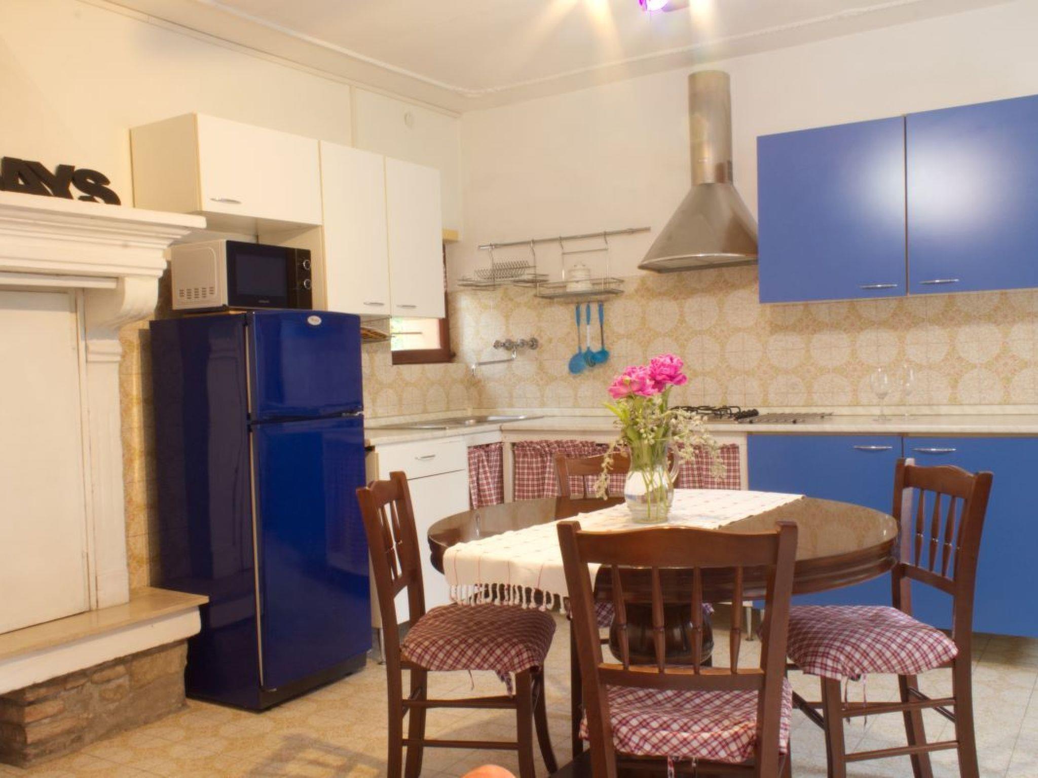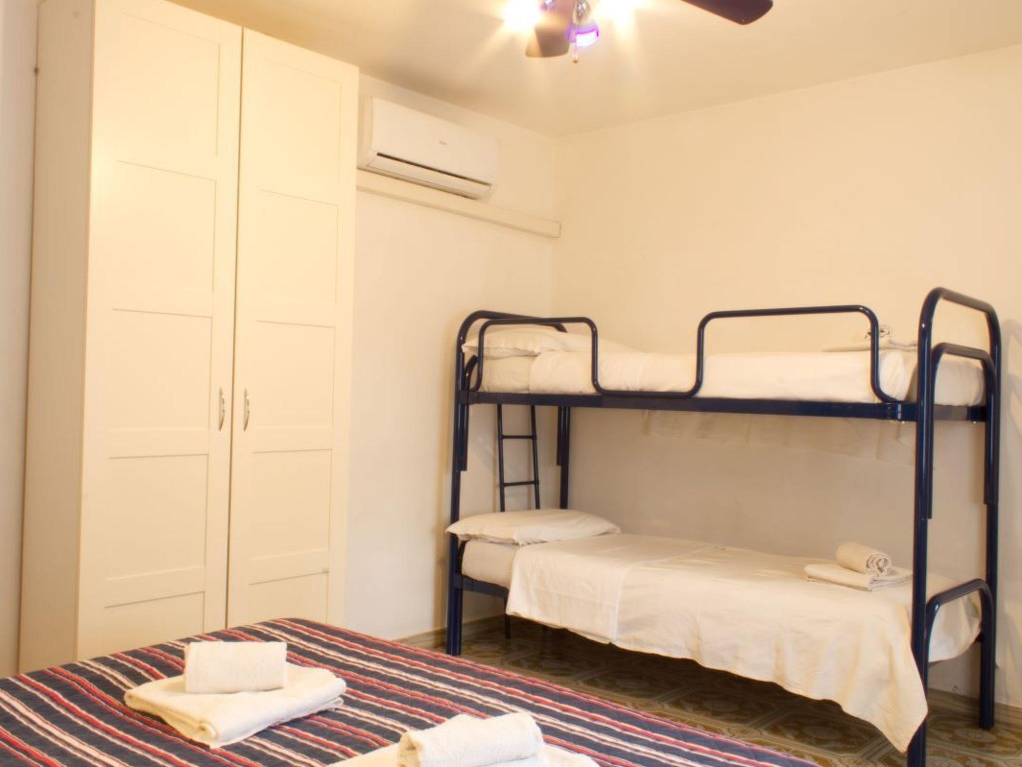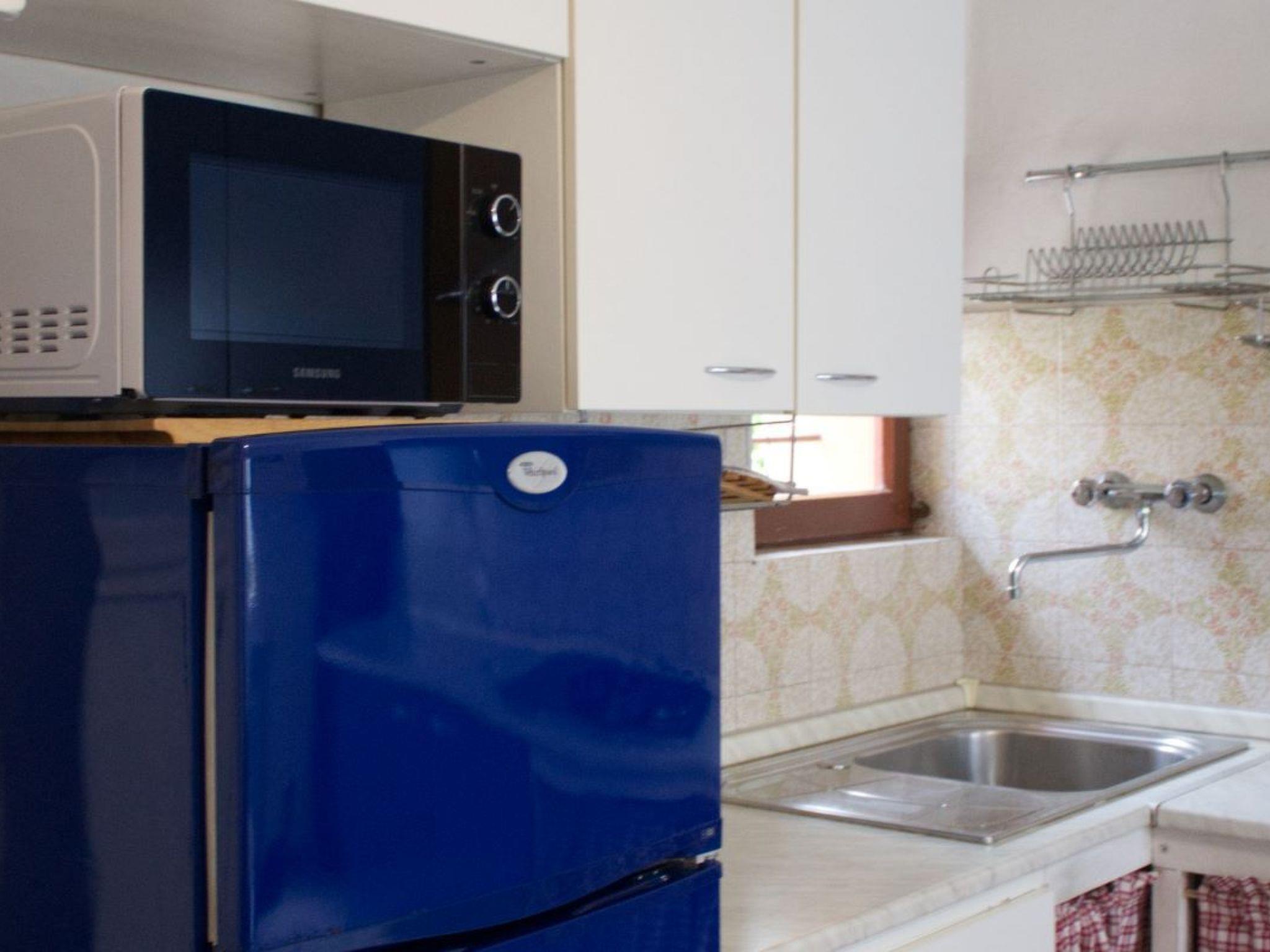 - Two-room apartment (blue) on the ground floor, about 55 sq m, consisting of bedroom with double bed and bunk bed, ceiling fan and wardrobe; living room with table and chairs, sofa bed (190x120), ceiling fan, bathroom with shower, washbasin, bidet and toilet (accessible for the disabled), TV. Heating/air conditioning on request with electric meter. The following equipment and services are included in the price: Kitchenette equipped with gas cooker, sink, crockery, dishes, cutlery, microwave, fridge and freezer, tablecloth, tea towels. Tourist tax, gas, electricity, bath towel, weekly change of linen, final cleaning. Free Internet wi-fi (max.speed 128 Kbsp).