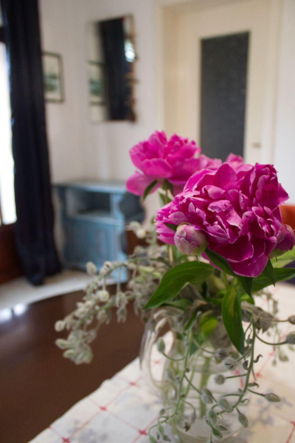 A simple house with grandparents' garden with original furniture and furnishings.