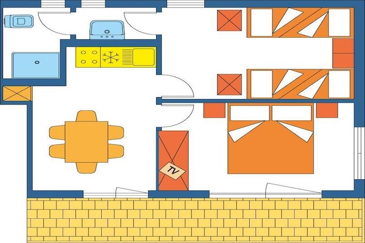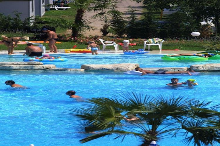 På 1. etage: (tekøkken(kogeplade(Komfur med fire kogeplader, gas), køleskab), stue / spisestue(Fjernsyn(parabol)), soveværelse(dobbeltseng), soveværelse(2x køjeseng), badeværelse(bruser, toilet), balkon, varme(gennem aircondition), klimaanlæg, havemøbler) Reception, Internetadgang, Parkering, Badeland, Vandrutschebane, Animation team, Butik, Supermarked, Billard, Cykeludlejning, Tennisbane, Bordtennis, Vandsport, Fodboldbane, Basketball, Restaurant, Bar, Take away Restaurant, Børneklub, Legeområde, tørretumbler(deles med andre gæster, betalt), vaskemaskine(deles med andre gæster, betalt), solstole, Parasol, swimmingpool(deles med andre gæster, udendørs, opened from Apr upto and including Sep), swimmingpool(deles med andre gæster, udendørs, inkl. separat børne swimmingpool (maks. dybde 50 cm), opened from Apr upto and including Sep), baby crib(paid)