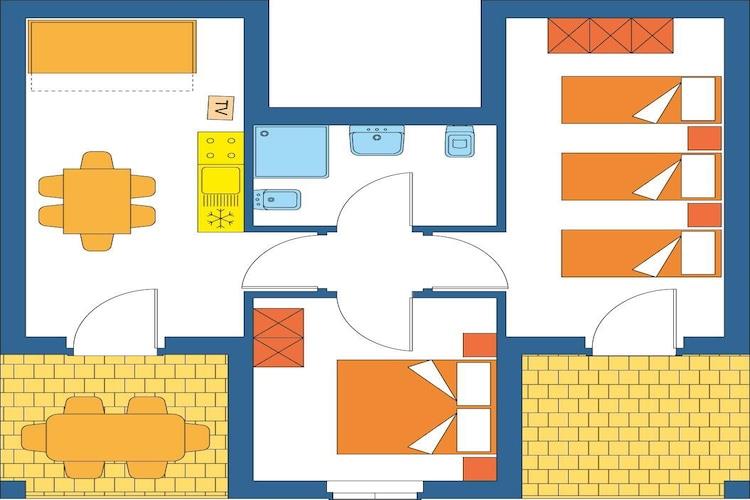 Stue(dobbeltsovesofa, Fjernsyn(parabol)), tekøkken(kogeplade(Komfur med fire kogeplader, gas), køleskab), soveværelse(dobbeltseng), soveværelse(enkeltseng, enkeltseng, enkeltseng), badeværelse(bruser, toilet), Reception, Internetadgang, Parkering, Badeland, Vandrutschebane, Animation team, Butik, Supermarked, Billard, Cykeludlejning, Tennisbane, Bordtennis, Vandsport, Fodboldbane, Basketball, Restaurant, Bar, Take away Restaurant, Animation Team for voksne, Børneklub, Legeområde, tørretumbler(deles med andre gæster, betalt), vaskemaskine(deles med andre gæster, betalt), balkon eller terrasse, varme(gennem aircondition), klimaanlæg, havemøbler, solstole, Parasol, swimmingpool(deles med andre gæster, udendørs, opened from Apr upto and including Sep), swimmingpool(deles med andre gæster, udendørs, inkl. separat børne swimmingpool (maks. dybde 50 cm), opened from Apr upto and including Sep), baby crib(paid)