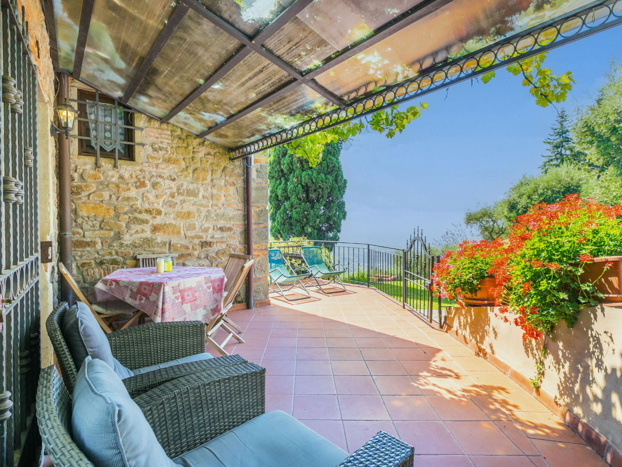 "La Cupola: Geranio", 3-room apartment 70 m2 on 2 levels. Beautiful and rustic furnishings: living room with satellite TV. Kitchen (mini-oven, dishwasher, 4 gas rings, freezer, electric coffee machine) with open-hearth fireplace and dining table. Shower/WC. Upper floor: 1 room with 1 sofabed and 1 french bed (160 cm). 1 room with 2 beds. Gas heating. Terrace partly roofed. Terrace furniture, box-room. Marvellous panoramic view of the valley. Facilities: children's high chair, baby cot for up to 2 year olds. Please note: non-smokers only. Private entrance, smoke alarm, fire extinguisher. IT047012B5NFRBJ2HH