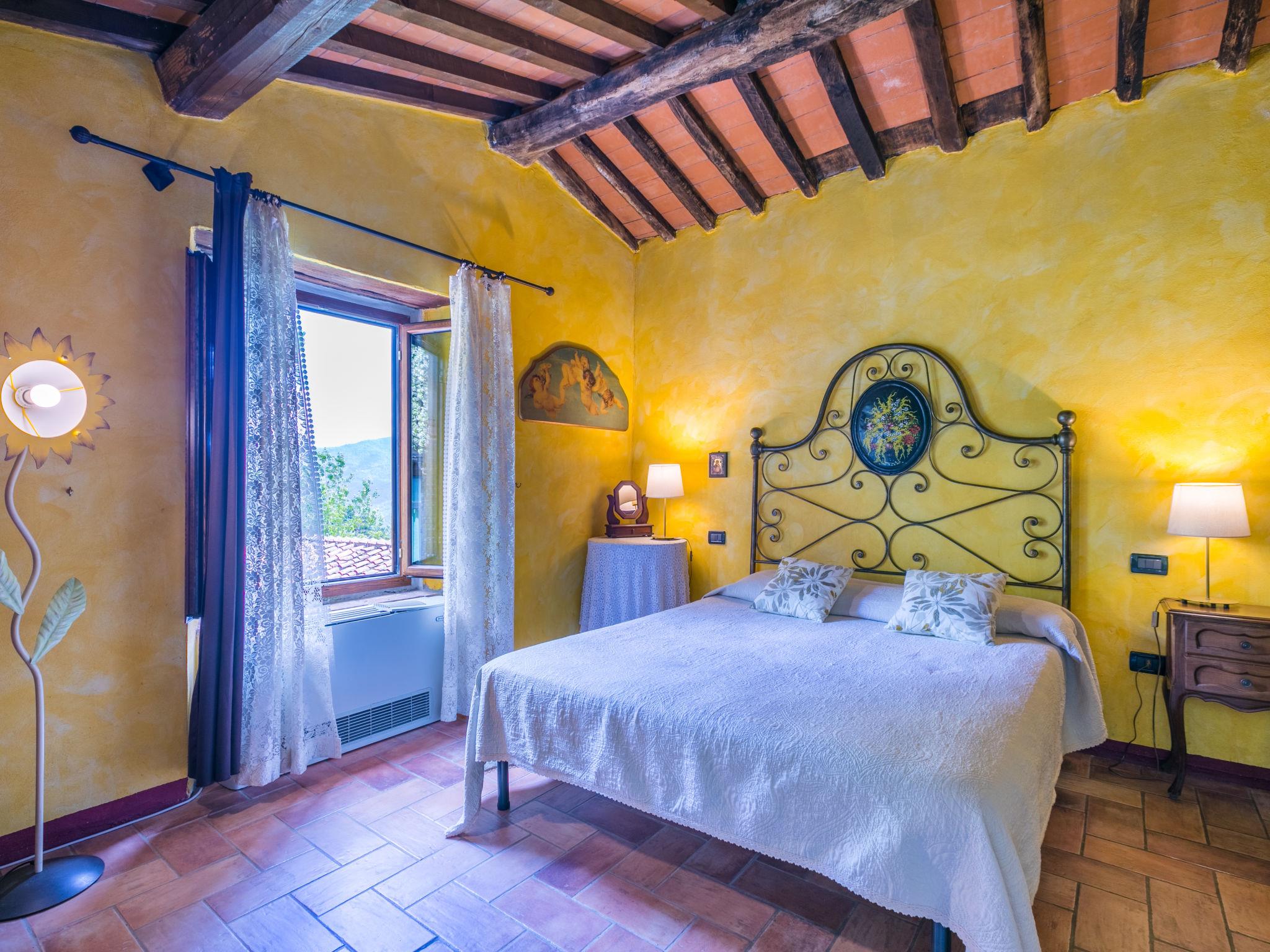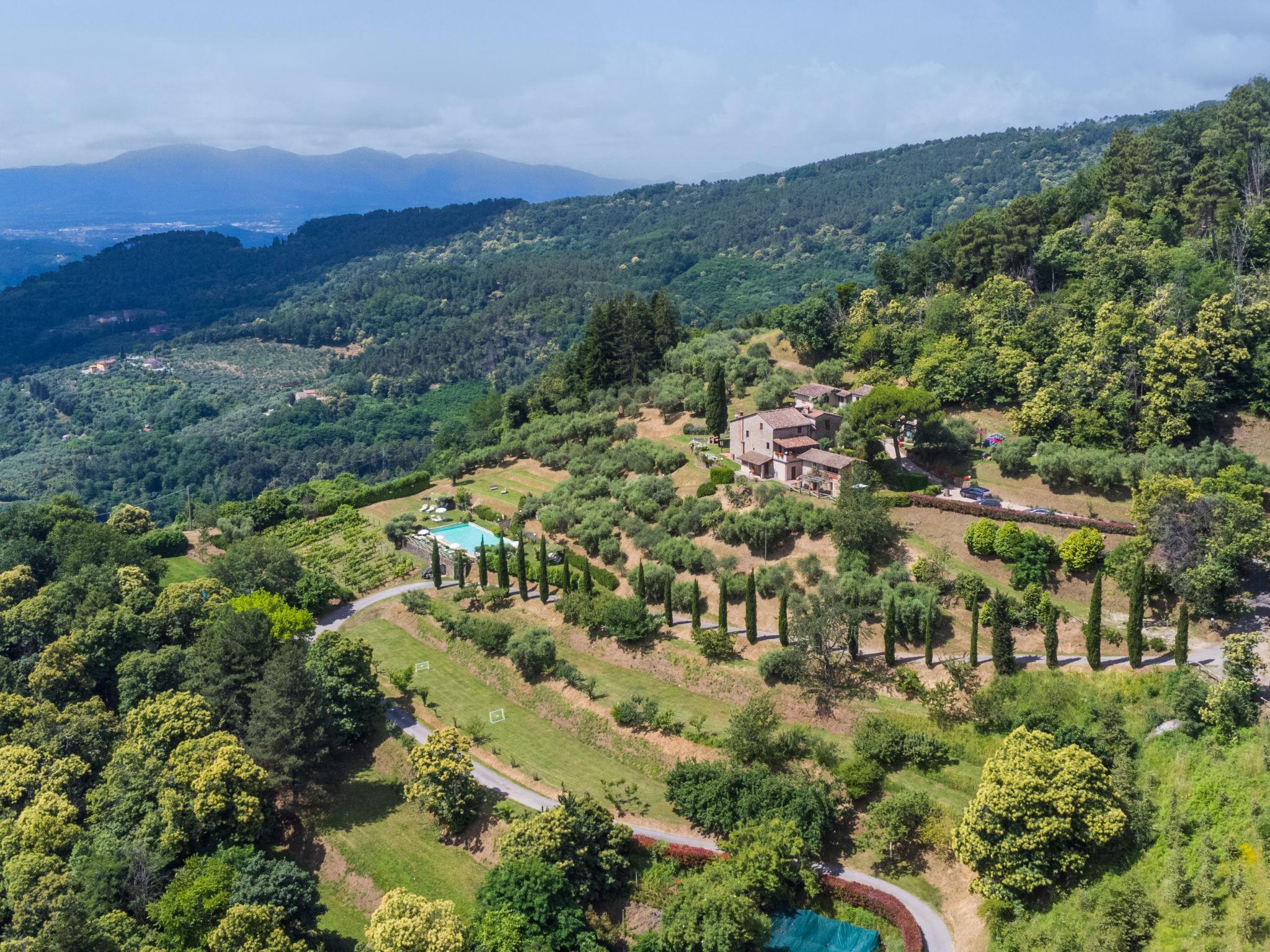 Agriturismo "La Cupola", 500 m a.s.l., surrounded by trees and vineyards. 3 houses in the residence. 4 apartments in the residence. 5.5 km from the centre of Pescia, 20 km from the centre of Lucca, 45 km from the centre of Pisa, in a secluded position on a slope, 57 km from the sea, in the countryside. For shared use: property 40'000 m2, terraced garden (not fenced) with plants, meadow, swimming pool (19 x 8 m, depth 120 - 160 cm, seasonal availability: 26.Apr. - 27.Sep.). Children's pool, pergola, garden furniture, barbecue. In the house: WiFi, central heating system, washing machine (for shared use), heating to be paid on the spot, heating available only from 01.Nov. - 30.Mar.. 600 m long steep motor access (via unmade road). Parking on the premises. E-charging station. Supermarket 5.5 km, bus stop 3 km, sandy beach "Viareggio" 57 km. Golf course (18 hole) 14 km. Nearby attractions: Collodi 9 km, Montecarlo 11 km, Montecatini Terme 13 km, Vinci, Pistoia 32 km, San Miniato 38 km. Residence with electric gates.