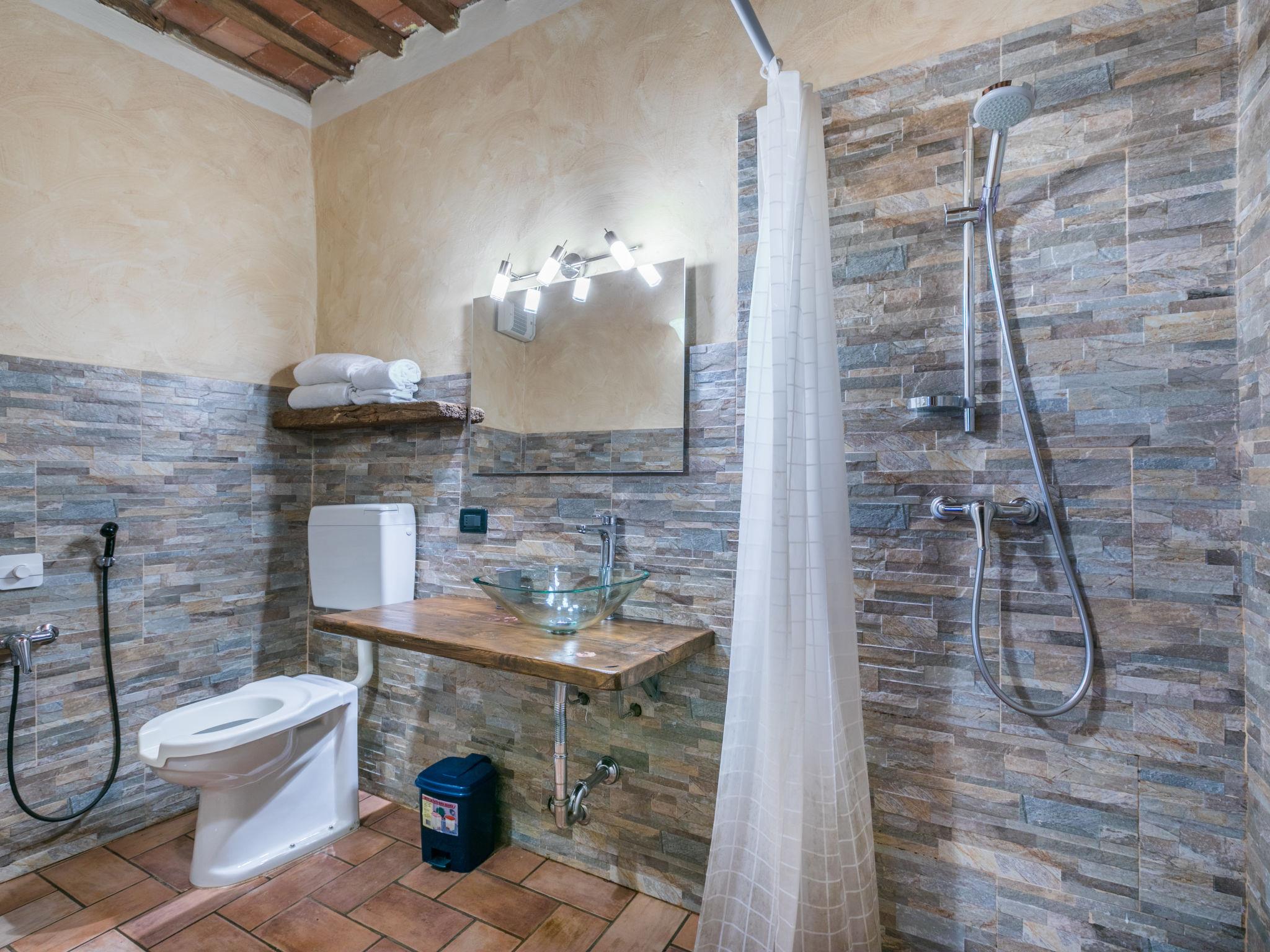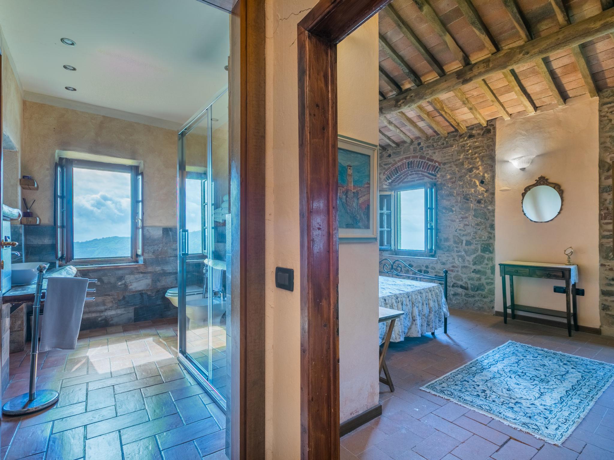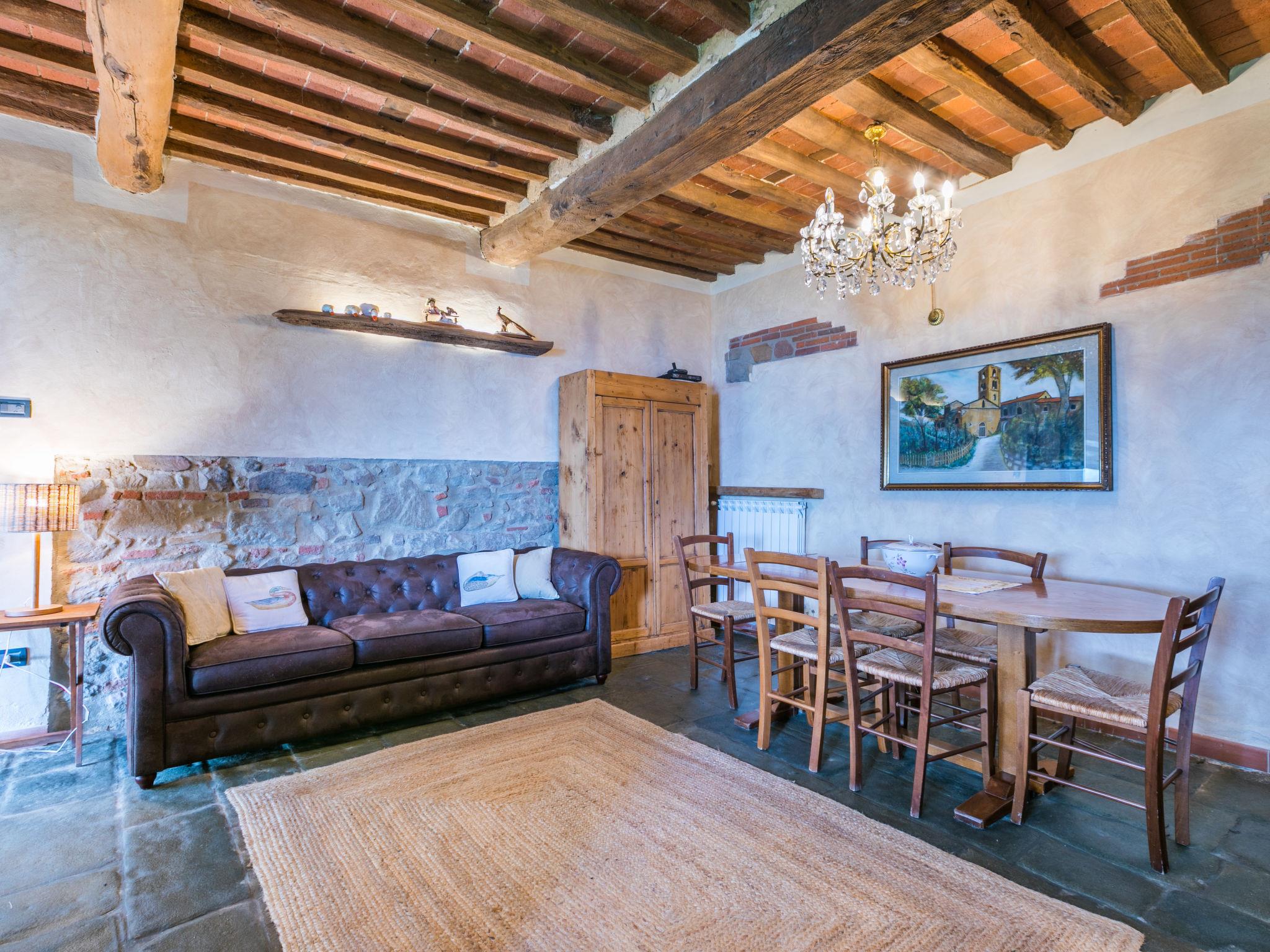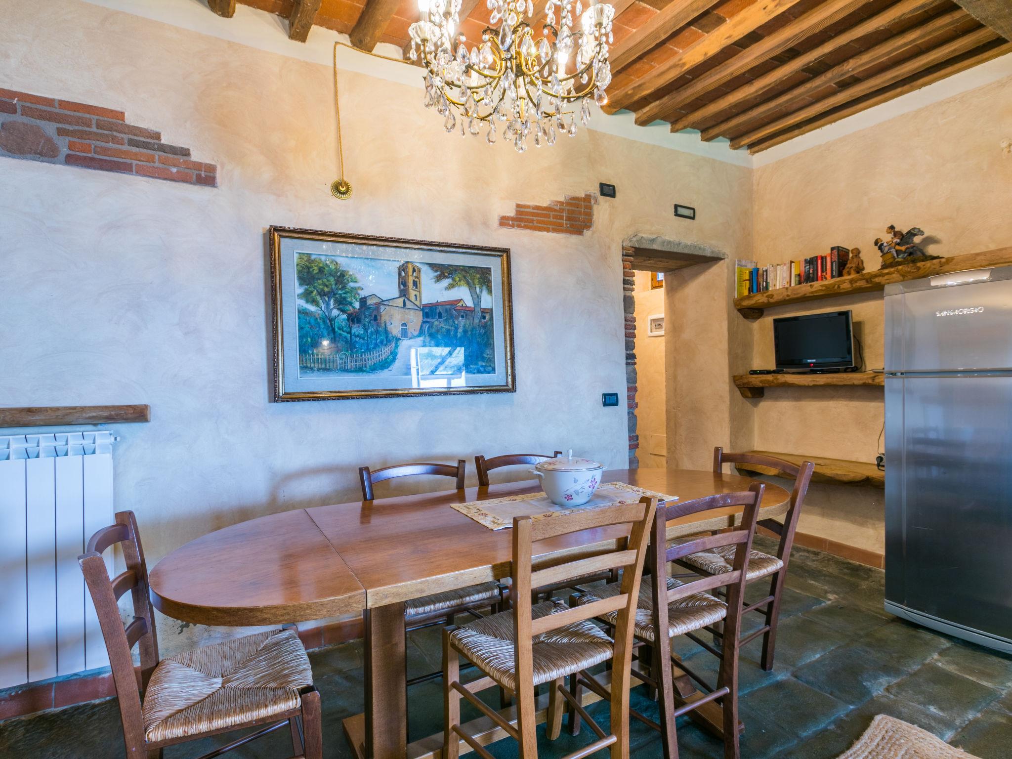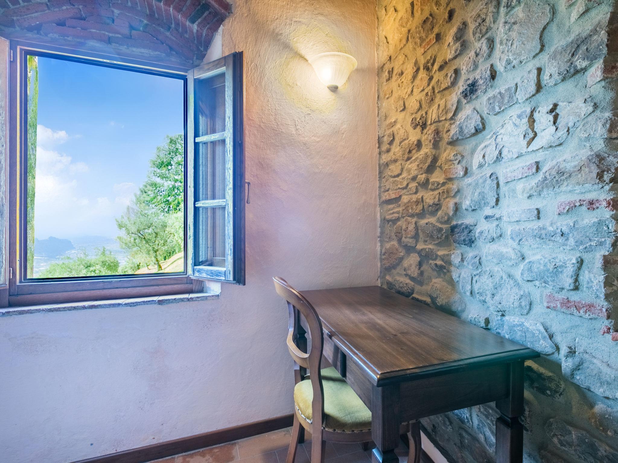 Agriturismo "La Cupola", 500 m a.s.l., surrounded by trees and vineyards. 3 houses in the residence. 4 apartments in the residence. 5.5 km from the centre of Pescia, 20 km from the centre of Lucca, 45 km from the centre of Pisa, in a secluded position on a slope, 57 km from the sea, in the countryside. For shared use: property 40'000 m2, terraced garden (not fenced) with plants, meadow, swimming pool (19 x 8 m, depth 120 - 160 cm, seasonal availability: 26.Apr. - 27.Sep.). Children's pool, pergola, garden furniture, barbecue. In the house: WiFi, central heating system, washing machine (for shared use), heating to be paid on the spot, heating available only from 01.Nov. - 30.Mar.. 600 m long steep motor access (via unmade road). Parking on the premises. E-charging station. Supermarket 5.5 km, bus stop 3 km, sandy beach "Viareggio" 57 km. Golf course (18 hole) 14 km. Nearby attractions: Collodi 9 km, Montecarlo 11 km, Montecatini Terme 13 km, Vinci, Pistoia 32 km, San Miniato 38 km. Residence with electric gates.