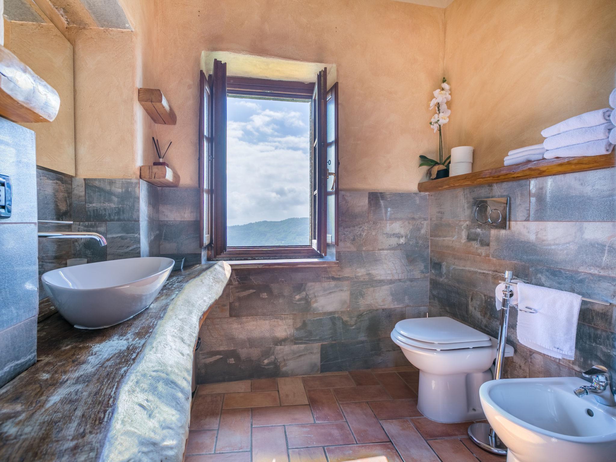 "La Cupola: Tulipano", 4-room apartment 88 m2 on 2 levels. Renovated in 2016, beautiful and rustic furnishings: living room with open-hearth fireplace, dining table and satellite TV. 1 room with 1 french bed (160 cm), shower/WC. Open kitchen (mini-oven, dishwasher, 4 gas rings, freezer, electric coffee machine). Upper floor: 2 rooms, each room with 1 french bed (160 cm). Shower/WC. Gas heating. Terrace roofed, patio. Terrace furniture. Very beautiful panoramic view. Facilities: children's high chair, baby cot for up to 2 year olds. Internet (WiFi, free). Please note: non-smokers only. Private entrance, smoke alarm, fire extinguisher. The bedroom and bathroom on the ground floor are suitable for the disabled. IT047012B5NFRBJ2HH