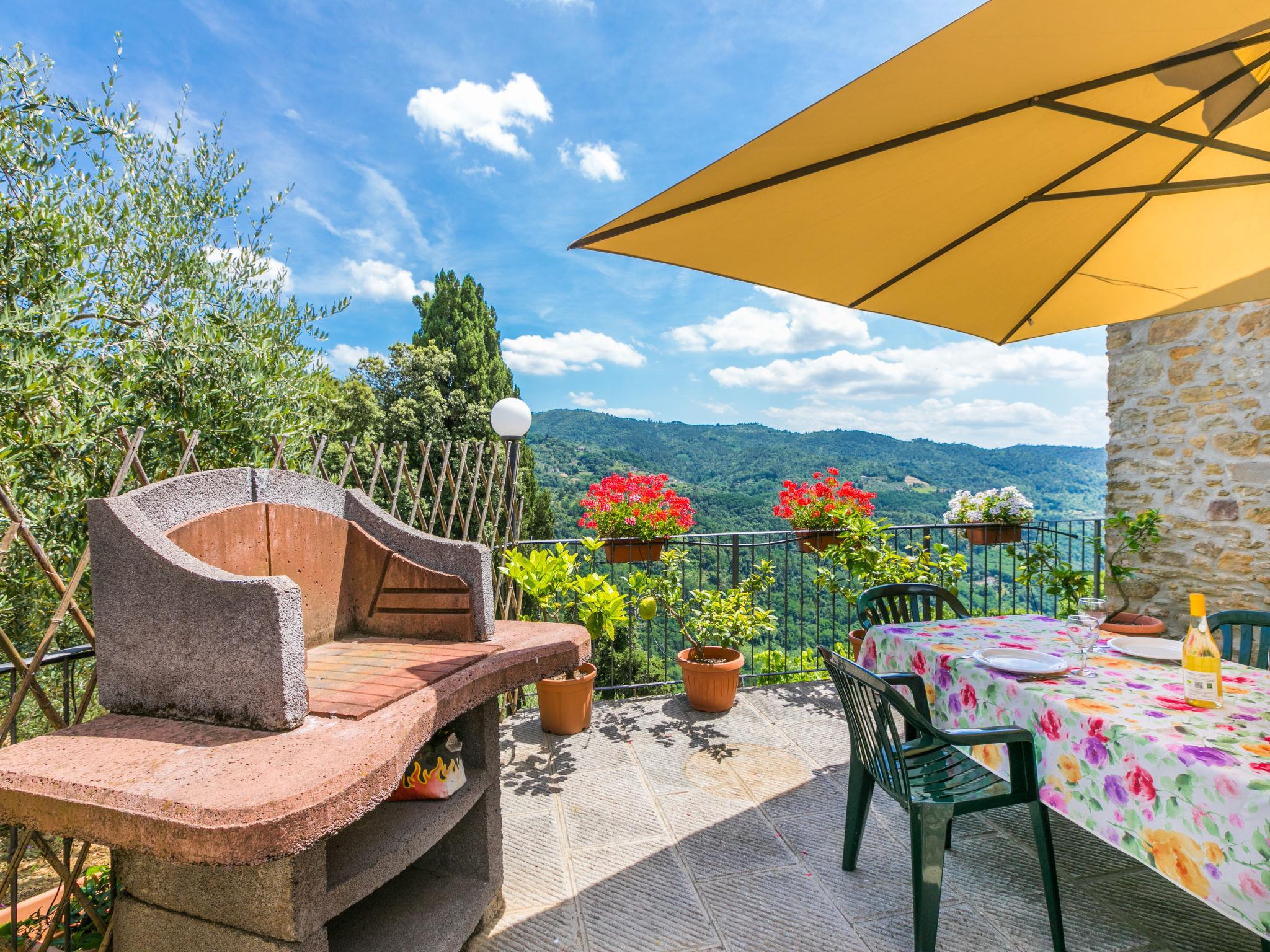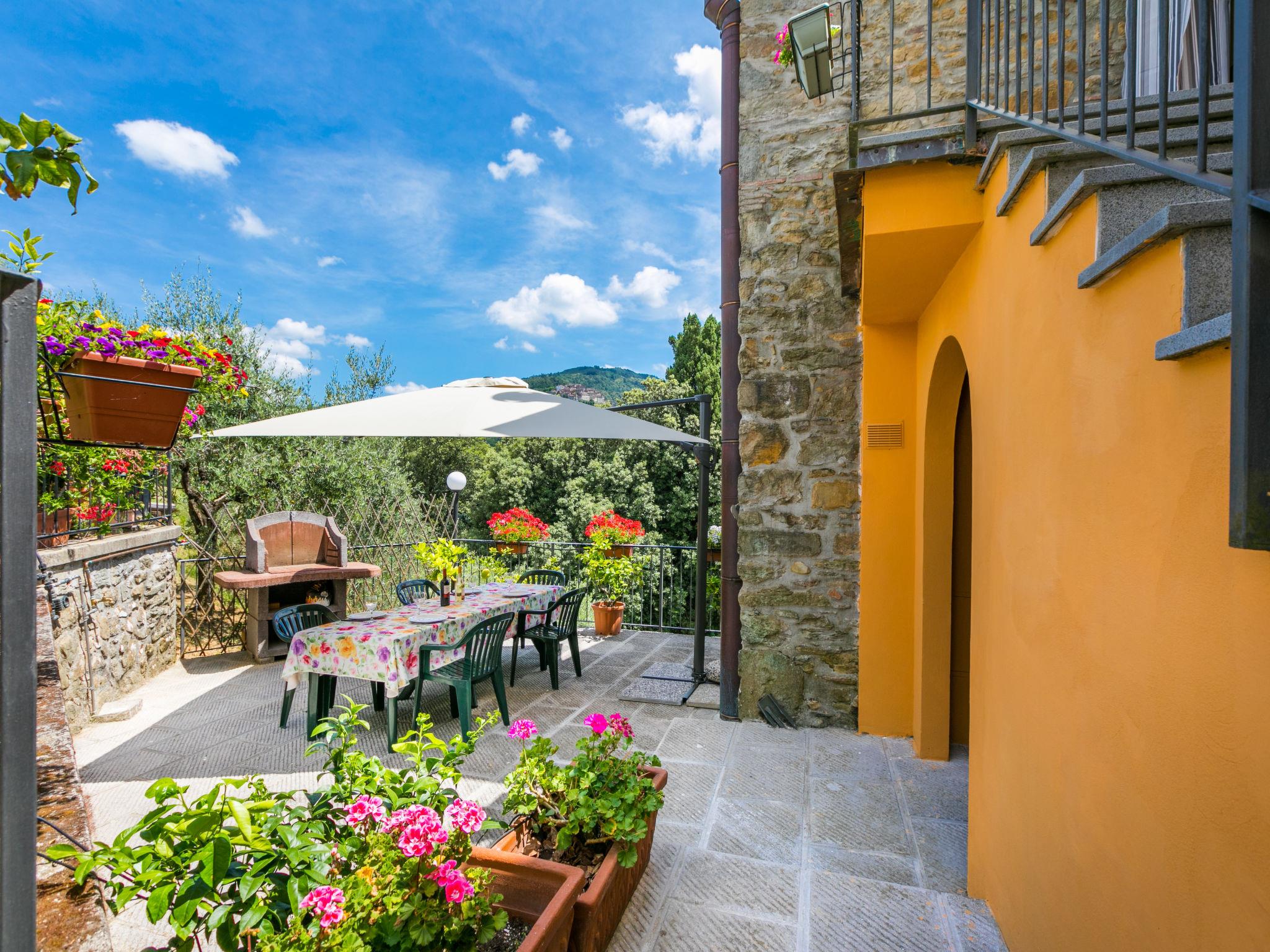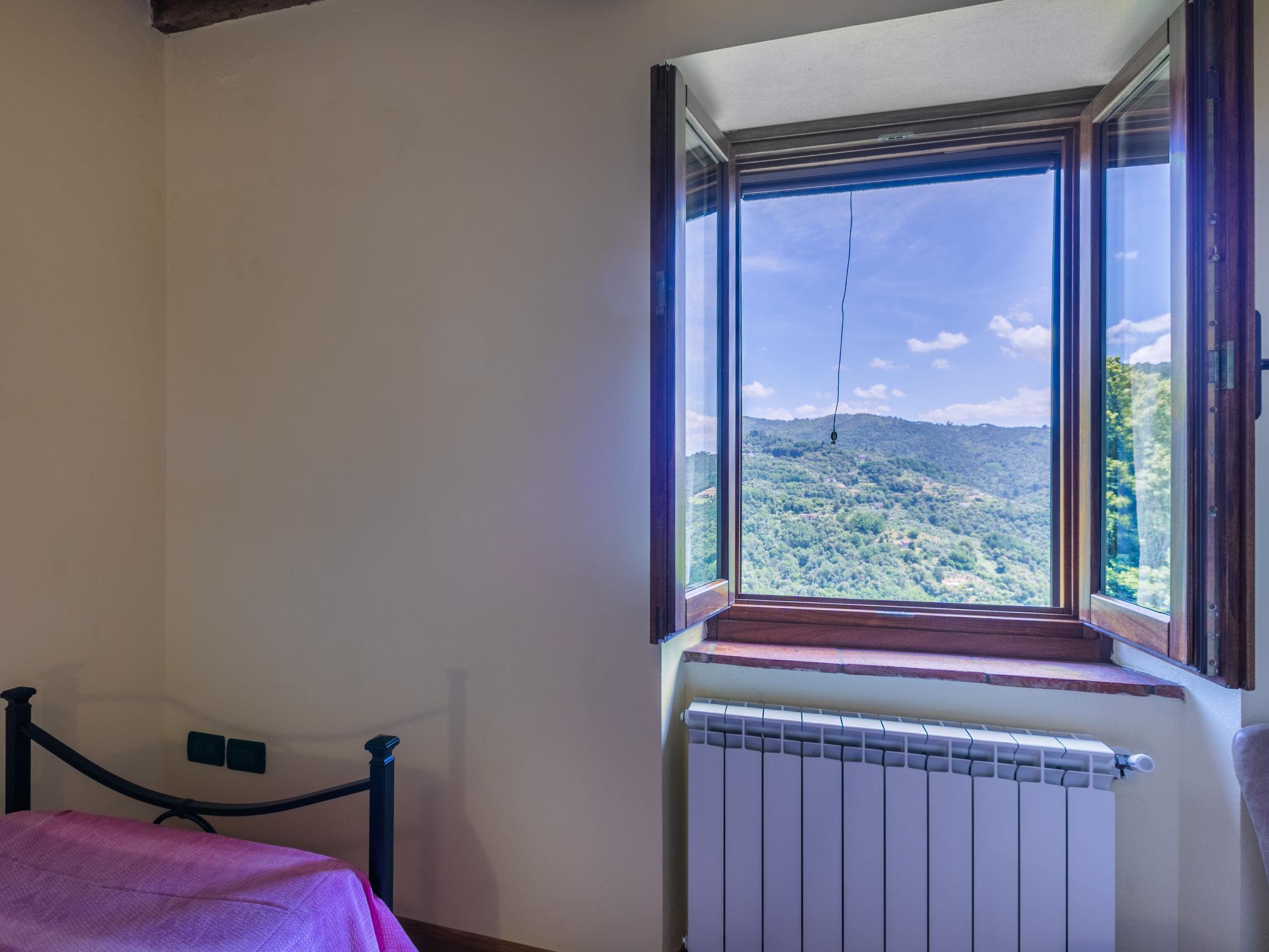 House "Poggetto Pellegrini", 370 m a.s.l., renovated. 2 apartments in the property. In the hamlet Aramo 8.5 km from the centre of Pescia, 29 km from the centre of Lucca, 55 km from the centre of Pisa, in an elevated position on a slope, 64 km from the sea. For shared use: property 20'000 m2, terraced garden plants and trees, swimming pool (above ground) (7 x 3 m, depth 130 cm, seasonal availability: 01.Jun. - 01.Oct.). Outdoor shower. In the house: washing machine (for shared use), heating to be paid on the spot, heating available only from 01.Nov. - 07.Apr.. Breakfast possible (extra). 300 m long motor access to the house (via unmade road). Parking on the premises. Shop 5 km, bus stop 100 m, sandy beach "Viareggio" 64 km, thermal baths "Montecatini Terme" 18 km. Golf course (18 hole) 30 km. Nearby attractions: Collodi 14 km, Villa Garzoni Butterfly 14 km, Montecarlo 16 km, Pistoia 39 km, San Miniato 42 km, Firenze 70 km. Please note: car recommended. The owner lives on the same property. The owner has a dog.