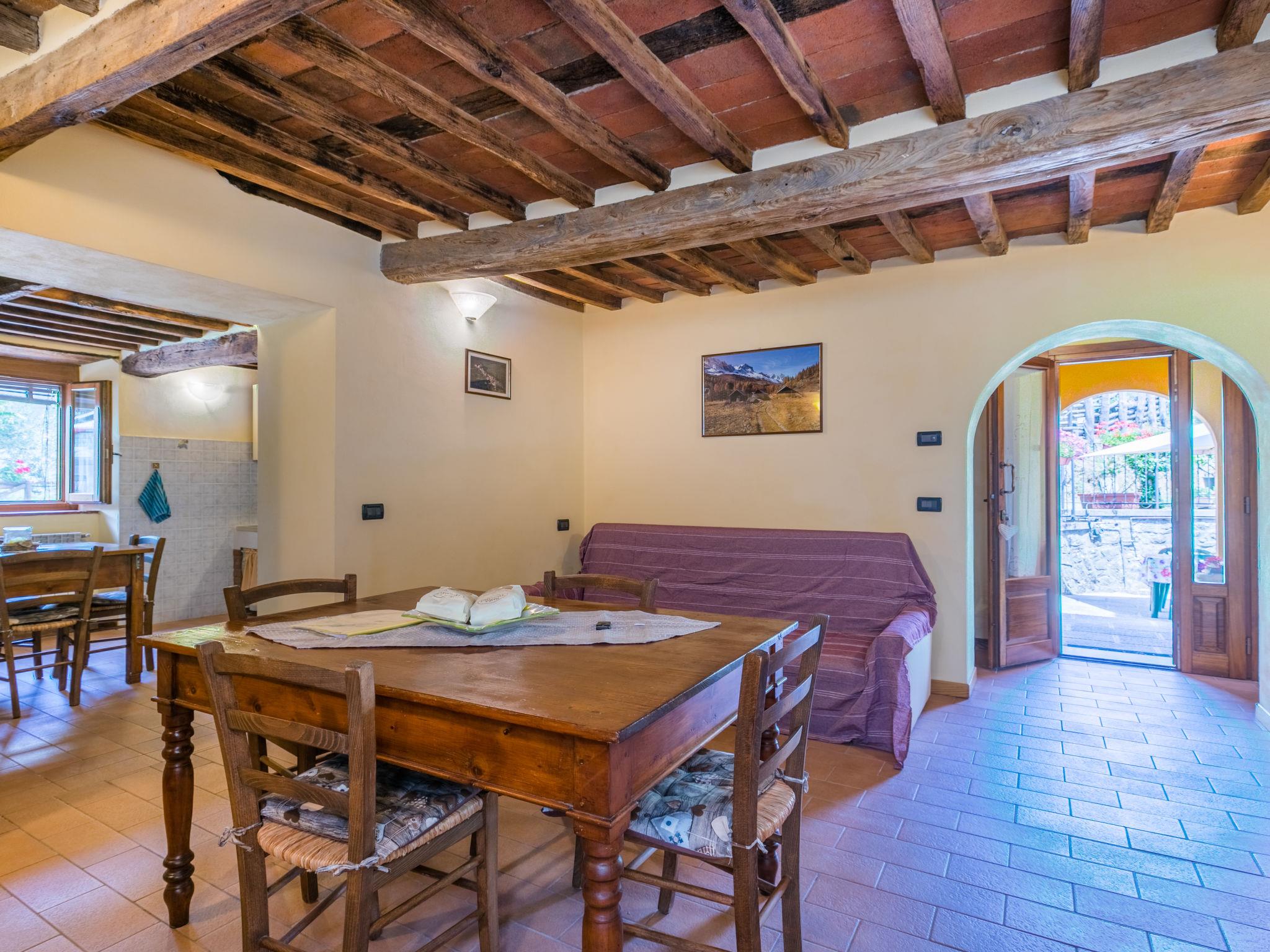 "Poggetto 1", 3-room apartment 57 m2, on the ground floor. Beautiful and rustic furnishings: living/dining room with satellite TV. 1 double bedroom. 1 room with 1 bed. Open kitchen (mini-oven, 4 gas rings, freezer, electric coffee machine). Shower/bidet/WC. Heating. Terrace. Terrace furniture, barbecue, deck chairs. Panoramic view. Facilities: iron, mosquito net. Internet (WiFi, free). Please note: non-smokers only. Private entrance. IT047012B5DAKAPSPD