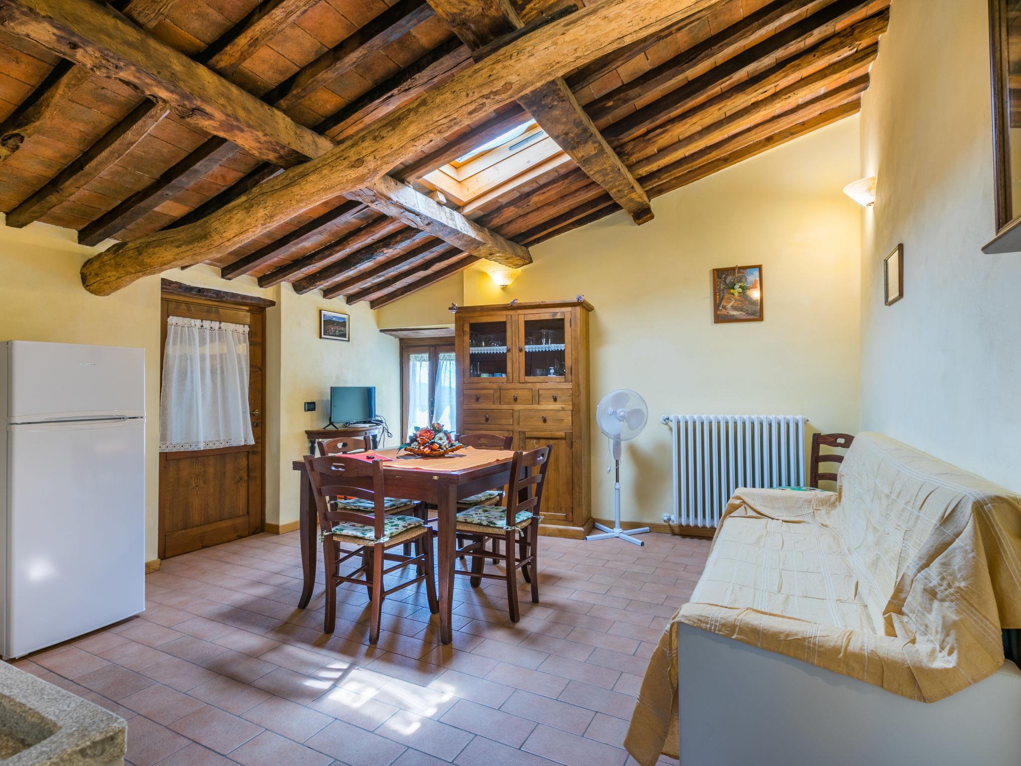 "Poggetto 2", 3-room apartment 57 m2 on 1st floor. Beautiful and rustic furnishings: living/dining room with satellite TV. 1 double bedroom. 1 children's room with sloping ceilings with 1 bed. Open kitchen (mini-oven, 4 gas rings, freezer, electric coffee machine). Shower/bidet/WC. Heating. Terrace. Terrace furniture, barbecue, deck chairs. Panoramic view. Facilities: iron, mosquito net. Internet (WiFi, free). Please note: non-smokers only. Private entrance. IT047012B5DAKAPSPD