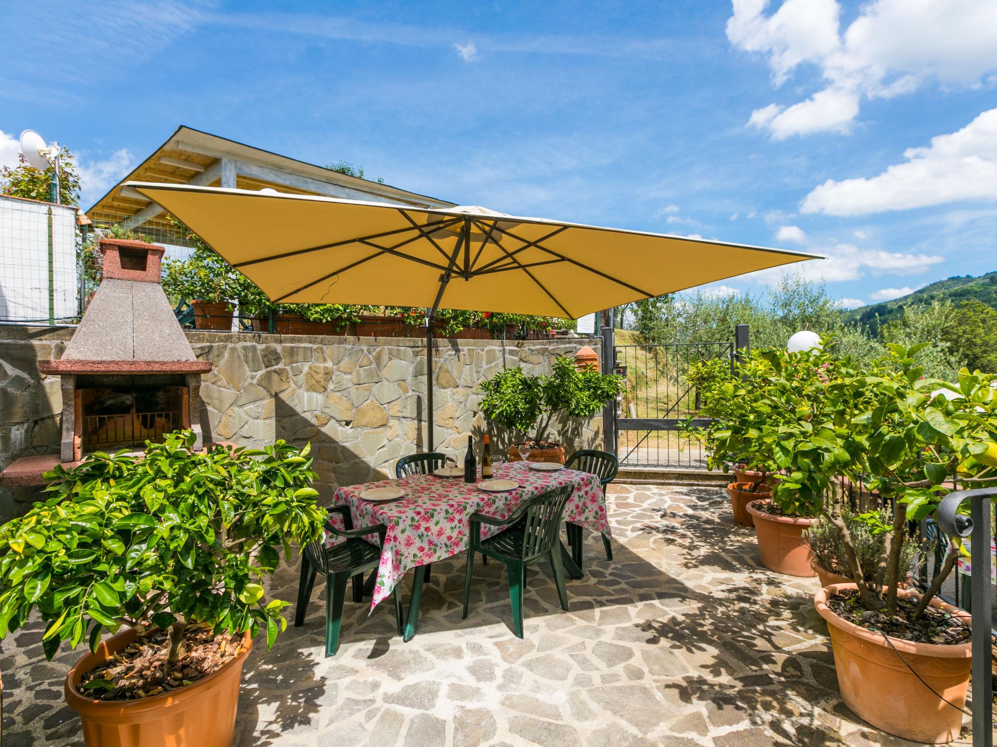 House "Poggetto Pellegrini", 370 m a.s.l., renovated. 2 apartments in the property. In the hamlet Aramo 8.5 km from the centre of Pescia, 29 km from the centre of Lucca, 55 km from the centre of Pisa, in an elevated position on a slope, 64 km from the sea. For shared use: property 20'000 m2, terraced garden plants and trees, swimming pool (above ground) (7 x 3 m, depth 130 cm, seasonal availability: 01.Jun. - 01.Oct.). Outdoor shower. In the house: washing machine (for shared use), heating to be paid on the spot, heating available only from 01.Nov. - 07.Apr.. Breakfast possible (extra). 300 m long motor access to the house (via unmade road). Parking on the premises. Shop 5 km, bus stop 100 m, sandy beach "Viareggio" 64 km, thermal baths "Montecatini Terme" 18 km. Golf course (18 hole) 30 km. Nearby attractions: Collodi 14 km, Villa Garzoni Butterfly 14 km, Montecarlo 16 km, Pistoia 39 km, San Miniato 42 km, Firenze 70 km. Please note: car recommended. The owner lives on the same property. The owner has a dog.
