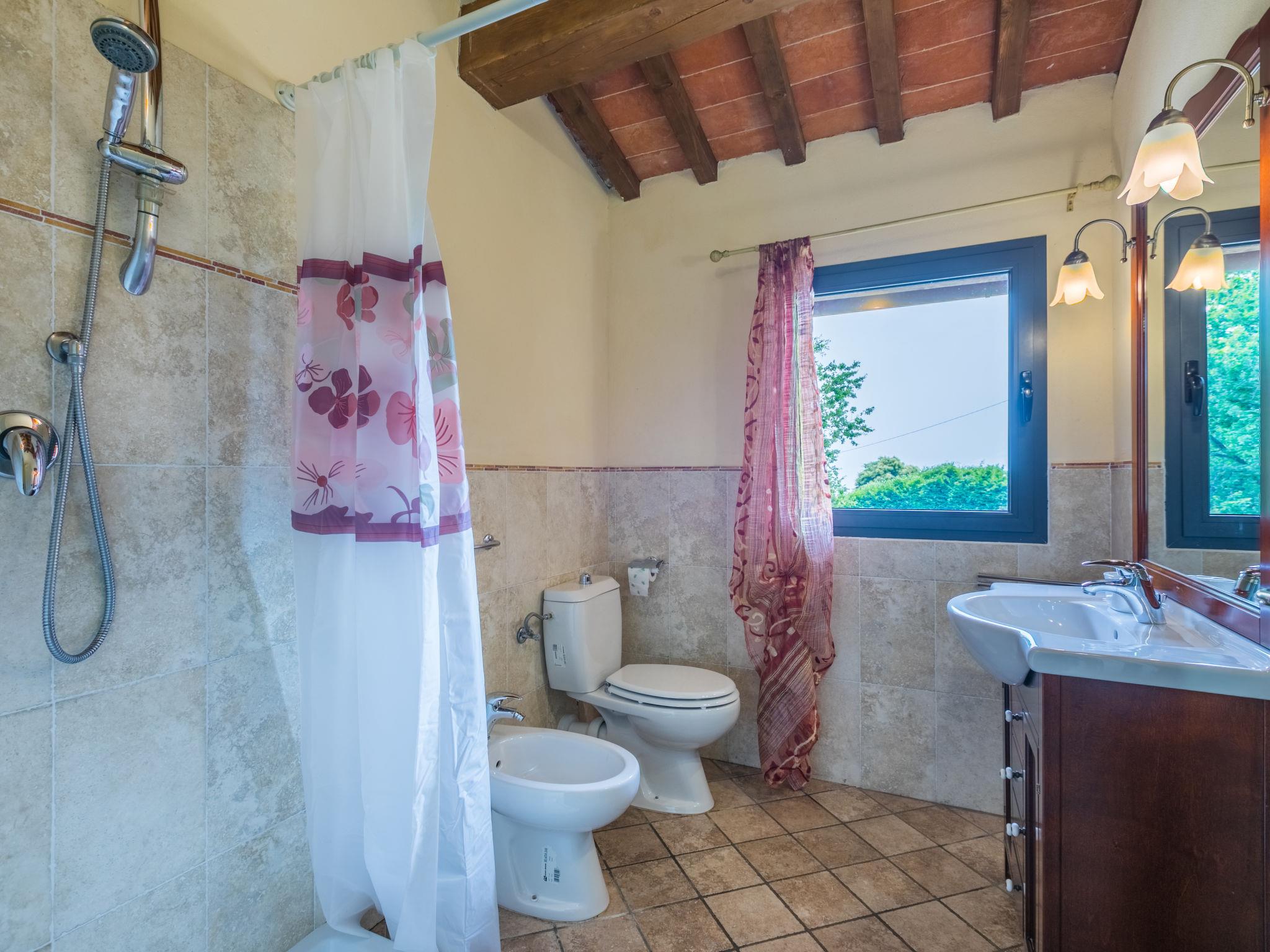 The barn we call Girasole is located inside the Agriturismo La Cupola and has a garden and swimming pool for the private use of guests. Agriturismo "La Cupola", 500 m a.s.l., surrounded by trees and vineyards. 5.5 km from the centre of Pescia, 20 km from the centre of Lucca, 45 km from the centre of Pisa, in a secluded position on a slope, 57 km from the sea, in the countryside. For shared use: property 40'000 m2, terraced garden (not fenced) with plants, meadow. Private: natural garden, swimming pool (above ground) (10 x 7 m, depth 120 cm, seasonal availability: 26.Apr. - 27.Sep.). Garden furniture, barbecue, pool maintenance by the owner/gardener. In the house: WiFi, washing machine (for shared use), heating to be paid on the spot, heating available only from 01.Nov. - 07.Apr.. 600 m long steep motor access (via unmade road). Parking on the premises. E-charging station. Supermarket 5.5 km, bus stop 150 m, sandy beach "Viareggio" 57 km. Golf course (18 hole) 14 km. Nearby attractions: Collodi 9 km, Montecarlo 11 km, Montecatini Terme 13 km, Vinci, Pistoia 32 km, San Miniato 38 km. Residence with electric gates.