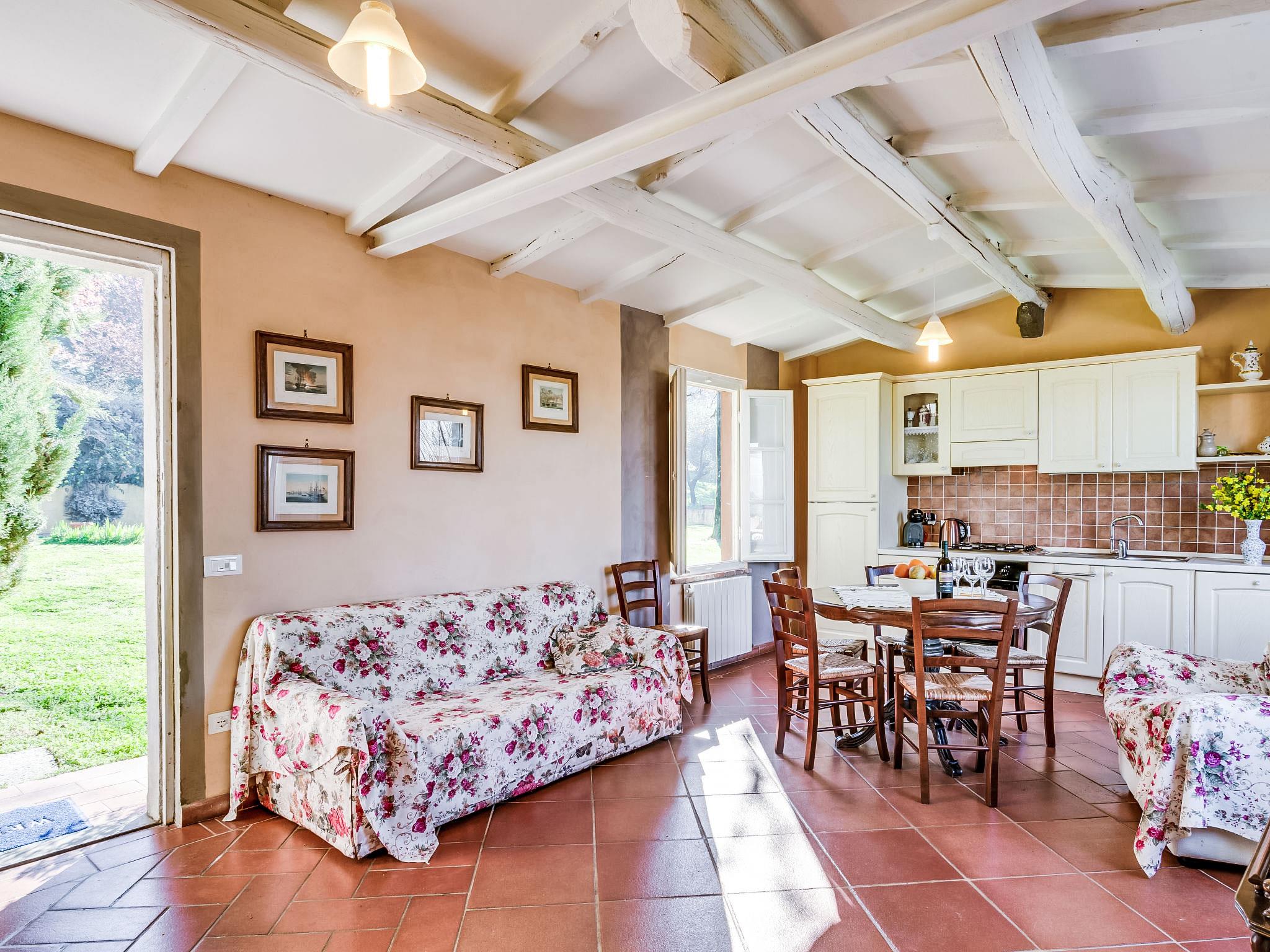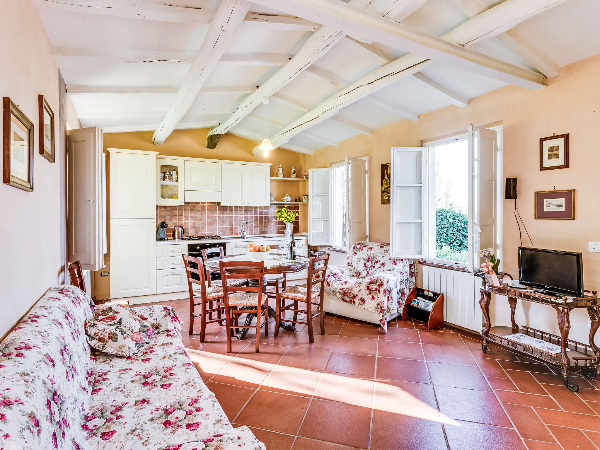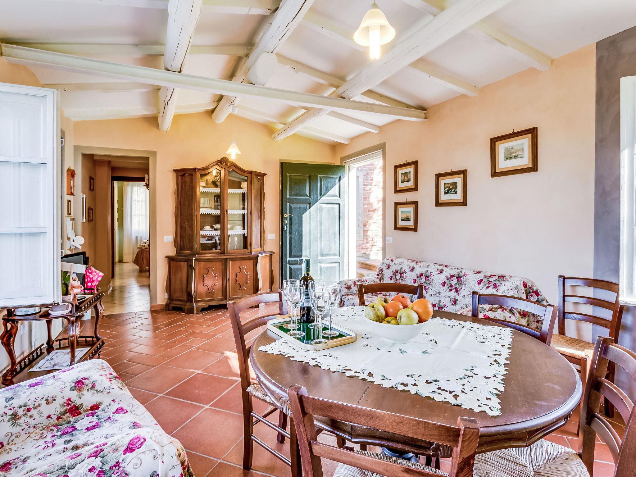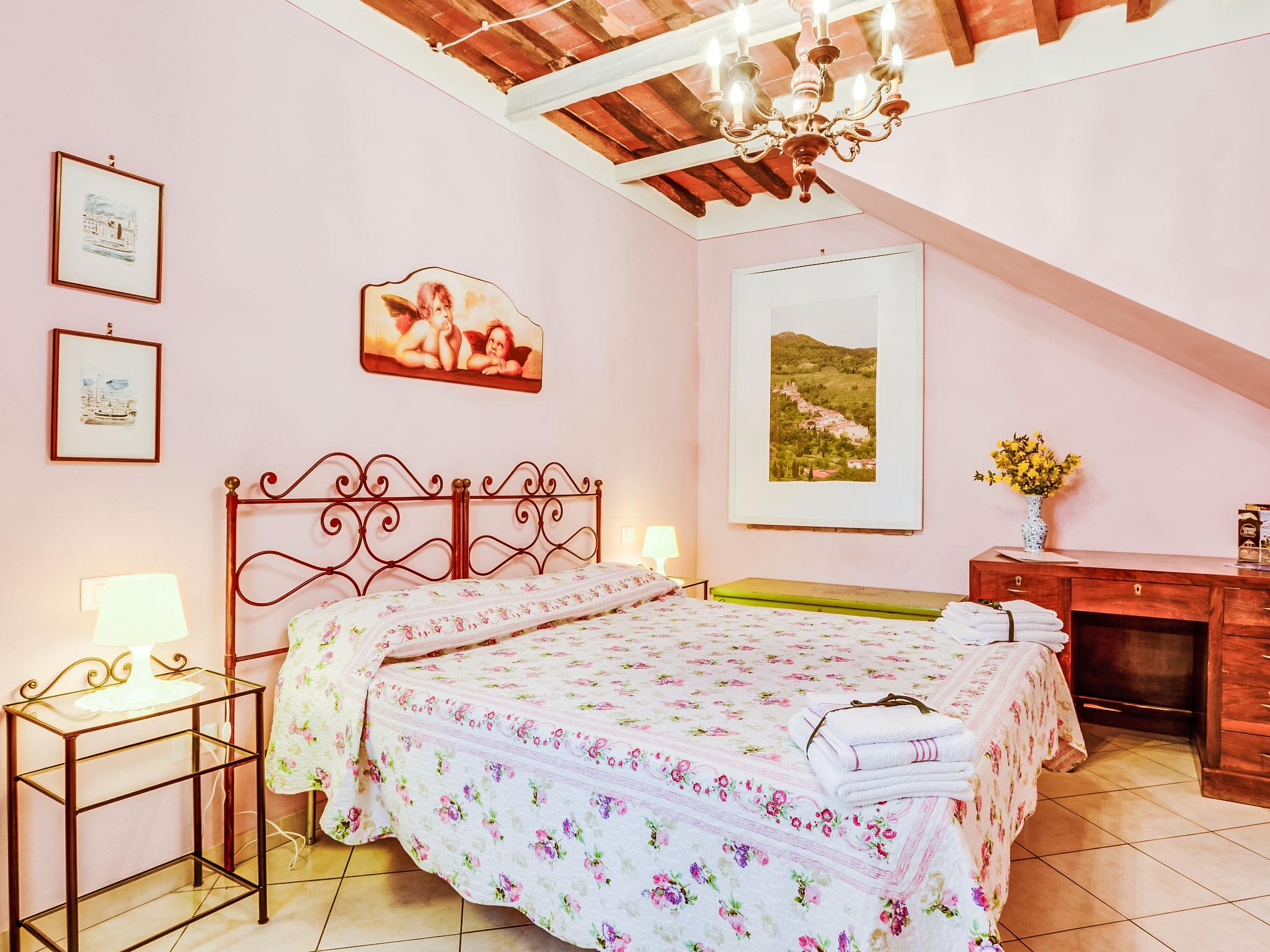 Country house "Il Fienile del Colle". 1 km from the centre of Pescia, 15 km from the centre of Lucca, 51 km from the centre of Firenze, in a secluded, quiet, sunny position, 45 km from the sea. For shared use: garden 2 ha (fenced). Barbecue. Private: swimming pool (above ground) (7 x 4 m, depth 135 - 135 cm, seasonal availability: 01.May. - 15.Oct.). Outdoor shower, volleyball court, garden furniture. Heating available only from 01.Nov. - 15.Apr.. Parking on the premises. Shop 1 km, grocery 1 km, supermarket 1 km, bar 1 km, bus stop 1 km, railway station "Pescia" 4 km, sandy beach "Viareggio - Forte dei Marmi" 45 km, thermal baths "Montecatini Terme" 11 km. Golf course (18 hole) 25 km. Nearby attractions: Collodi con Parco di Pinocchio 3 km, Villa Garzoni Butterfly House 3 km, Montecarlo 8 km, Casa di Leonardo a Vinci 35 km, Pisa 40 km, Pistoia 20 km. Please note: car recommended. Baby equipment on request (included). Residence with electric gates. The owner lives on the same property. Animals in the neighbourhood.