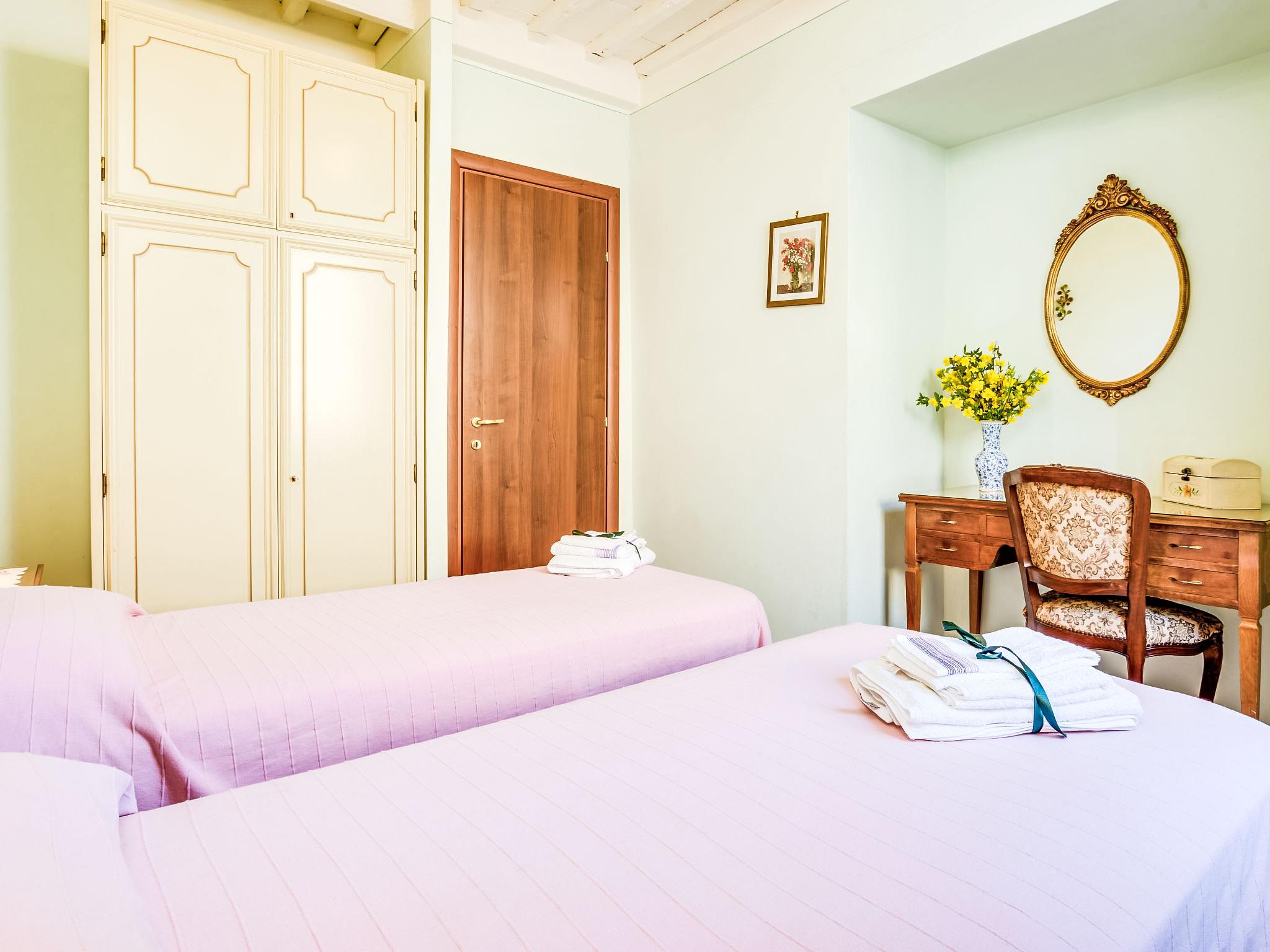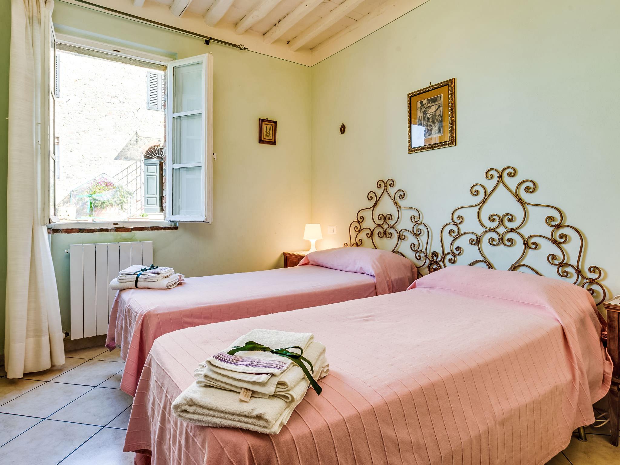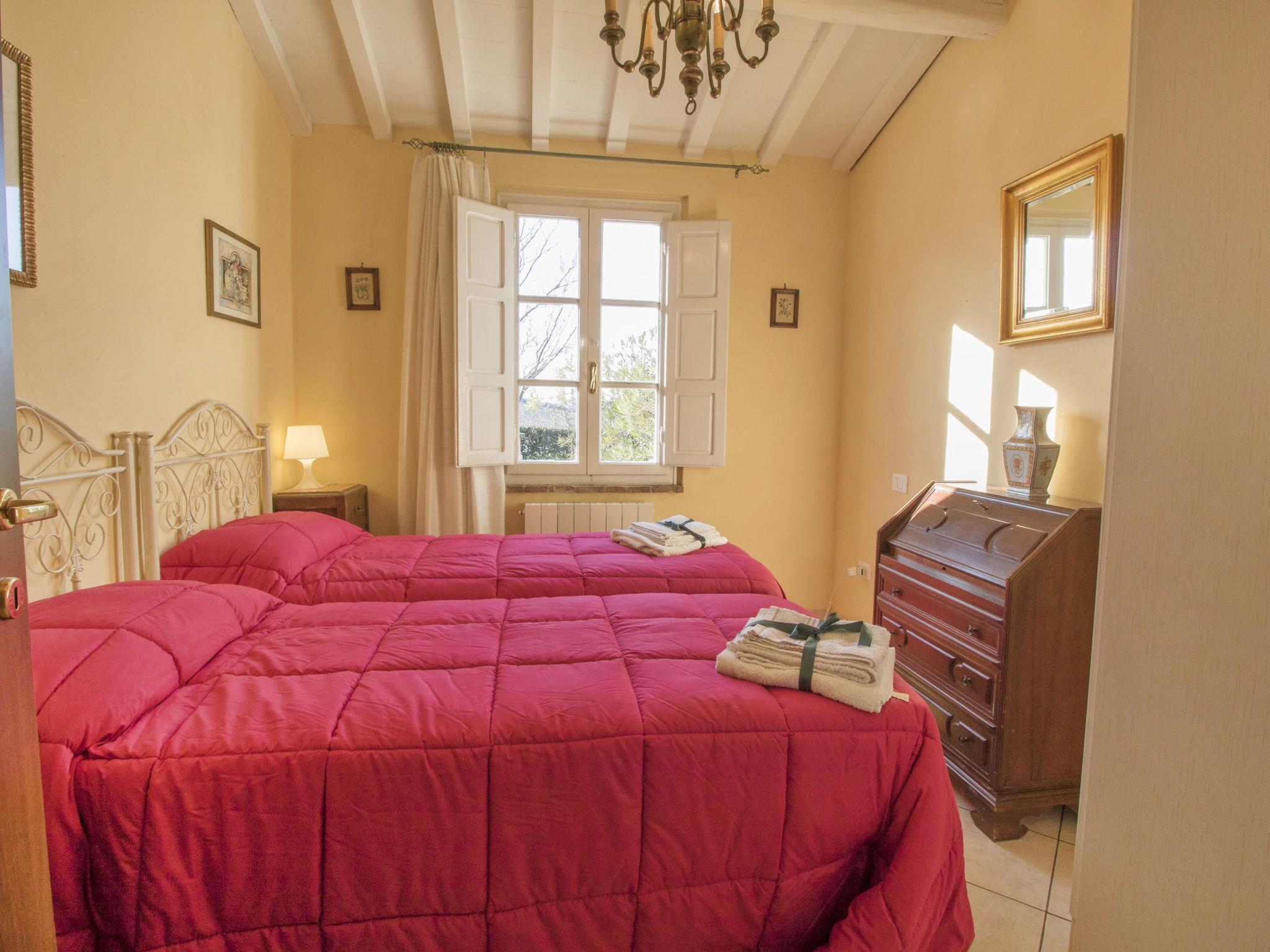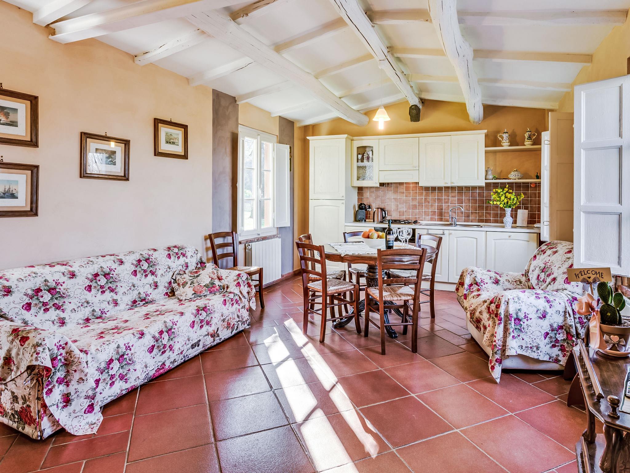 Country house "Il Fienile del Colle". 1 km from the centre of Pescia, 15 km from the centre of Lucca, 51 km from the centre of Firenze, in a secluded, quiet, sunny position, 45 km from the sea. For shared use: garden 2 ha (fenced). Barbecue. Private: swimming pool (above ground) (7 x 4 m, depth 135 - 135 cm, seasonal availability: 01.May. - 15.Oct.). Outdoor shower, volleyball court, garden furniture. Heating available only from 01.Nov. - 15.Apr.. Parking on the premises. Shop 1 km, grocery 1 km, supermarket 1 km, bar 1 km, bus stop 1 km, railway station "Pescia" 4 km, sandy beach "Viareggio - Forte dei Marmi" 45 km, thermal baths "Montecatini Terme" 11 km. Golf course (18 hole) 25 km. Nearby attractions: Collodi con Parco di Pinocchio 3 km, Villa Garzoni Butterfly House 3 km, Montecarlo 8 km, Casa di Leonardo a Vinci 35 km, Pisa 40 km, Pistoia 20 km. Please note: car recommended. Baby equipment on request (included). Residence with electric gates. The owner lives on the same property. Animals in the neighbourhood.