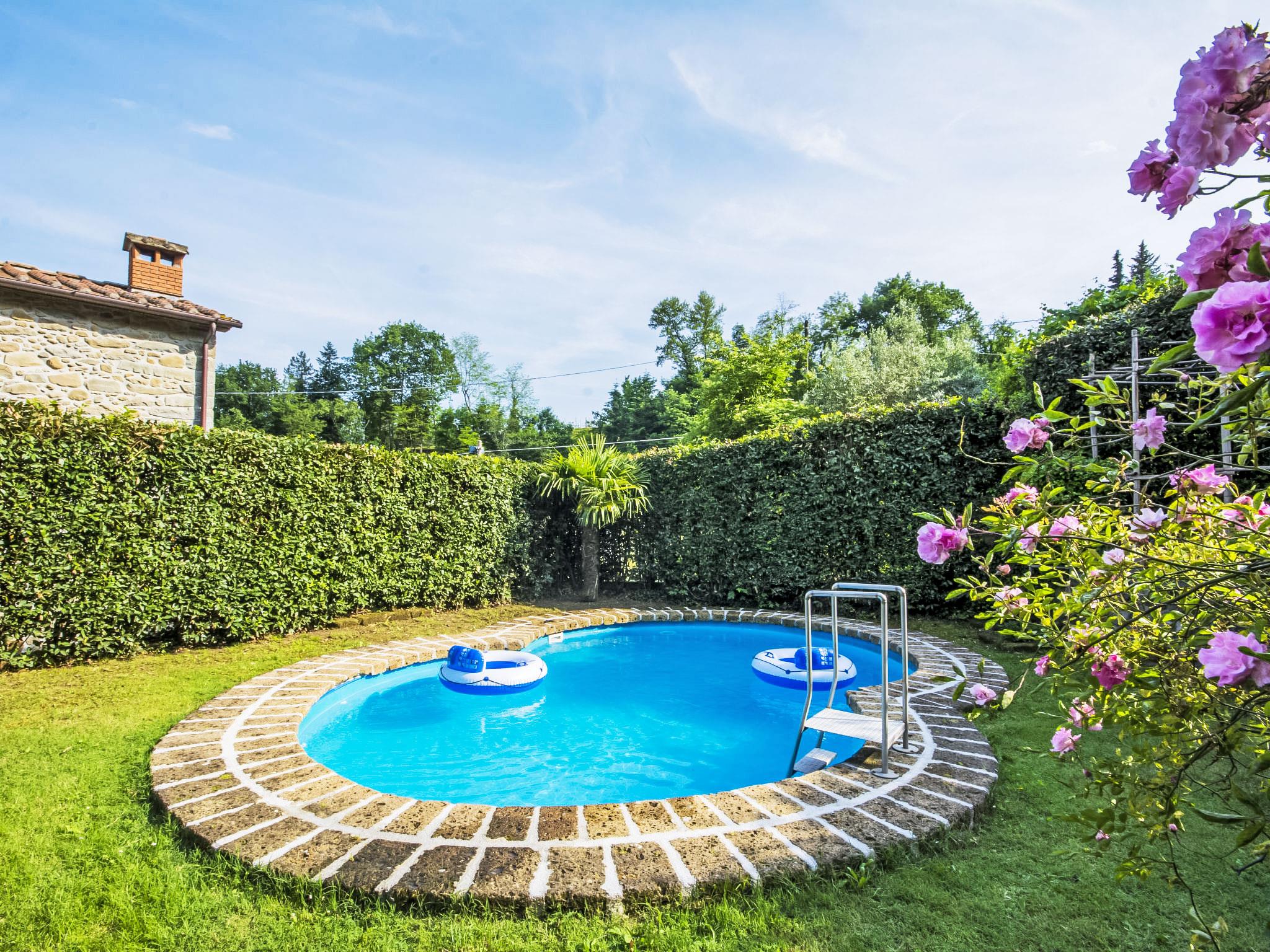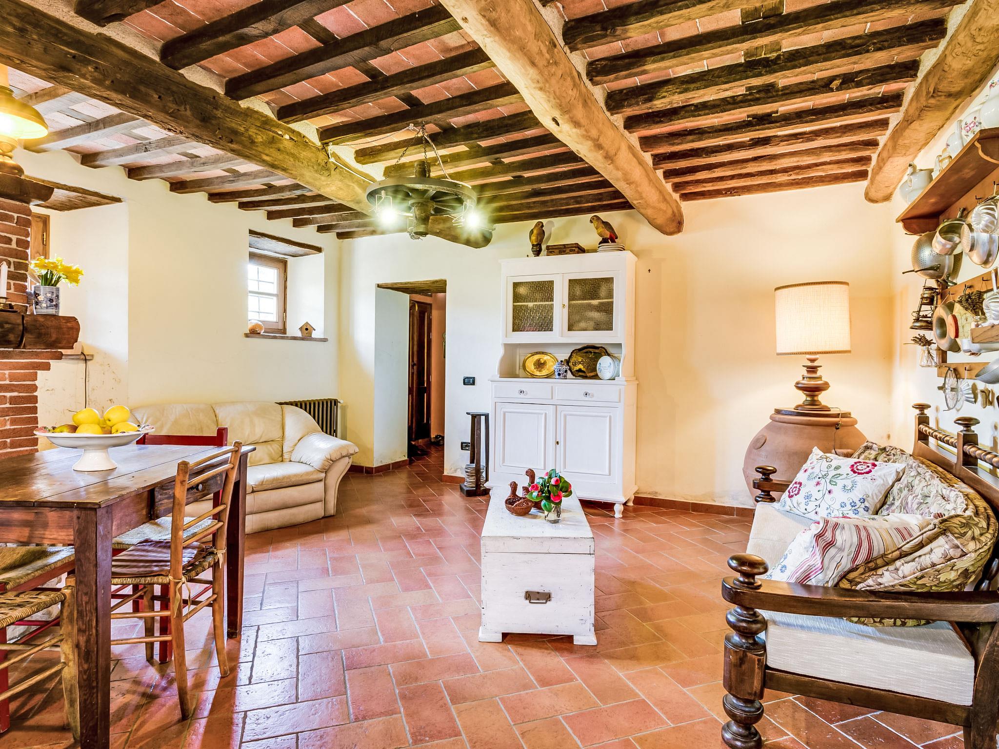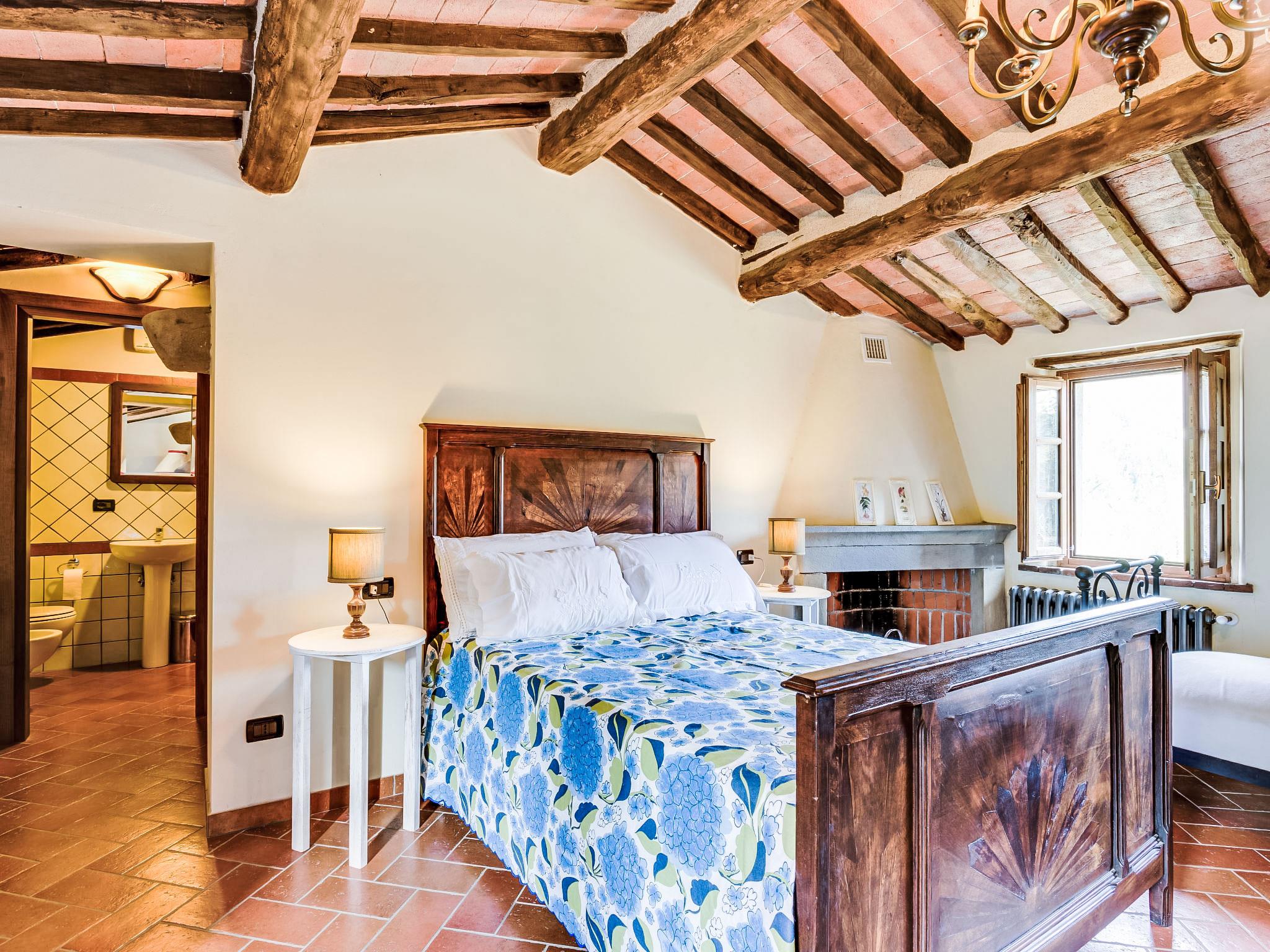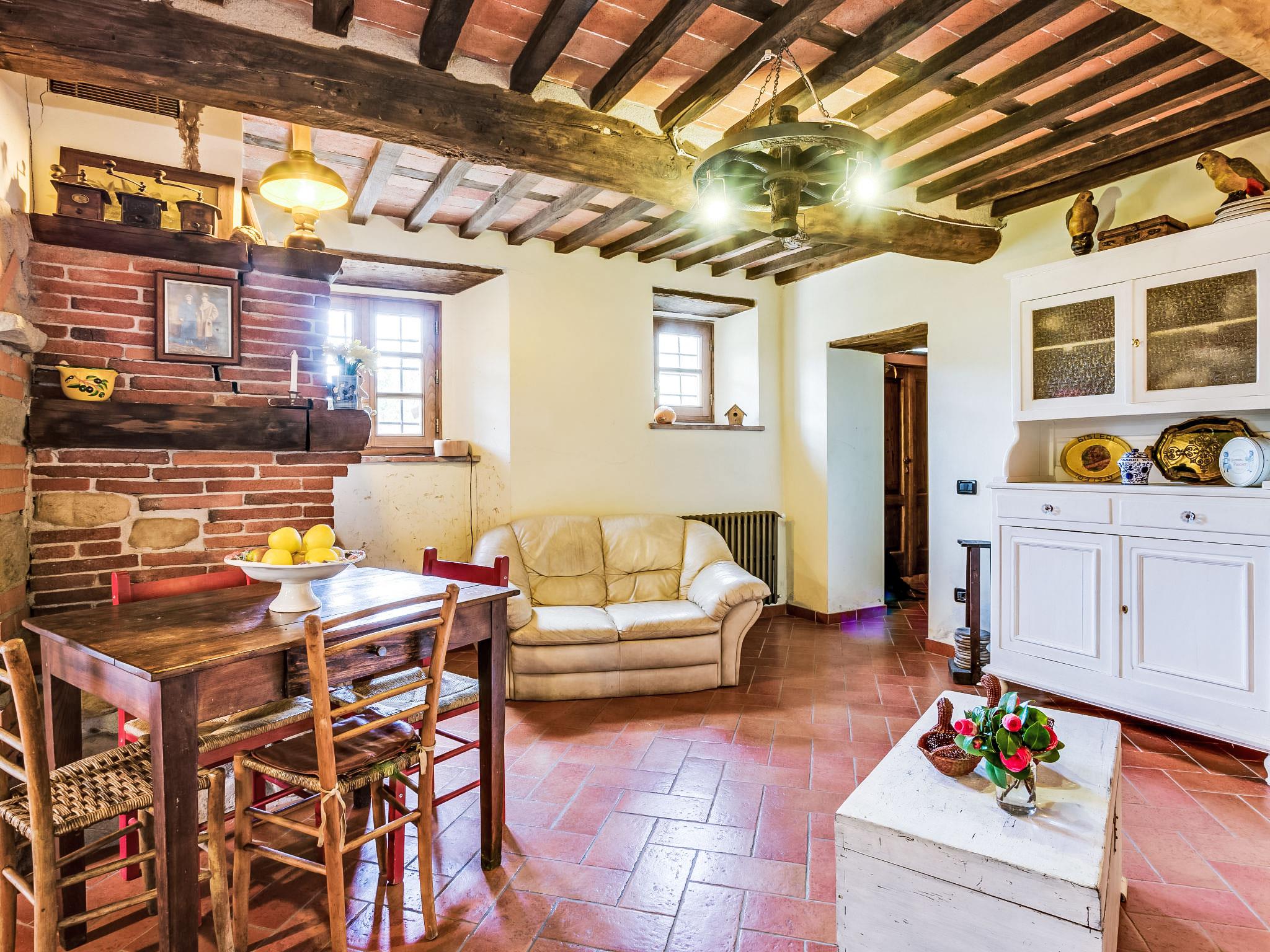 Farmhouse "Il Vecchio Ospitale", 400 m a.s.l., built in 1300, renovated in 2012. 12 km from the centre of Pescia, 20 km from the centre of Montecatini Terme, 30 km from the centre of Lucca, on top of a hill, 60 km from the sea, 60 km from the lake. Private: garden 400 m2 (fenced), swimming pool kidney shaped, fenced (7 x 3 m, depth 140 cm, seasonal availability: 27.Apr. - 05.Oct.). Garden furniture, barbecue. Heating available only from 01.Nov. - 07.Apr.. Steep motor access to the house (100 m via unmade road). Parking on the premises. Shop 5 km, supermarket 12 km, restaurant 3 km, bus stop 100 m, thermal baths "Montecatini Temre" 20 km. Golf course (18 hole) 22 km, riding stable 100 m. Nearby attractions: Sorana 4 km, Collodi 15 km, Villa Garzoni Butterfly House 16 km, Montecarlo 19 km, Lucca 30 km, Pistoia 34 km. Please note: car recommended. The owner lives in the same residence.
