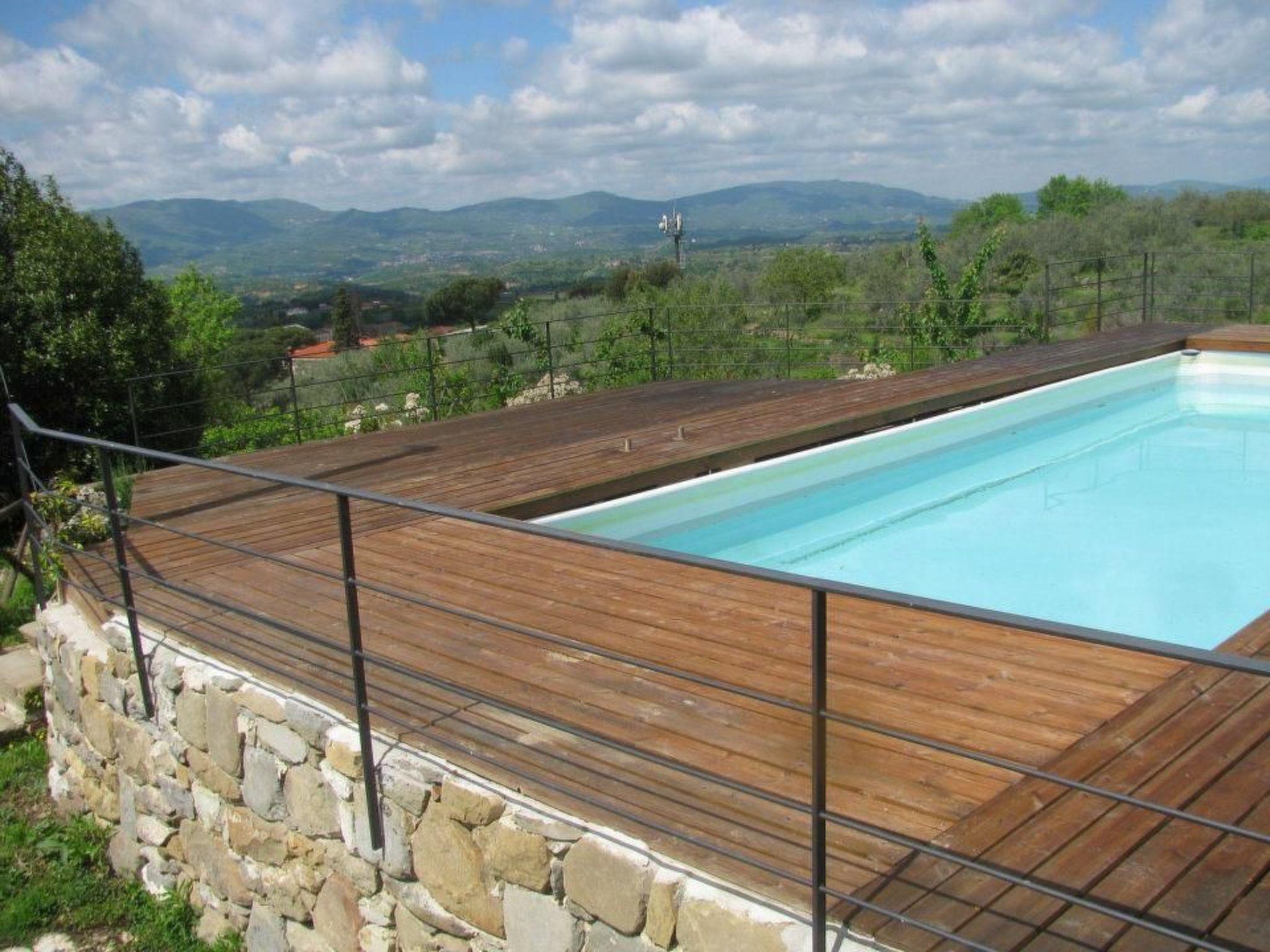 The 120m² guest house is located next to the main house and is divided into two floors. On the ground floor is the entrance hall - sitting room with a double sofa bed. From here you enter the bright and elegant living room with a fireplace and the bedroom with a double bed with direct access to the yard and the vantage point (approx. 30m from the pool). On the first floor is the kitchen with access to the veranda and garden (the building is on two different levels following the terracing of the surrounding land). In addition, there are two double bedrooms, each with en suite bathroom.