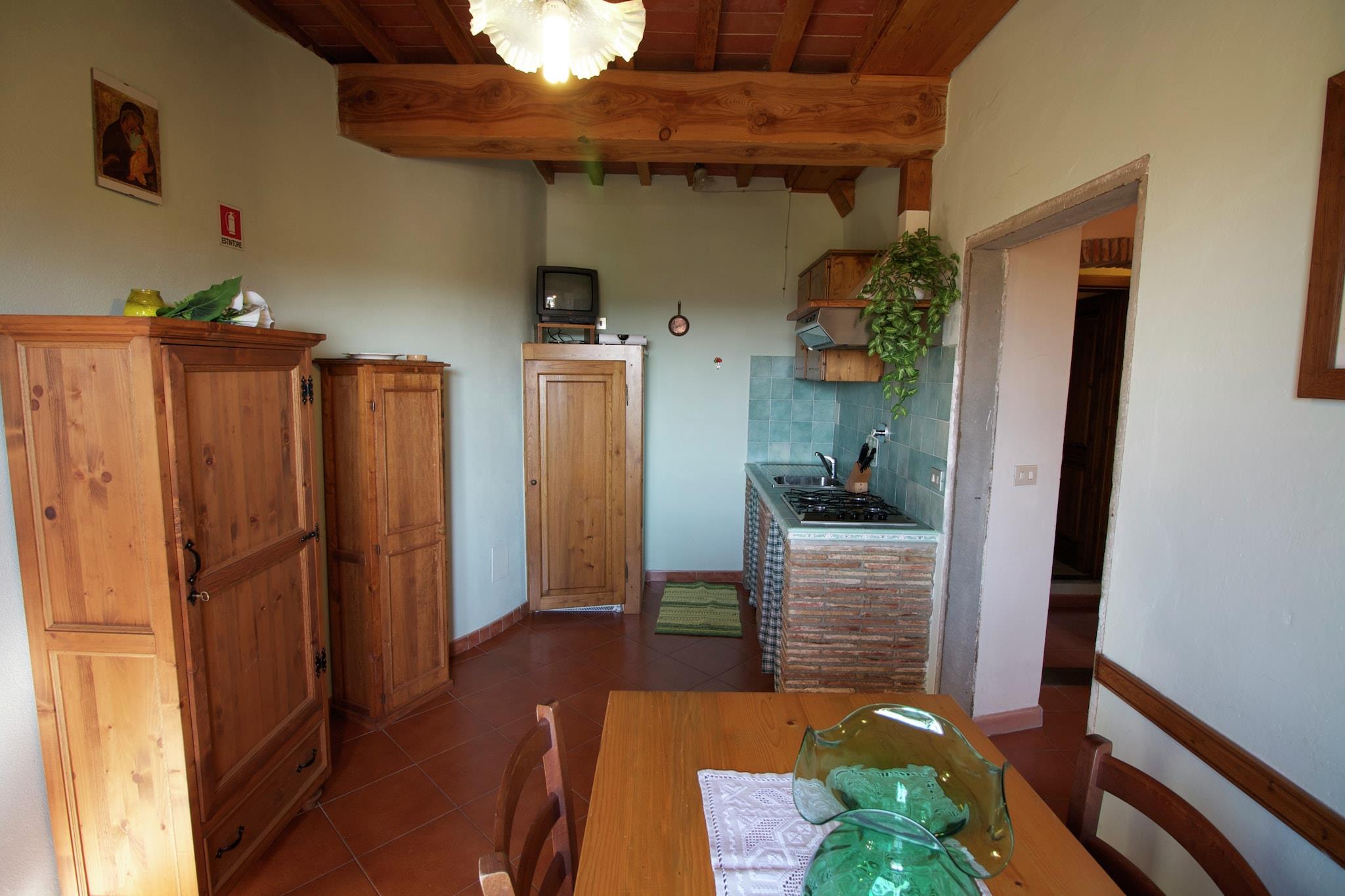Naturskønt toscansk fristed Gemt væk i det rolige landskab i Pian di Scò, er dette charmerende palæ en oase af fred og naturlig skønhed. Omgivet af bakker og olivenlunde, er det et ideelt tilflugtssted for par eller familier, der søger et roligere tempo og autentisk toscansk charme. Den store fælles have tilbyder plads til at slappe af under cypresserne. Udendørsliv for alle aldre Tilbring solrige eftermiddage i den fælles swimmingpool, uanset om du nyder en kølende dukkert, slapper af ved poolen med en bog eller ser børnene plaske rundt. Haven byder på masser af plads til børnenes frie udforskning og leg, med dedikeret legeredskaber til underholdning. For mere familiesjov er bordtennisområdet perfekt til venskabskampe og lokale spil under den toscanske sol. Om aftenen kan du tænde grillen til en afslappet middag under åben himmel med friske lokale råvarer, perfekt til lange samtaler og stjerneklar himmel. Udforsk, smag og oplev Toscana I nærheden kan du udforske Torre Arnolfo di Cambio i Castelfranco di Sopra for en storslået udsigt og en dosis middelalderhistorie. Naturelskere kan tage til Le Balze i Reggello, et dramatisk okkerfarvet landskab, der er perfekt til vandreture og naturskønne fotos, eller vandre gennem den rolige 900 hektar store Reggello-skov. Kunst- og arkitekturentusiaster vil nyde besøg på Castello di Sammezzano, Castello di Leccio og Masaccio-museet. spisning, nyd rustikke toscanske retter på Il Canniccio eller Trattoria Antica Torre, og gå ikke glip af lokale delikatesser som ribollita, finocchiona og cantucci parret med en fin Chianti.