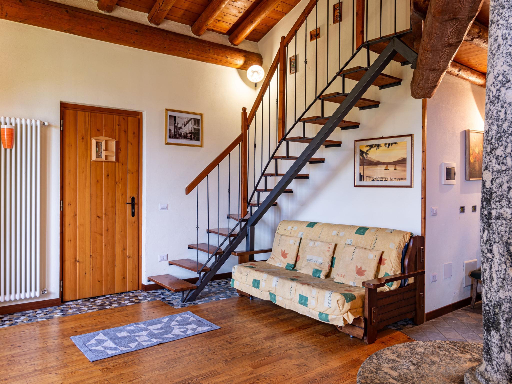 2-room house 50 m2 on 2 levels. Practical and wooden furniture furnishings: living/dining room with open-hearth fireplace (only for decoration), dining table, satellite TV and DVD. Exit to the balcony. Open gallery with sloping ceilings, Low door height 130 cm with 2 beds and 1 french bed (160 cm). Open kitchen (oven, 4 gas rings, microwave, freezer, electric coffee machine). Shower/WC. Gas heating. Wooden floors, parquet floors. Balcony, terrace. Terrace furniture, balcony furniture, barbecue, deck chairs (2). Beautiful view of the lake and the mountains. Facilities: baby cot for up to 2 year olds. Please note: non-smoking house. Maximum 3 pets/ dogs allowed. Instead of an enclosed bedroom, some sleeping areas are located in an open-plan area (gallery, alcove, etc.). IT013183C26CU5XS3T