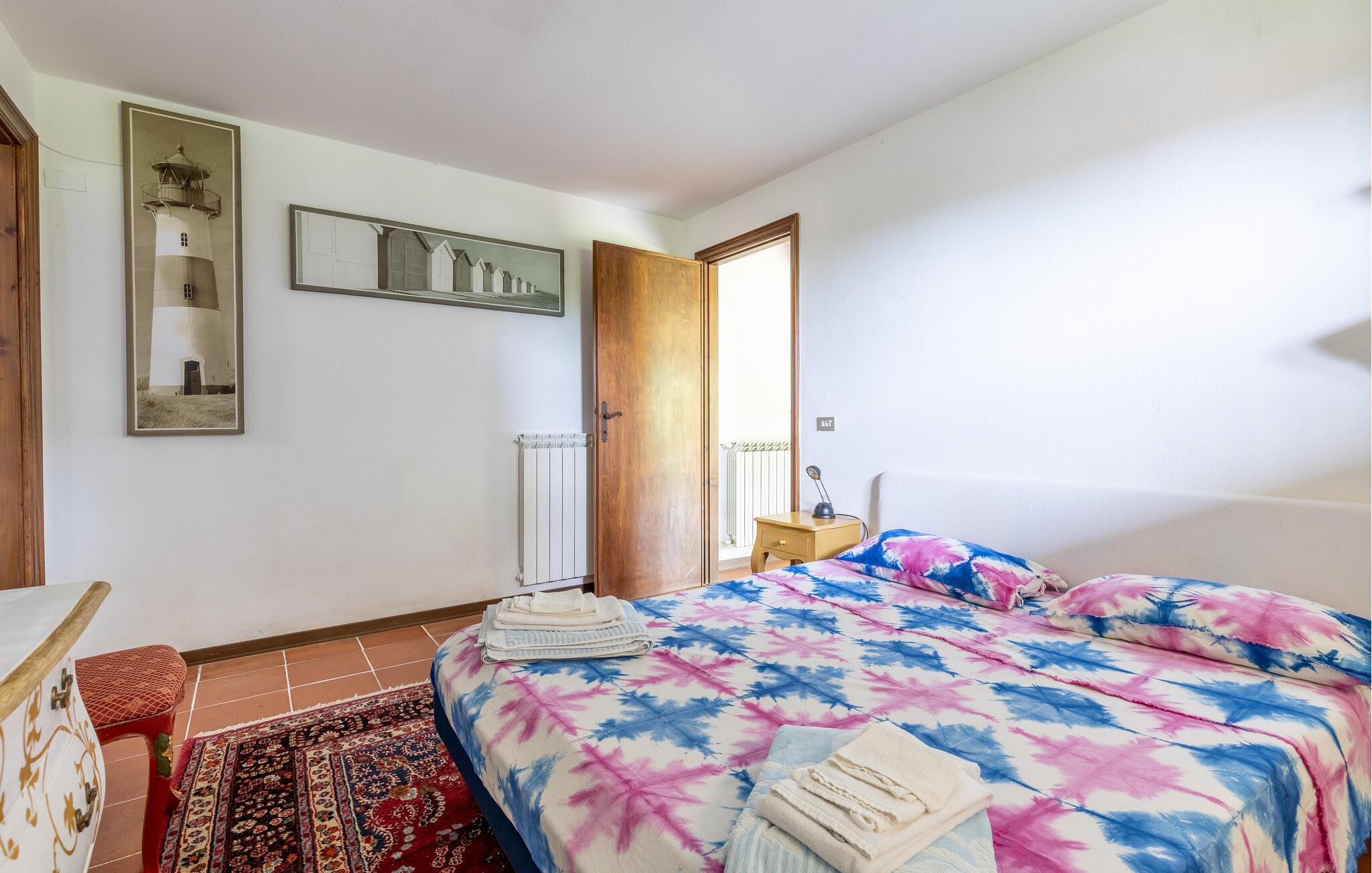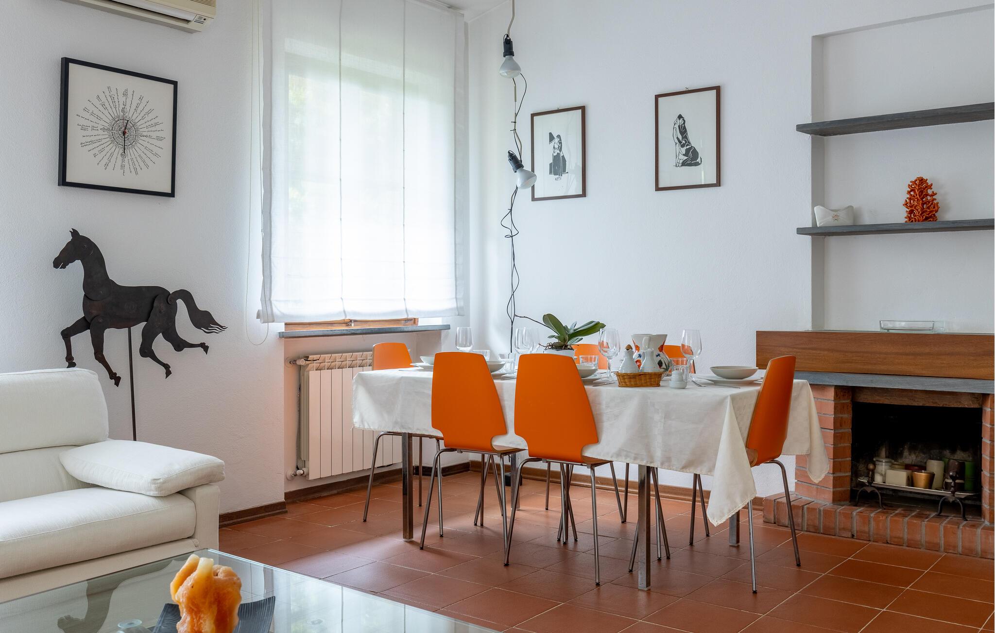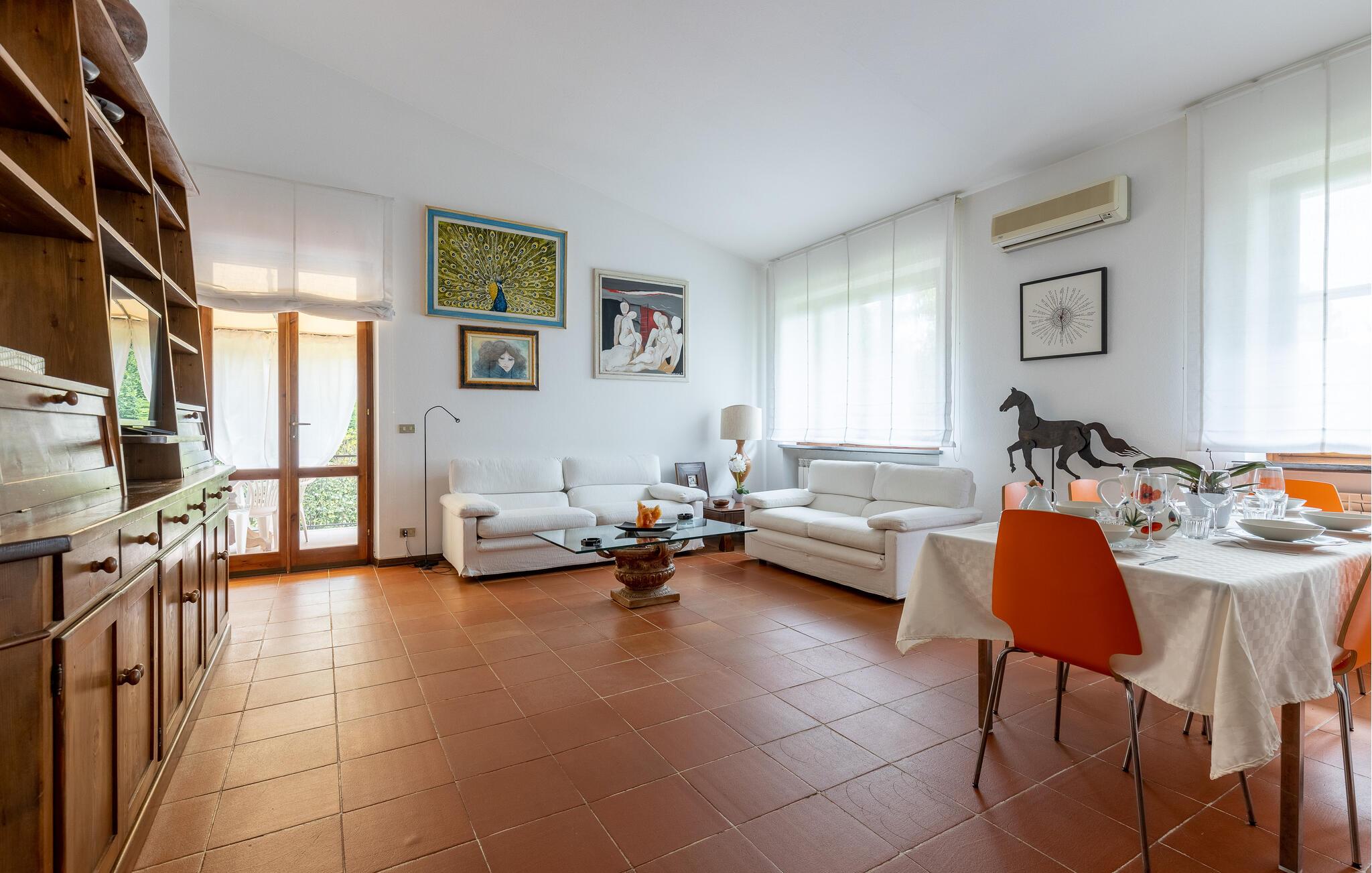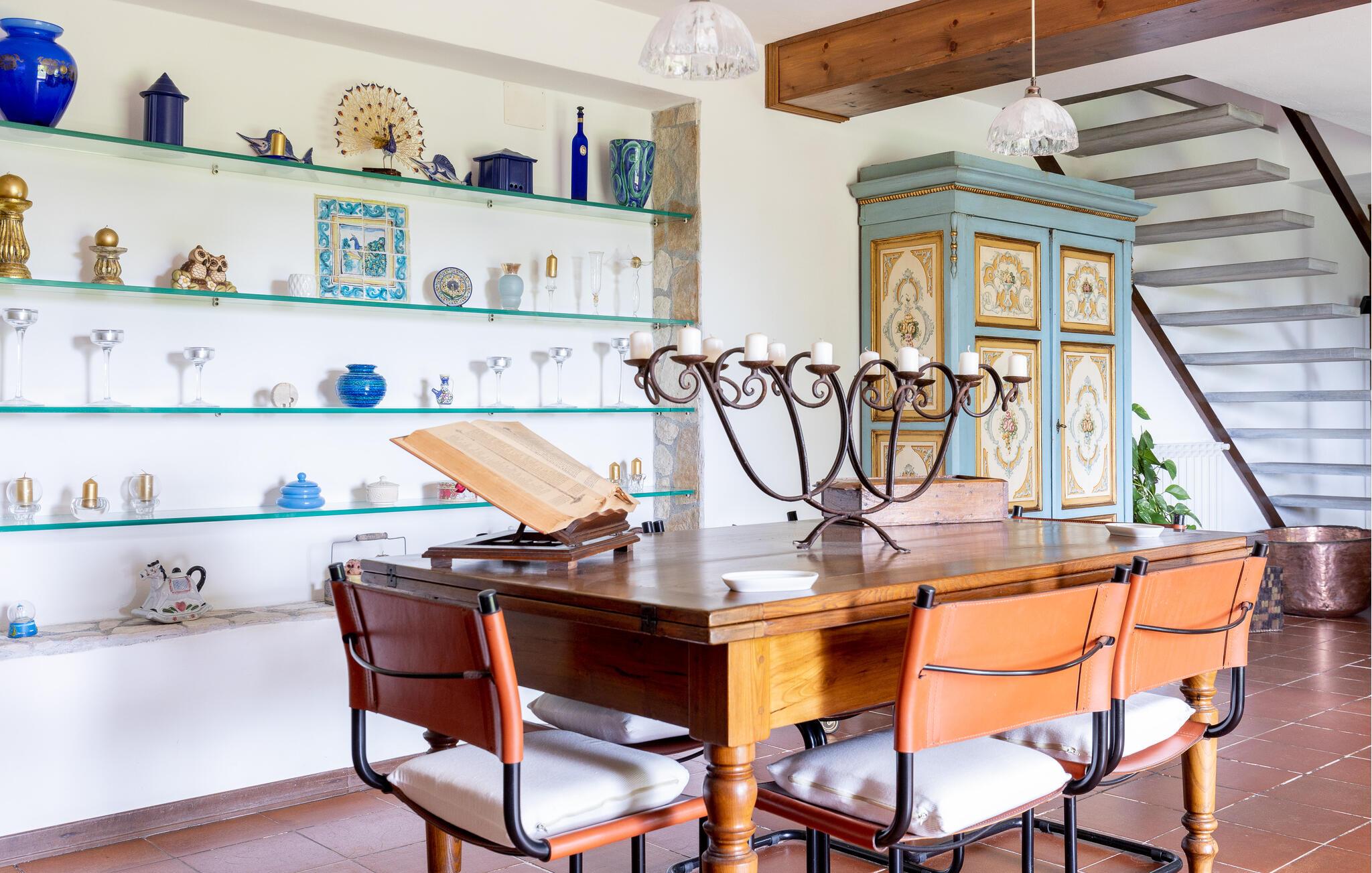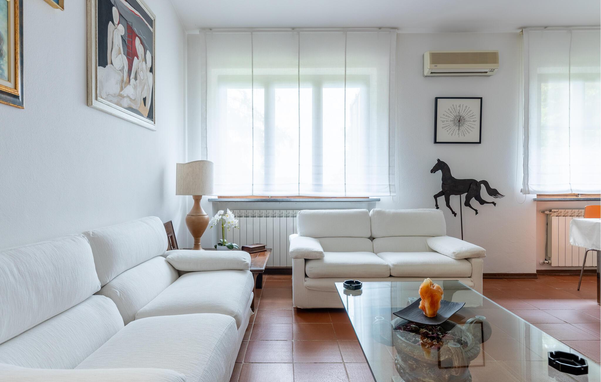 Fritliggende hus med pool, der ligger i Versilias skønne bakker i Piano di Mommio. Det ligger på en terrasseformet anlagt grund i en smuk have. Her kan I lege sammen i det fri, lave mad udendørs, hoppe en tur i husets private pool lige når I har lyst, slappe af på den store veranda og holde formen på den overdækkede terrasse med fitnessapparater. Der er kun syv km til Lido di Camaiore med mulighed for at bade og sin markante pier, der strækker sig hele 285 m ud i havet. Pietrasanta (7 km) er byen der er kendt for sin forarbejdelse af marmor og bronze og for sit historiske centrum med kunstgallerier, Viareggio ( 9 km) med sine færgeforbindelser til det betagende smukke Cinque Terre. Der er adgang til villaen direkte fra parkeringspladsen ad en trappe med 20 trin.