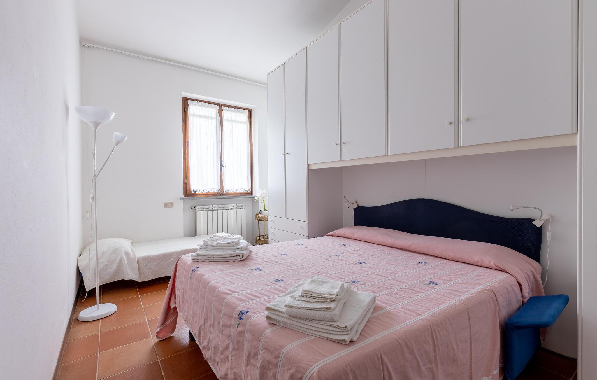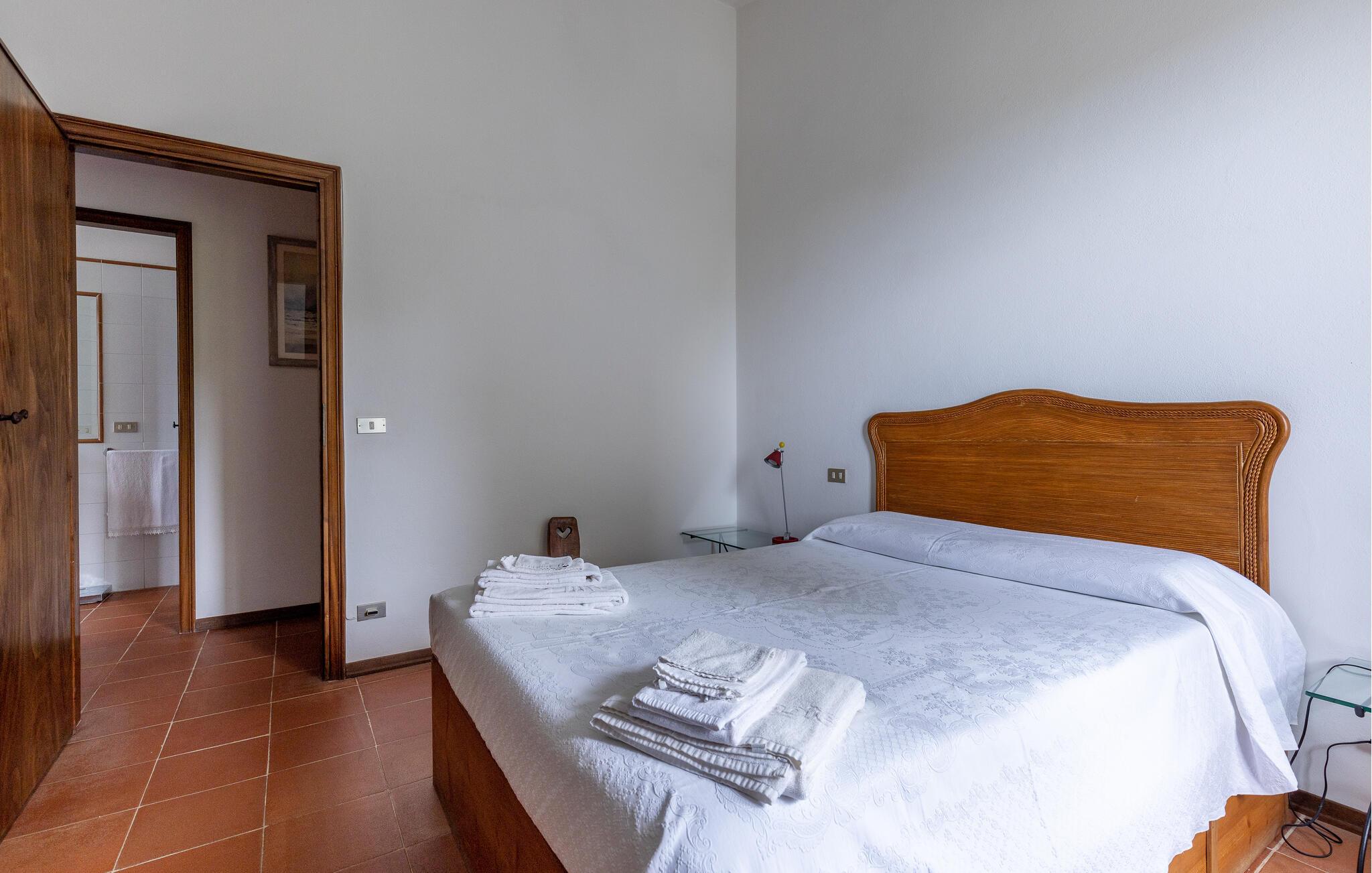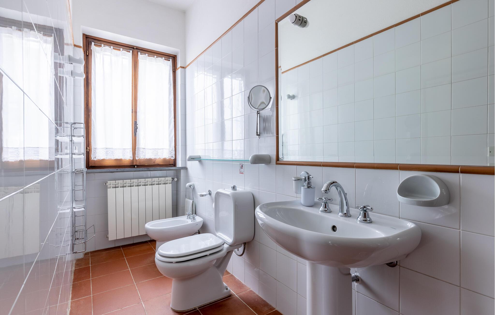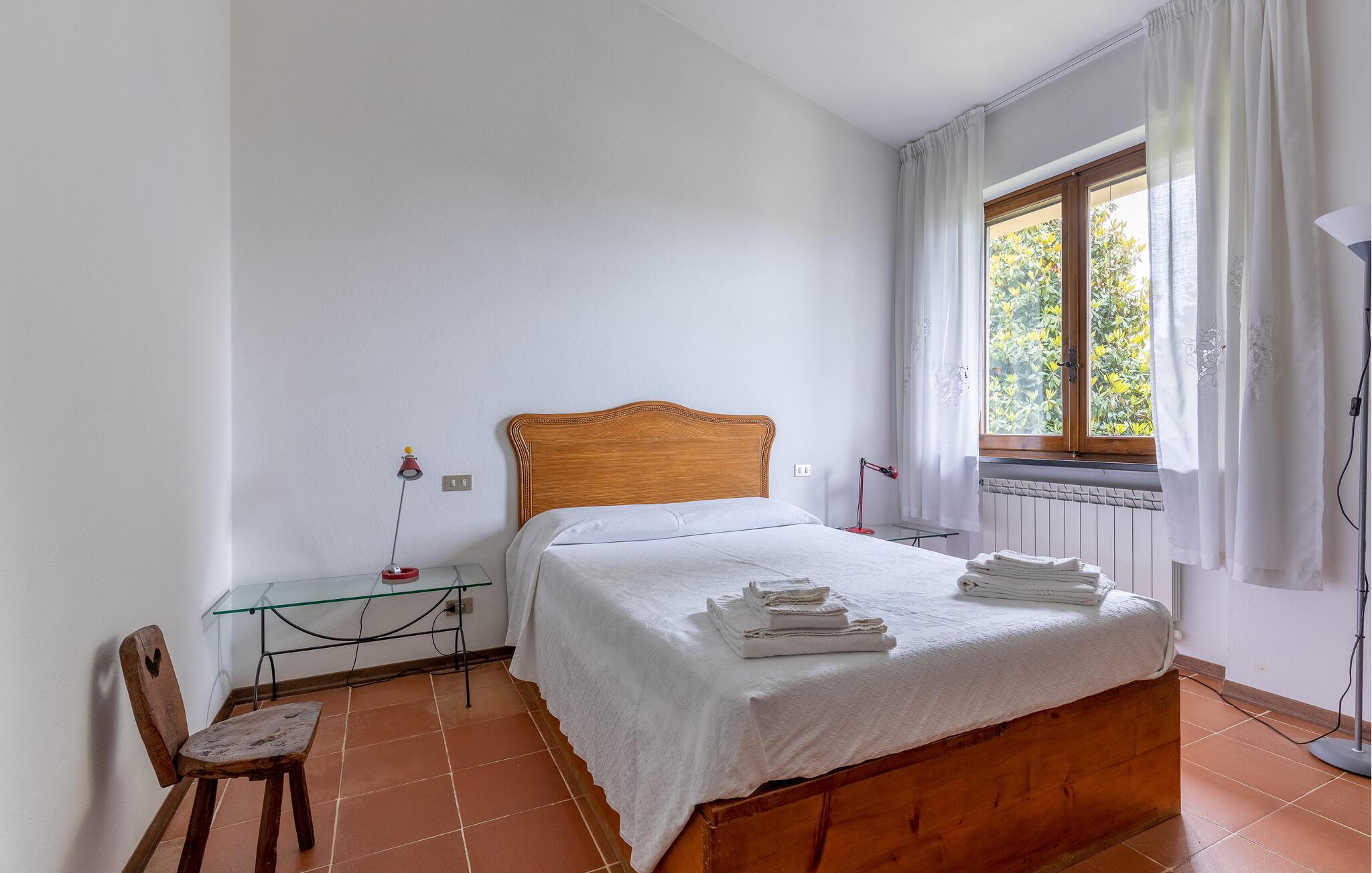 Fritliggende hus med pool, der ligger i Versilias skønne bakker i Piano di Mommio. Det ligger på en terrasseformet anlagt grund i en smuk have. Her kan I lege sammen i det fri, lave mad udendørs, hoppe en tur i husets private pool lige når I har lyst, slappe af på den store veranda og holde formen på den overdækkede terrasse med fitnessapparater. Der er kun syv km til Lido di Camaiore med mulighed for at bade og sin markante pier, der strækker sig hele 285 m ud i havet. Pietrasanta (7 km) er byen der er kendt for sin forarbejdelse af marmor og bronze og for sit historiske centrum med kunstgallerier, Viareggio ( 9 km) med sine færgeforbindelser til det betagende smukke Cinque Terre. Der er adgang til villaen direkte fra parkeringspladsen ad en trappe med 20 trin.