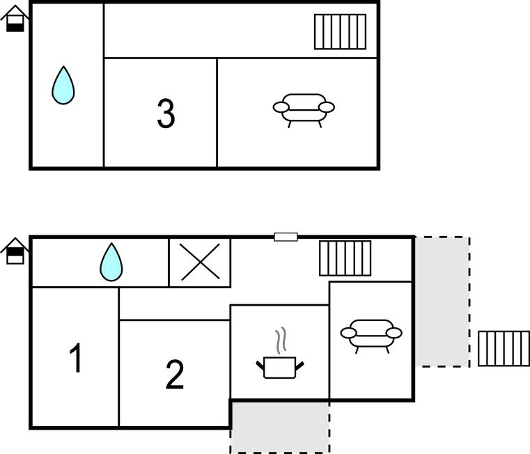 Soveværelse (nr. 3) - 1 Soveplads. (Enkeltseng(e)). 2 Sovepladser. (Dobbeltseng(e)).