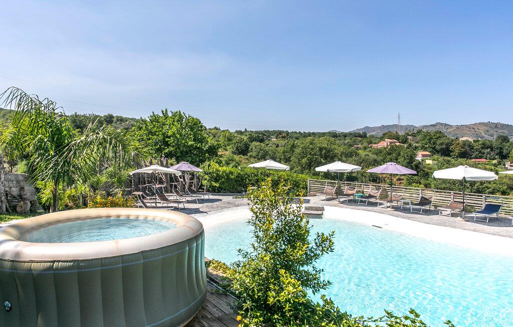 Dette smagfuldt indrettede feriehus kombinerer moderne komfort med siciliansk charme. De rummelige værelser tilbyder jer masser af plads til at slappe af, mens saunaen og fitnessområdet giver ekstra afslapning. På jeres store terrasse med grill og bålplads kan I nyde hyggelige aftener med udsigt over Middelhavet - et perfekt sted at slappe af. Den fælles pool og spabad lægger op til at blive hængende.
