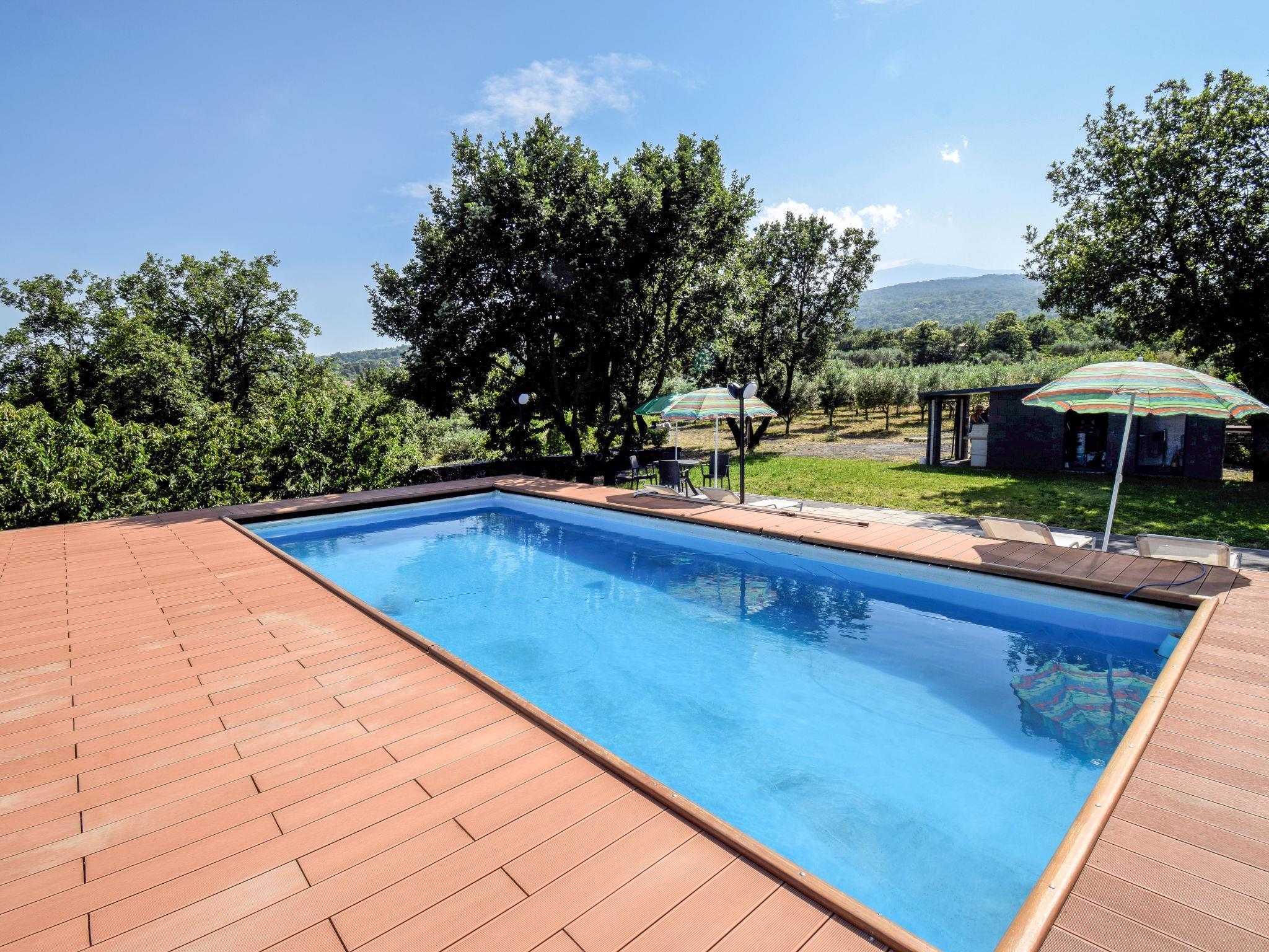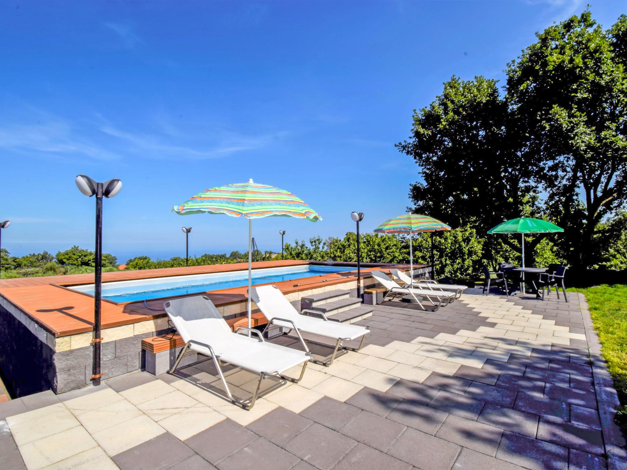 3-family house "Serena", 350 m a.s.l.. 3 apartments in the property. 1 km from the centre of Piedimonte Etneo, 3 km from the centre of Fiumefreddo, in a quiet, sunny position on top of a hill, 10 km from the sea. For shared use: property (fenced), terraced garden, 800 m2 (fenced) with plants and flowers, swimming pool (4 x 9 m, depth 130 cm, seasonal availability: 15.May. - 15.Oct.). Poolhouse with fridge, shower and WC, table tennis, patio (20 m2), garden furniture, barbecue. In the house: WiFi, washing machine (for shared use), heating to be paid on the spot (01.Apr. - 30.Nov.), heating available only from 01.Dec. - 31.Mar.. 3 km long steep motor access to the house. Parking on the premises. Grocery 2 km, supermarket 2 km, restaurant 1 km, bus stop 1 km, sandy beach "Giardini Naxos" 17 km, shingle beach 8 km, rocky beach "Torre Archirafi" 15 km. Ski school 25 km. Nearby attractions: Punto Escursioni sull'Etna 5 km, Giardini Naxos 16 km, Taormina 25 km, Acireale 32 km, Catania 44 km, Aeroporto di Catania 52 km. Please note: car recommended, no lift. The owner lives in the same residence. The owner has a dog. Property ref. IT9627.151.1 is situated on the same property.