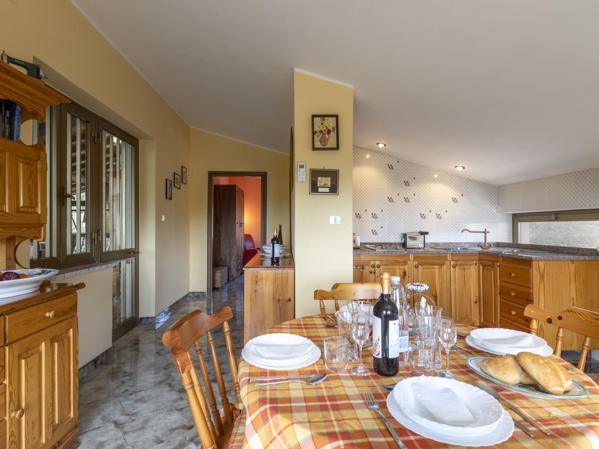 2-room apartment 100 m2 on 1st floor. Spacious, practical and comfortable furnishings: large living/dining room with panoramic window with Scandinavian wood stove and TV (flat screen). 1 double bedroom. Kitchen (2 hot plates, toaster, kettle, microwave) with dining table, 1 double sofabed (140 cm), air conditioning. Shower/bidet/WC. Heating, wood heating (extra), air-conditioning. Heating available only from 01.12. to 31.03. Distant view of the sea. Facilities: iron, hair dryer. Internet (WiFi, free). Parking (1 car). Please note: non-smokers only. Smoke alarm, fire extinguisher. IT087035C2YWEOLA96