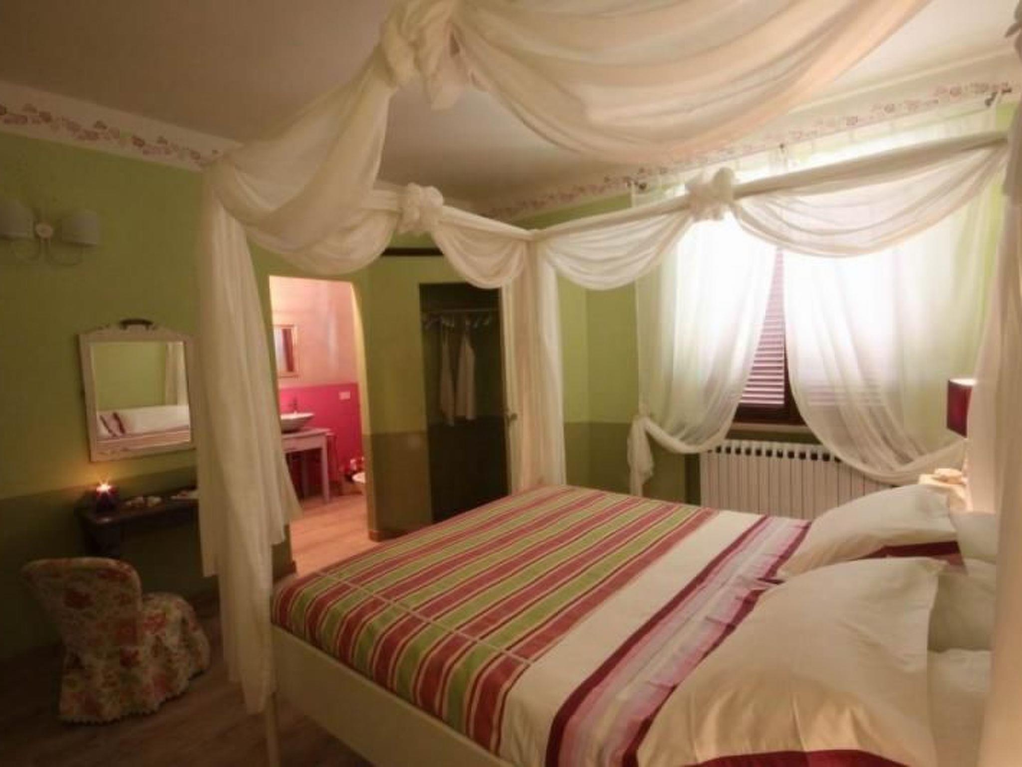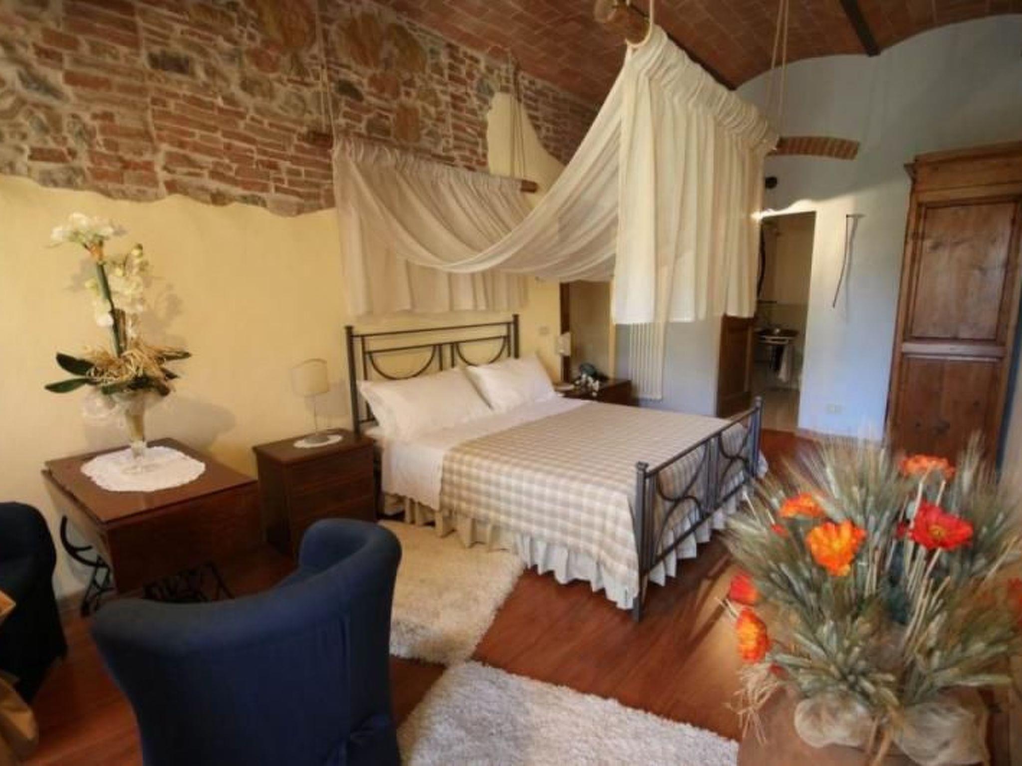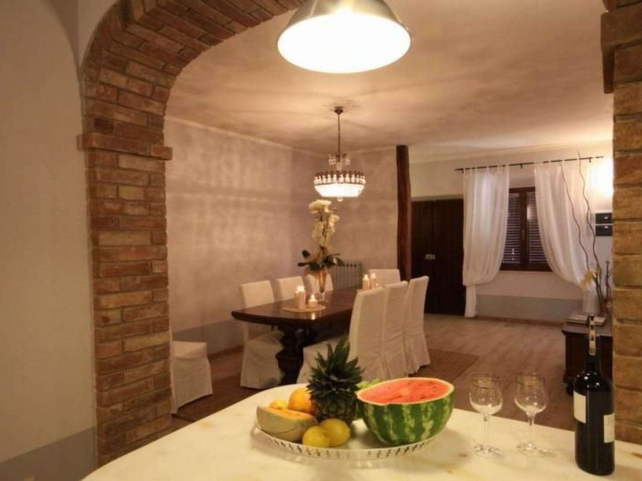 The holiday house, an independent part of a larger farmhouse separated by a wall, has a beautiful swimming pool (12 x 6 metres, open from May to September), a large landscaped garden, a children's playground, a barbecue area and Wi-Fi. The villa, originally built over 500 years ago and renovated several times, is now a very comfortable accommodation for discerning guests. It is very well furnished, elegant and offers all modern conveniences. It is spread over two floors. The ground floor includes a master bedroom with en-suite bathroom and the reception area. An external staircase leads to the first floor: a beautiful and spacious living room with dining area and kitchen (not separate). The house consists of a living room with satellite TV and a fireplace; three double bedrooms, each with a private bathroom with shower (one of which has a hydro-massage shower). Shops, a supermarket and a restaurant are about 4-6 km away.