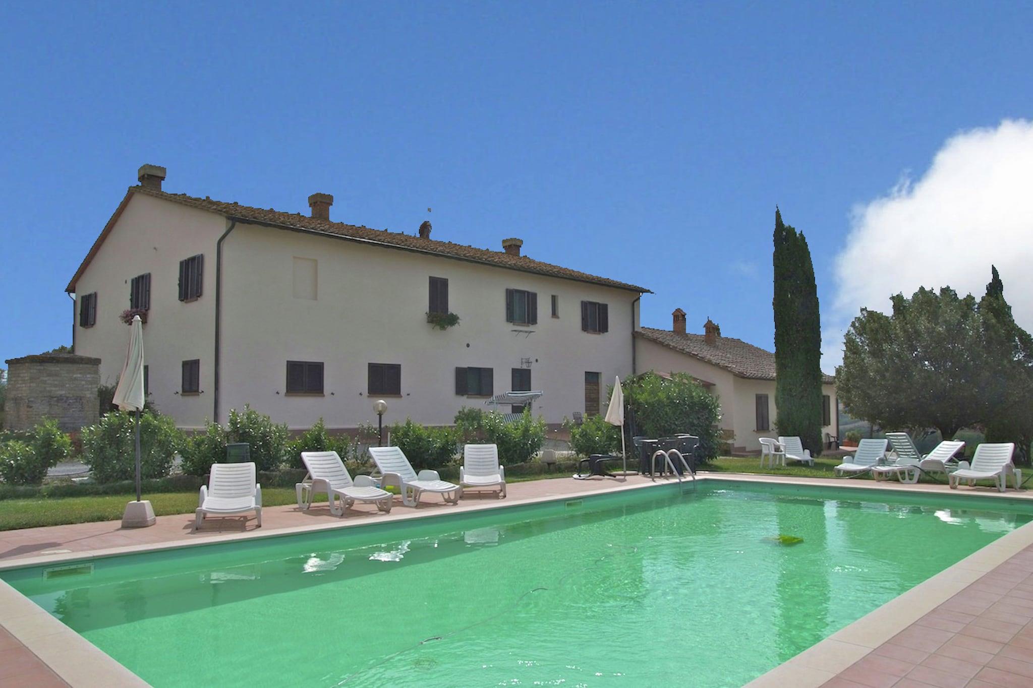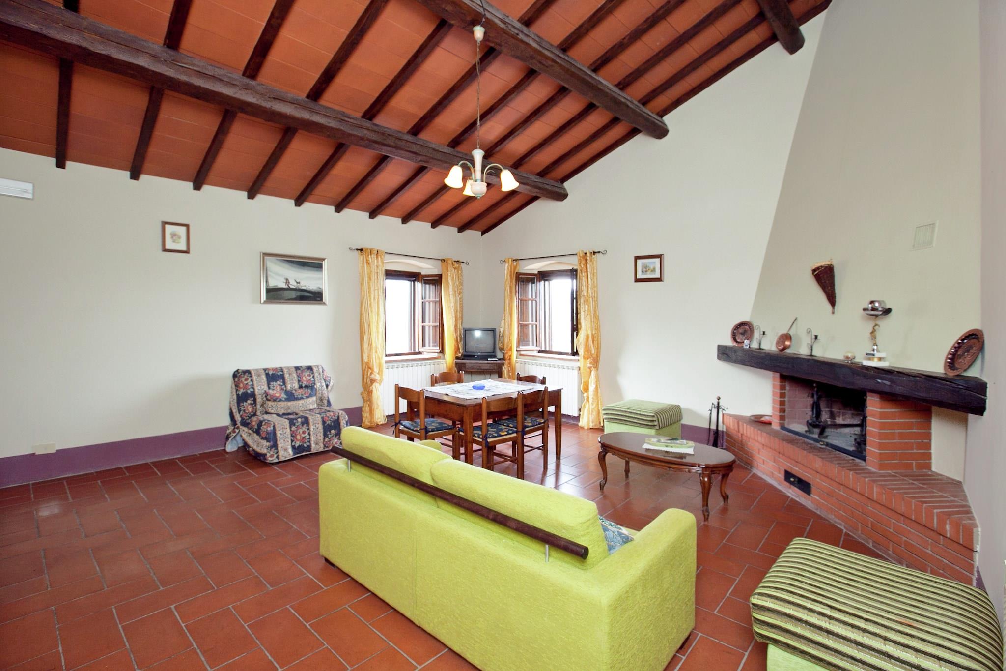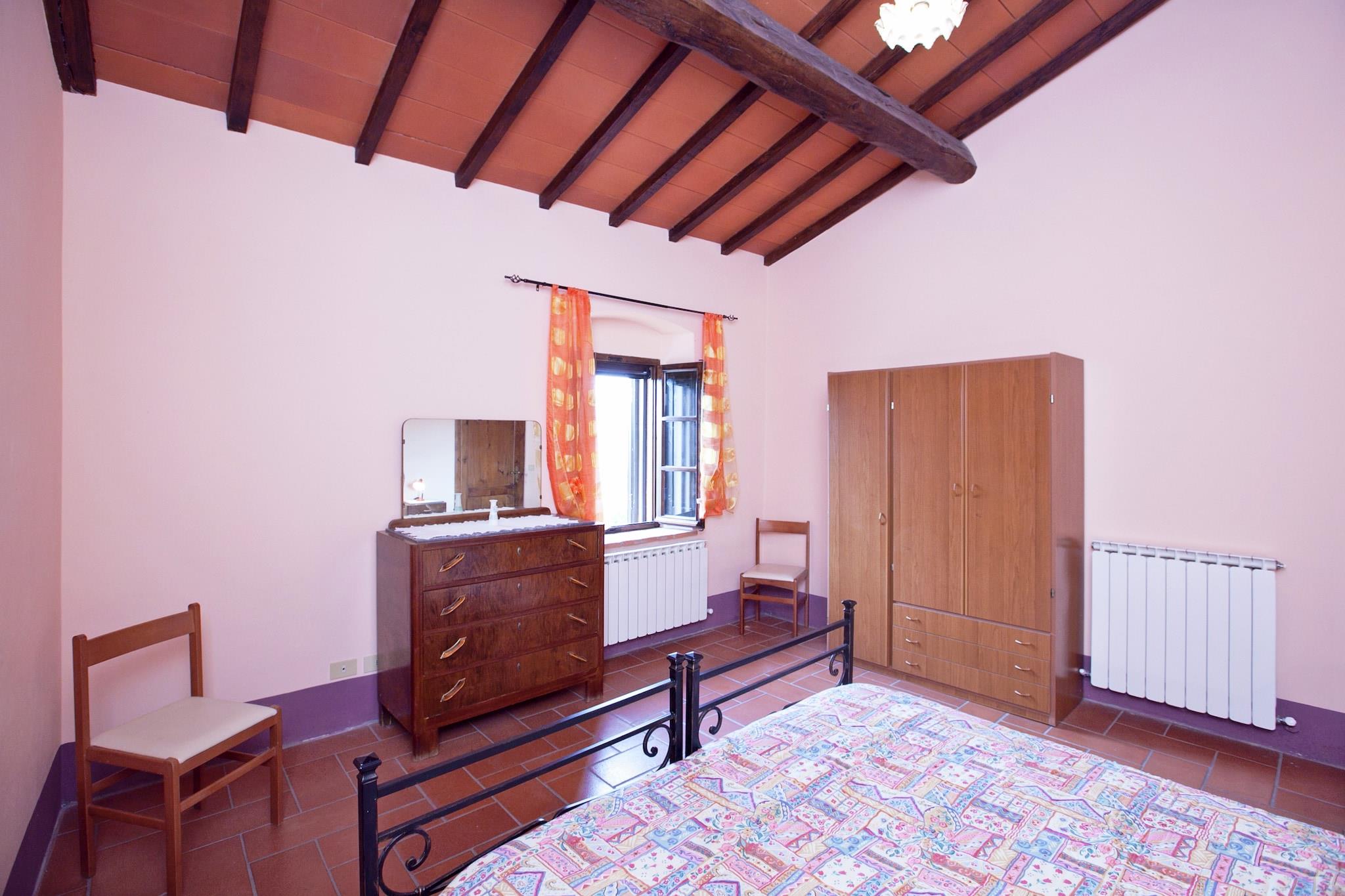 Beliggende i Pienzas fredfyldte bakker tilbyder denne kæledyrsvenlige lejlighed et fredeligt tilflugtssted for op til 6 gæster. Det ligger på første sal og har et rummeligt køkken med pejs og tv, to hyggelige soveværelser, det ene med dobbeltseng og enkelt sovesofa, det andet med dobbeltseng og enkeltseng samt to moderne badeværelser med bruser og bidet. WiFi og centralvarme sikrer et behageligt ophold året rundt. Træd udenfor for at nyde en privat terrasse og en fælles have med udendørsmøbler, ideel til at slappe af i den toscanske sol. En 12 × 6 m swimmingpool, åben fra juni til september, inviterer til forfriskende dukkert i de varmere måneder. Privat parkering tilføjer til bekvemmeligheden, hvilket gør det nemt at udforske regionen. Lejligheden ligger kun 10 km fra renæssancebyen Pienza, kendt for sin fantastiske arkitektur og pecorino-ost. Nærliggende attraktioner omfatter Val d'Orcia-bakkerne, Montepulciano (berømt for vin) og de fortryllende Bagno Vignoni termiske bade. For at spise kan du besøge La Porta eller Trattoria Latte di Luna i nærliggende byer for at nyde autentisk toscansk køkken. Med skovstier, en sø og kulturelle vartegn inden for rækkevidde, er dette ophold perfekt til familier eller venner, der søger natur, historie og komfort i én smukke omgivelser.