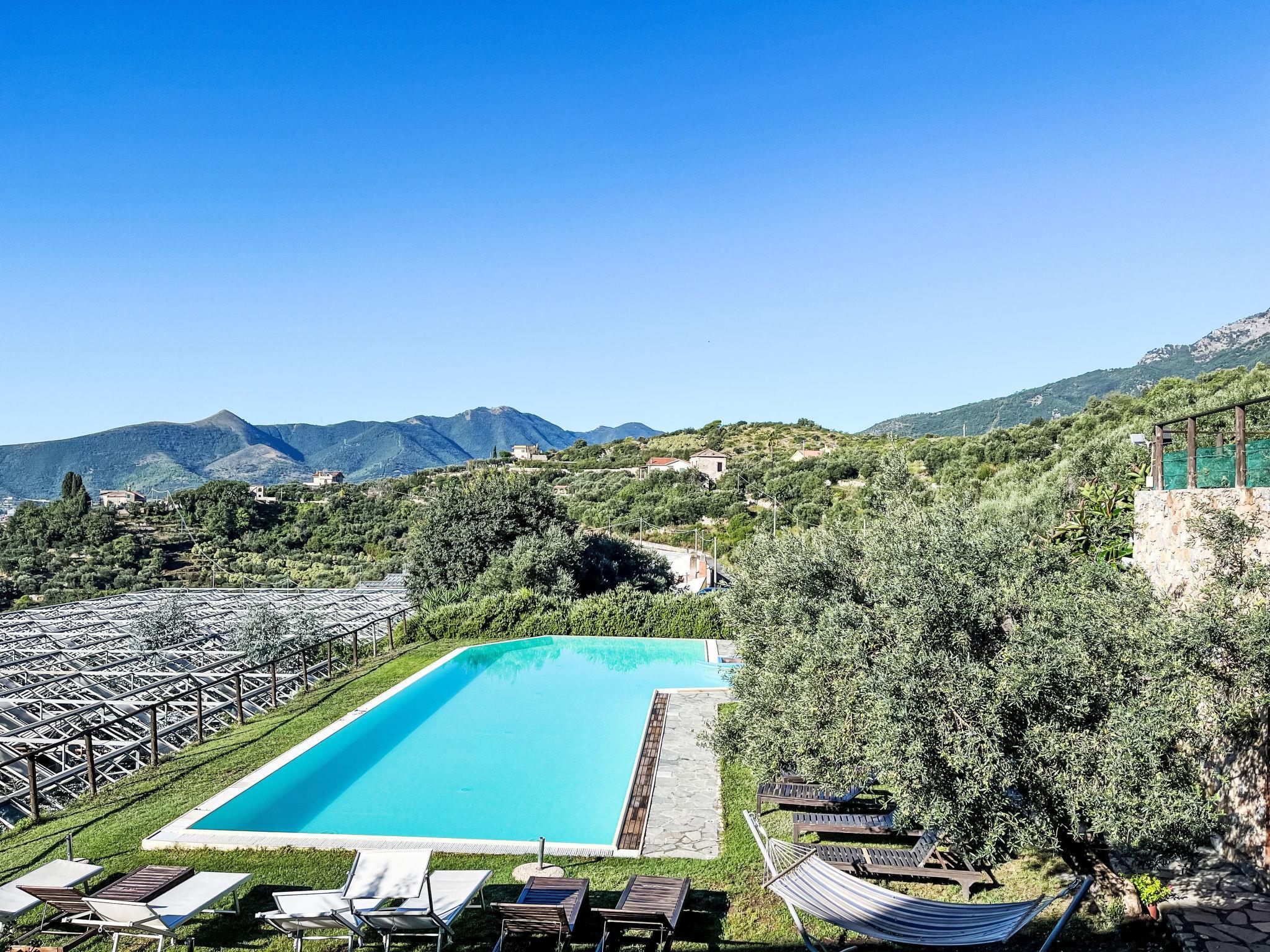 Beautiful residence "I Castellari", 2 storeys, surrounded by trees and fields. 9 apartments in the residence. 700 m from the centre of Pietra Ligure, 4 km from the centre of Finale Ligure, in a secluded, quiet, sunny position on top of a hill, 700 m from the sea. For shared use: park 2'000 m2, well-kept garden, swimming pool (15 x 7 m, seasonal availability: 01.Apr. - 01.Nov.) with internal staircase. Outdoor shower. In the complex: reception, bar, breakfast room, lounge, storage room for bicycles, sun terrace, washing machine (for shared use). Parking (for 15 cars). Grocery, restaurant, bakery, café, bicycle rental, bus stop 700 m, railway station "Pietra Ligure" 3 km. Nearby attractions: Finalborgo 8 km. Please note: the photograph shows a typical example.