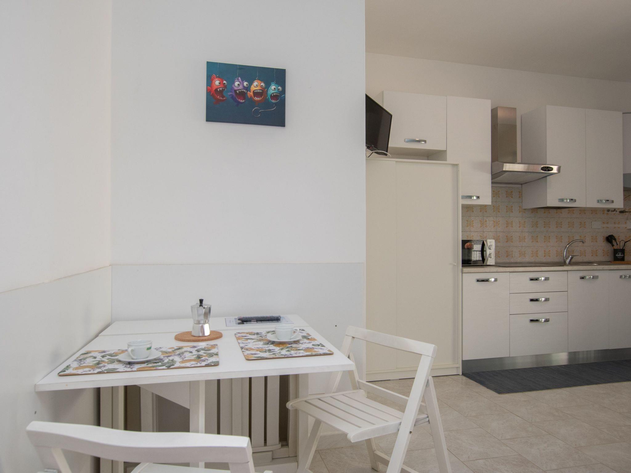 As soon as you enter, you will be enveloped in a bright atmosphere that characterises the entire space. The living room is the heart of the flat, where there is a comfortable double sofa bed. During the day, this space is transformed into a perfect environment for relaxing. The presence of an air conditioner ensures a pleasant climate in every season, allowing you to maintain the ideal temperature at all times.