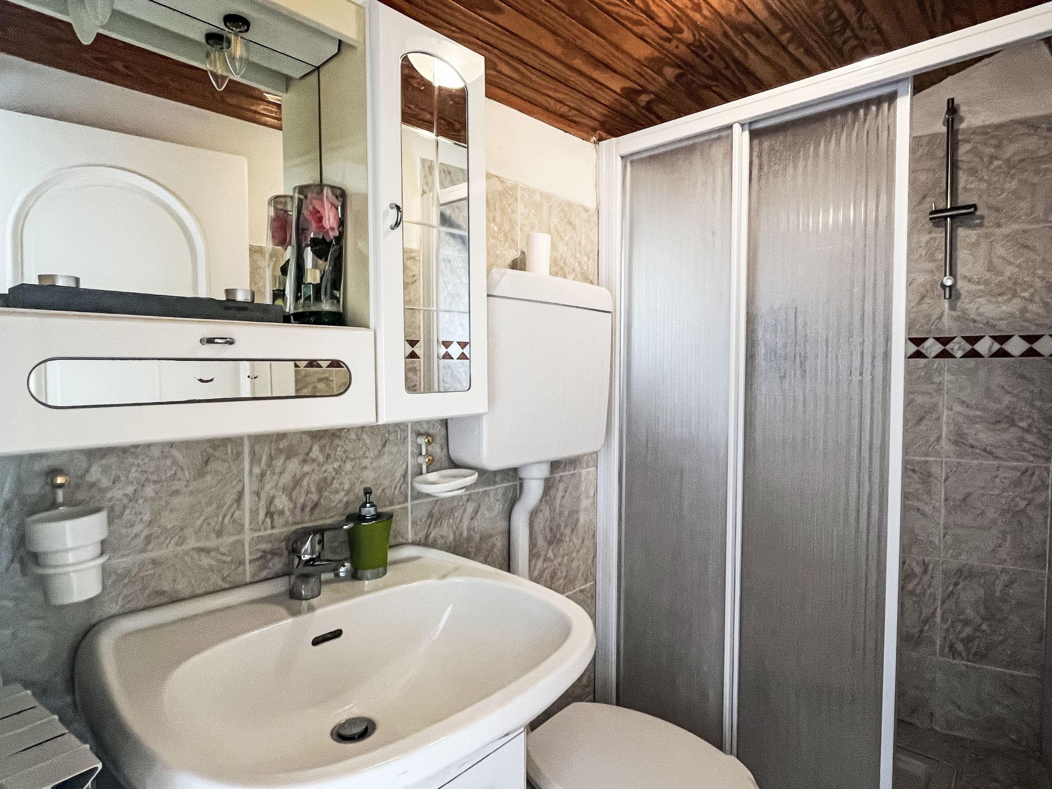 "Gionni", 4-room house 95 m2 on 2 levels. Practical and cosy furnishings: living/dining room with dining table. Bath/bidet/WC. Upper floor: (spiral staircase), 1 room with 1 double bed (1 x 160 cm, length 200 cm). 1 room with 1 x 2 bunk beds (90 cm, length 200 cm). Kitchen-/living room (oven, Gas stove, 4 gas rings, toaster, kettle, freezer, electric coffee machine) with dining table, wood-burning stove. Shower/WC. No heating option. Terrace 12 m2. Terrace furniture. Panoramic view of the mountains and the resort. Facilities: washing machine, baby cot. Internet (WiFi, free). Please note: private entrance, smoke alarm, fire extinguisher. IT008041B5T89FWTDQ