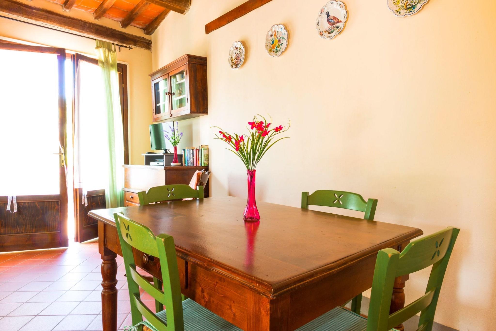 Denne bondegård ligger i hjertet af Toscana i en naturskøn beliggenhed på landet. Det er det perfekte sted at prøve autentiske produkter fra denne overdådige region midt i den uspolerede natur og charmerende atmosfære i dette fantastiske landskab. Bondegården producerer vin og har en lille, malerisk restaurant, hvor gæsterne kan arrangere retter fra traditionelle toscanske retter. Gæsterne har adgang til en smuk panoramisk pool, fuldt udstyret med borde, stole, parasoller og udendørs brusere samt et fællesområde, hvor vaskerummet og en stor terrasse kan findes. Til afslapning kan gæsterne nyde et spa med tyrkisk bad, jacuzzi og massagebruser og sauna. Ejerne er glade for at få gæsterne til at deltage i produktionen og forklare, hvordan alt er dyrket, men vigtigst også at smag det hele: vin, grappa, vin Santo, og limoncello. Det giver en masse sjov på gården!