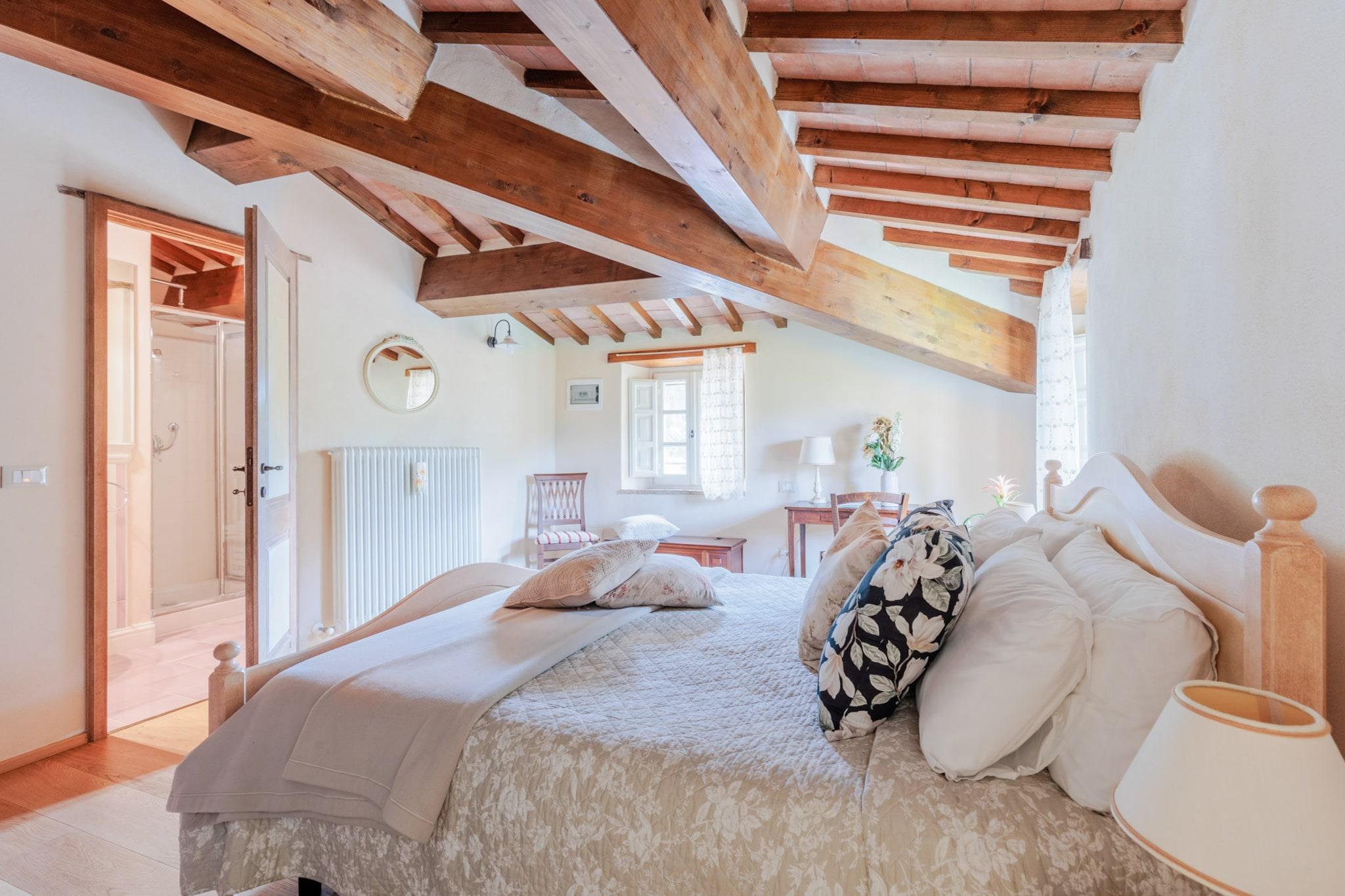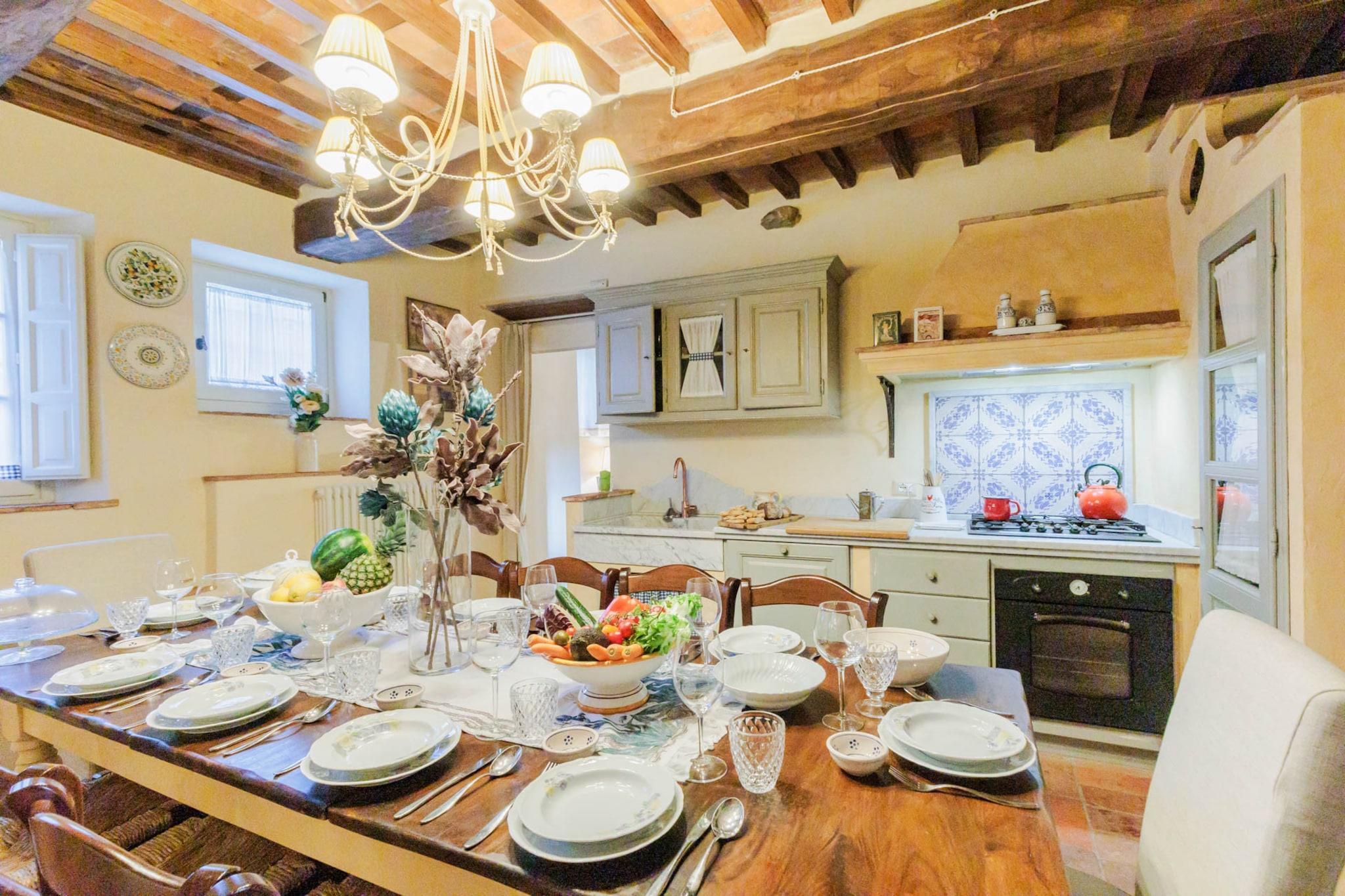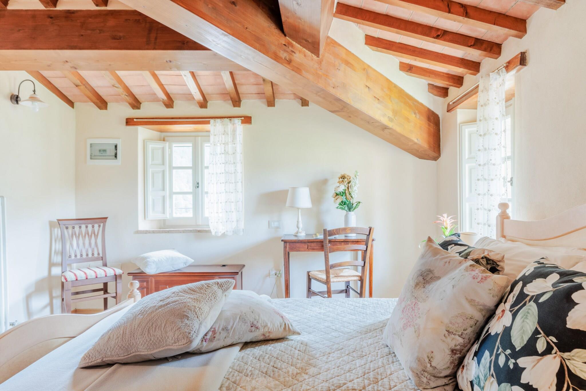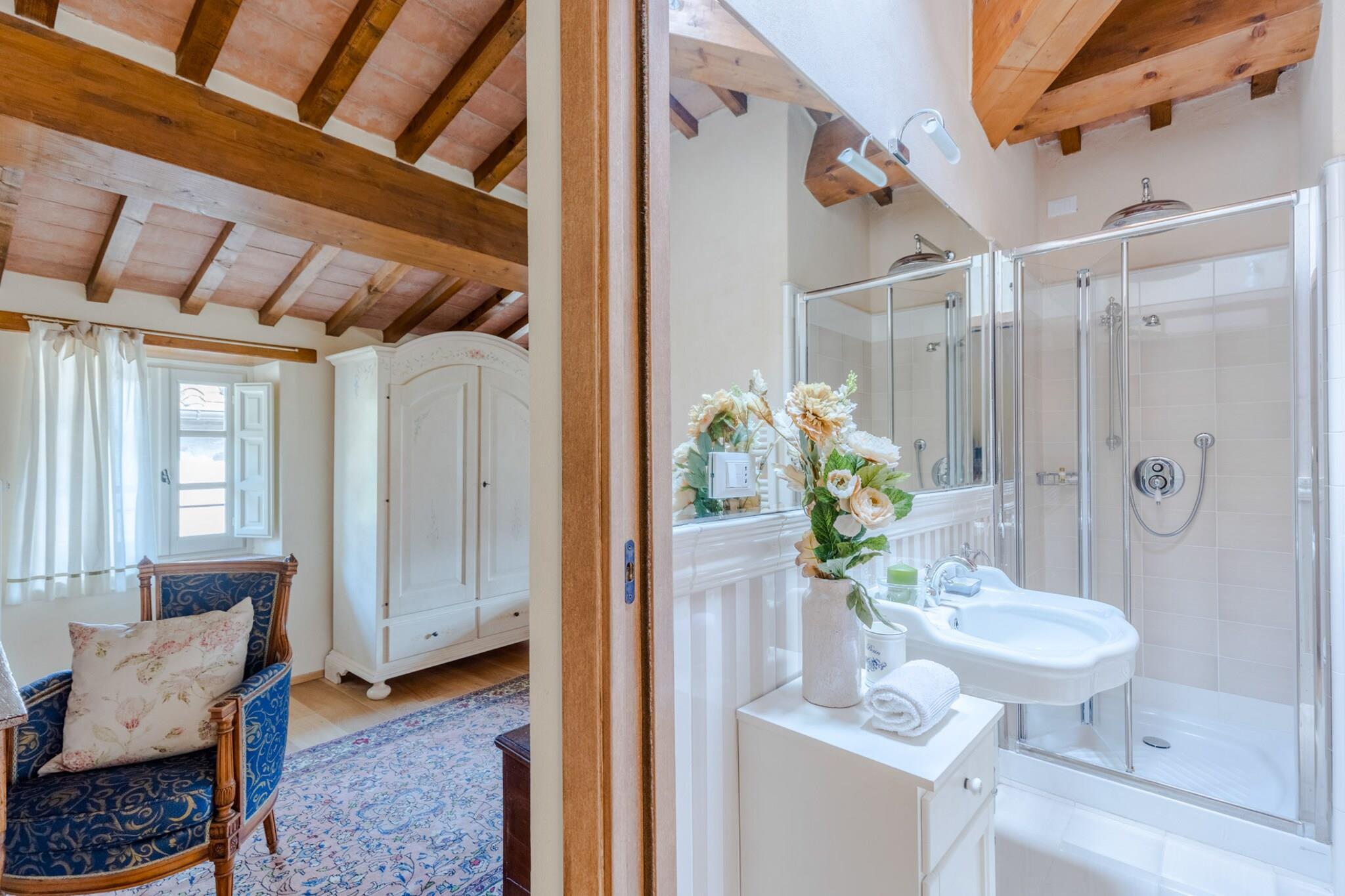 Velkommen til Dimora delle Camelie, hvor elegance møder charme i smukke omgivelser. Hjemmet har antikke cotto-gulve, fantastiske lysekroner og eklektisk kunst, der blander sig problemfrit med designermøbler. Mørke trædetaljer og moderne apparater løfter den luksuriøse atmosfære og gør det til et perfekt tilflugtssted. Den private, lukkede have og terrasse ligner din egen café, komplet med et spisebord og en hyggelig opholdsstue omgivet af autentiske stenmure - ideelt til at nyde din morgenkaffe eller en godnatdrink efter en dag med lokal udforskning. Beliggende i den maleriske landsby Sant'Andrea di Compito, fordyber Dimora delle Camelie dig i en rolig atmosfære badet i middelalderlig charme. Landsbyen er berømt for sin årlige udstilling af kameliaer, en hentydning til dens historiske handelsforbindelser med Japan i begyndelsen af 1800-tallet. Gå en tur i de middelalderlige gader ved solopgang eller solnedgang, og oplev århundreder gamle villaer, charmerende kilder og smukke landskaber, mens kun en kort køretur på 9 km (ca. 15 minutter) tager dig til det pulserende hjerte af Lucca. Denne villa tilbyder moderne bekvemmeligheder, herunder Wi-Fi, tv og aircondition i hver af de fire soveværelsessuiter, der hver især har dobbeltsenge og eget badeværelse. Med ejerne, der bor i nærheden på høloftet og i en fælles have, vil du opleve en varm og fællesskabsrig atmosfære. Parkering er bekvemt placeret 1-2 minutters gang fra huset. Mens hvert soveværelse har aircondition, bevarer opholdsstuen i stueetagen en luftig fornemmelse, så du fuldt ud kan nyde den skønhed i det toscanske landskab. Bemærk: Turistskat skal betales på ejendommen.