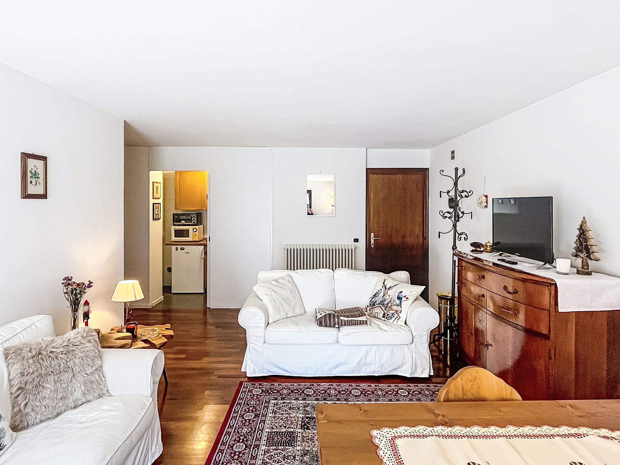 "Campicioi", 3-room apartment 70 m2 on 1st floor. Bright, cosy furnishings: living/dining room with dining table and TV. Exit to the balcony. 1 double bedroom with 1 double bed (160 cm, length 190 cm). Exit to the balcony. 1 double bedroom with 1 double bed (160 cm, length 190 cm), TV. Kitchen (dishwasher, 4 gas rings, kettle, microwave, freezer). Shower/bidet/WC. Heating. Heating available only from 01.11. to 30.04. Wooden floors. Large balcony. Very beautiful panoramic view of the mountains. Facilities: washing machine, iron, baby cot for up to 2 year olds (extra), hair dryer. Garage on the property (1 car). Please note: non-smokers only, parking space for small car only. Fire extinguisher, no lift. IT022143C23KFA9GDJ