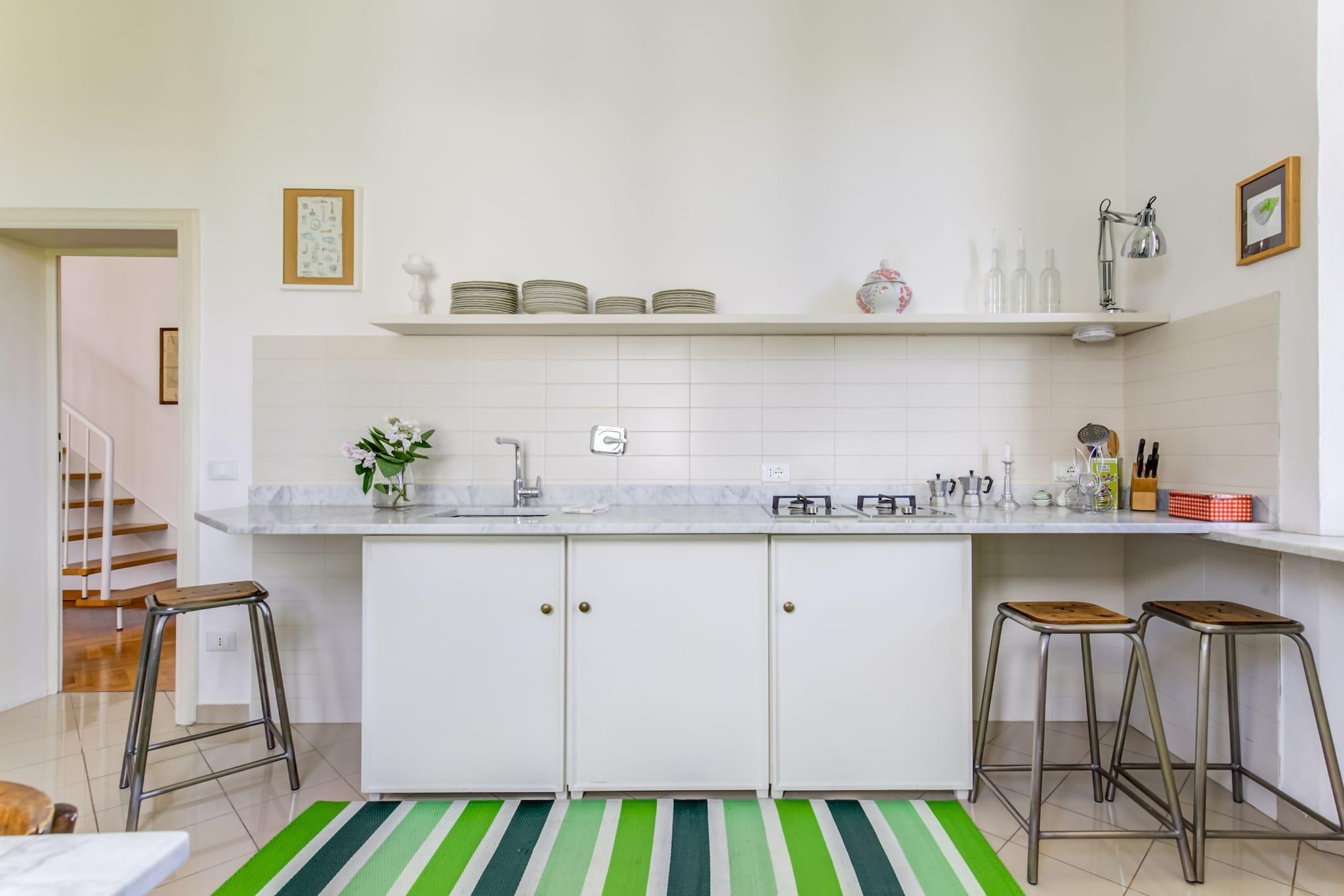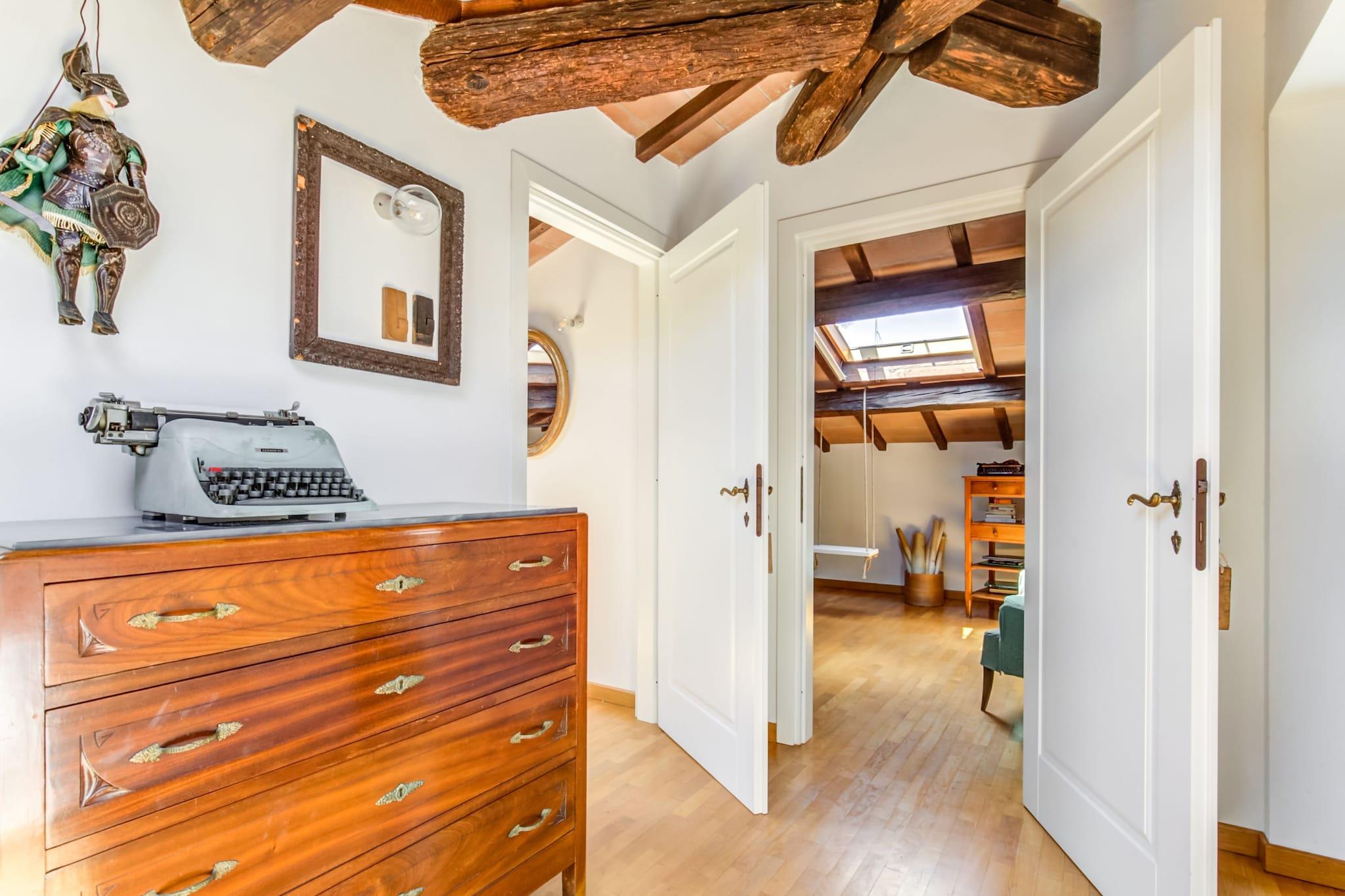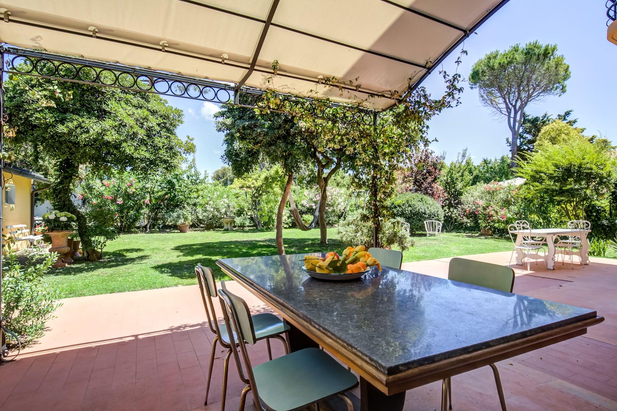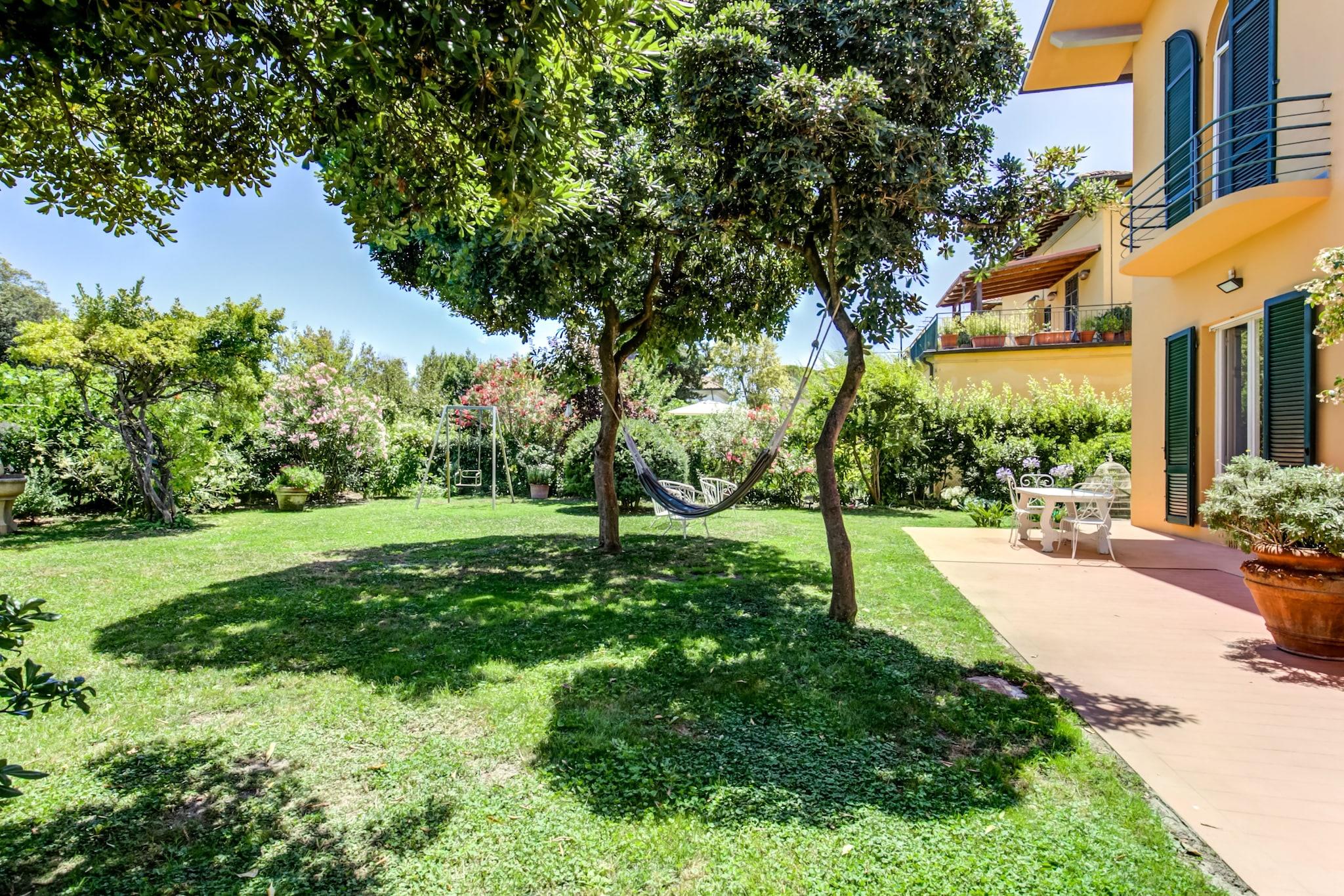 Gemt væk i en fredelig villavej kun en kort gåtur fra Pisas ikoniske skæve tårn, tilbyder denne charmerende ferievilla fra det tidlige 20. århundrede den perfekte balance mellem historisk elegance og moderne komfort. Dens private have, skyggefulde terrasser og indbydende udendørs rum skaber en landlig atmosfære lige i hjertet af byen - hvilket gør den til en ideel base for familier eller grupper, der er ivrige efter at udforske Toscanas skatte. Med legeredskaber i haven og en høj stol til rådighed for de mindste. Uanset om du nipper til vin på tagterrassen, laver mad i det rummelige køkken eller nyder cykelture (udlejning kun få meter væk), blander hvert øjeblik her komfort med kultur. En afslappet 10-minutters gåtur bringer dig til de arkitektoniske vidundere på Piazza dei Miracoli, hjemsted for Duomo, dåbskapellet og det verdensberømte skæve tårn. Dyk dybere ned i Pisas rige historie på Piazza dei Cavalieri eller slap af med en spadseretur langs floden Arno. Hvis naturen kalder, er den ekspansive Parco Naturale Migliarino San Rossore kun 15 minutter væk og perfekt til vandreture, fuglekikkeri eller en fredelig picnic. For madelskere er nabolaget en fornøjelse. Kun få skridt fra hjemmet finder du hyggelige caféer, lokale bagerier og autentiske restauranter som Trattoria da Stelio og Ristorante Da Bruno, hvor traditionelle toscanske smage skinner. Hvis du har lyst til fisk og skaldyr, tilbyder Marina di Pisa, kun 15 km væk, naturskønne restauranter ved havet og rolige strande. Det bedste af det hele, at det kun er 6 km væk fra Pisa Lufthavn, dit toscanske eventyr begynder i det øjeblik, du lander.