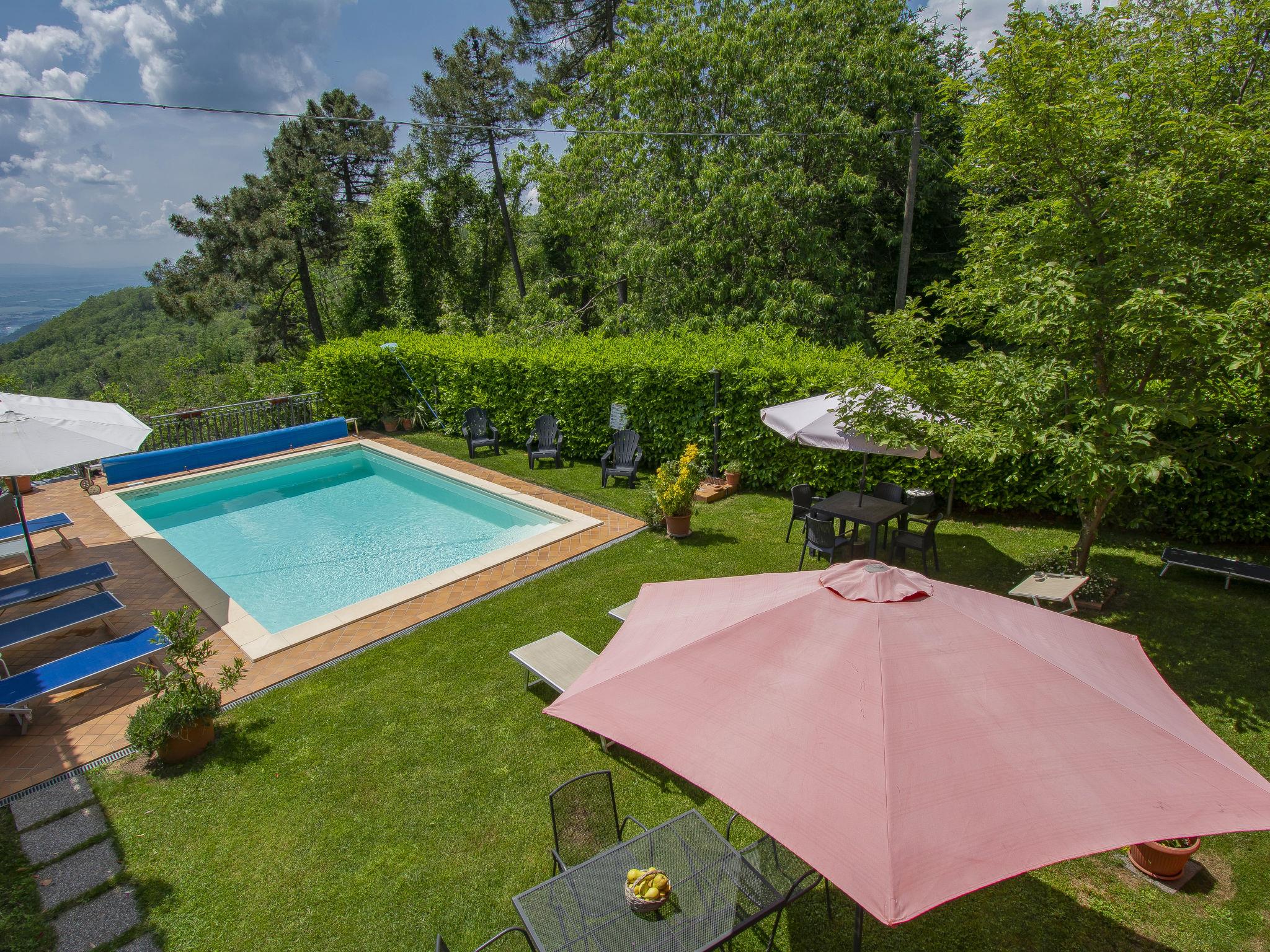 Very beautiful, cosy 2-family house "Matteo", 469 m a.s.l., renovated in 2018, surrounded by trees. In a quiet, sunny, elevated position. For shared use: garden 150 m2 (fenced) with plants and flowers, swimming pool (7 x 5 m, seasonal availability: 01.Apr. - 15.Oct.) with salt water. Garden furniture. Heating to be paid on the spot (16.Apr. - 14.Nov.), heating available only from 15.Nov. - 15.Apr.. Public parking 50 m on the road. Grocery 100 m, supermarket 10 km, restaurant 1.5 km, bar 100 m, bus stop 100 m, railway station 15 km. Walking paths from the house 5 km. Nearby attractions: Montecatini Terme 15 km, Pistoia 203 km, Firenze 55 km. Well-known ski regions can easily be reached: abetone 40 km. Please note: baby equipment (included). Groups of teenagers on request only.