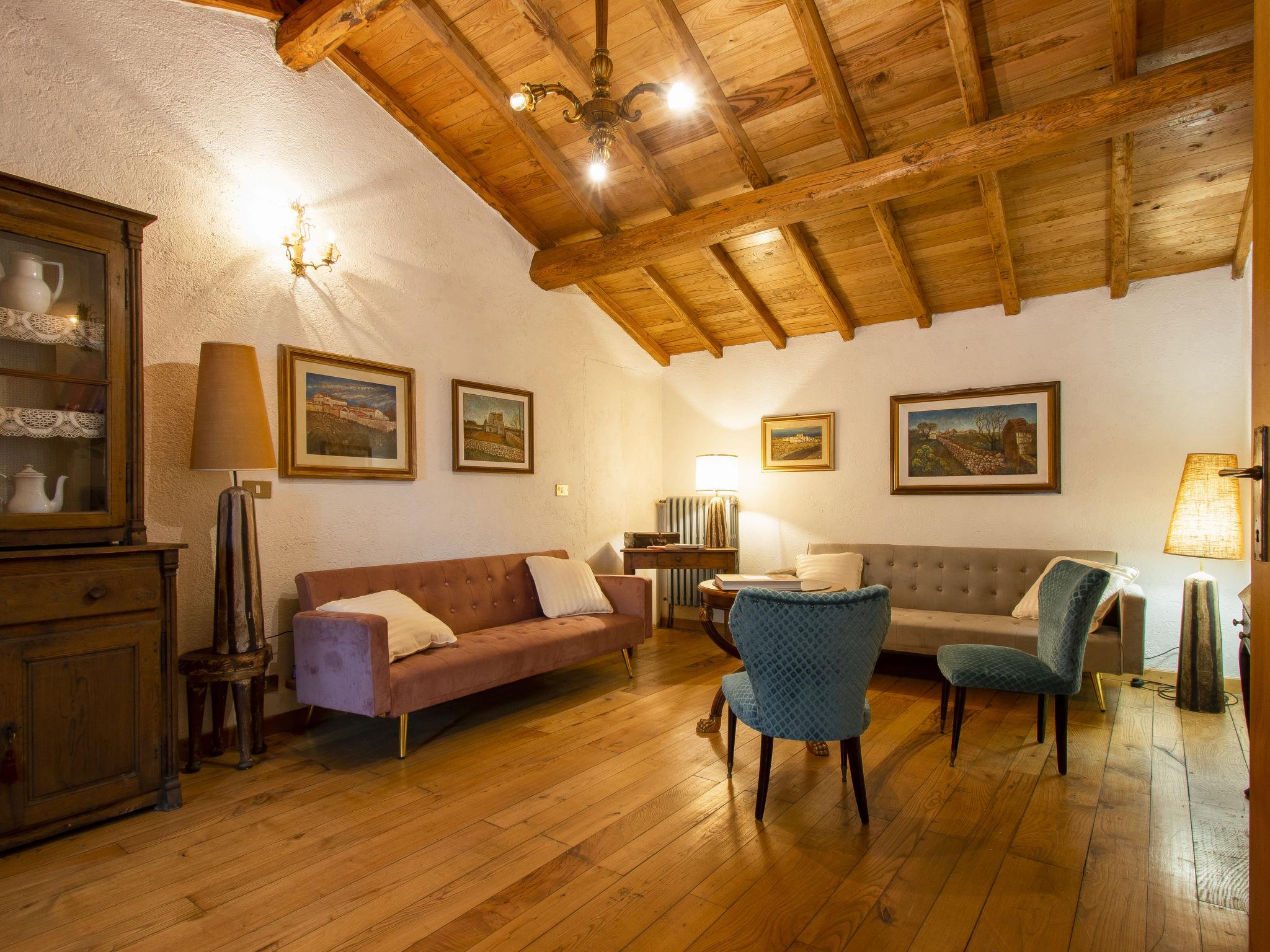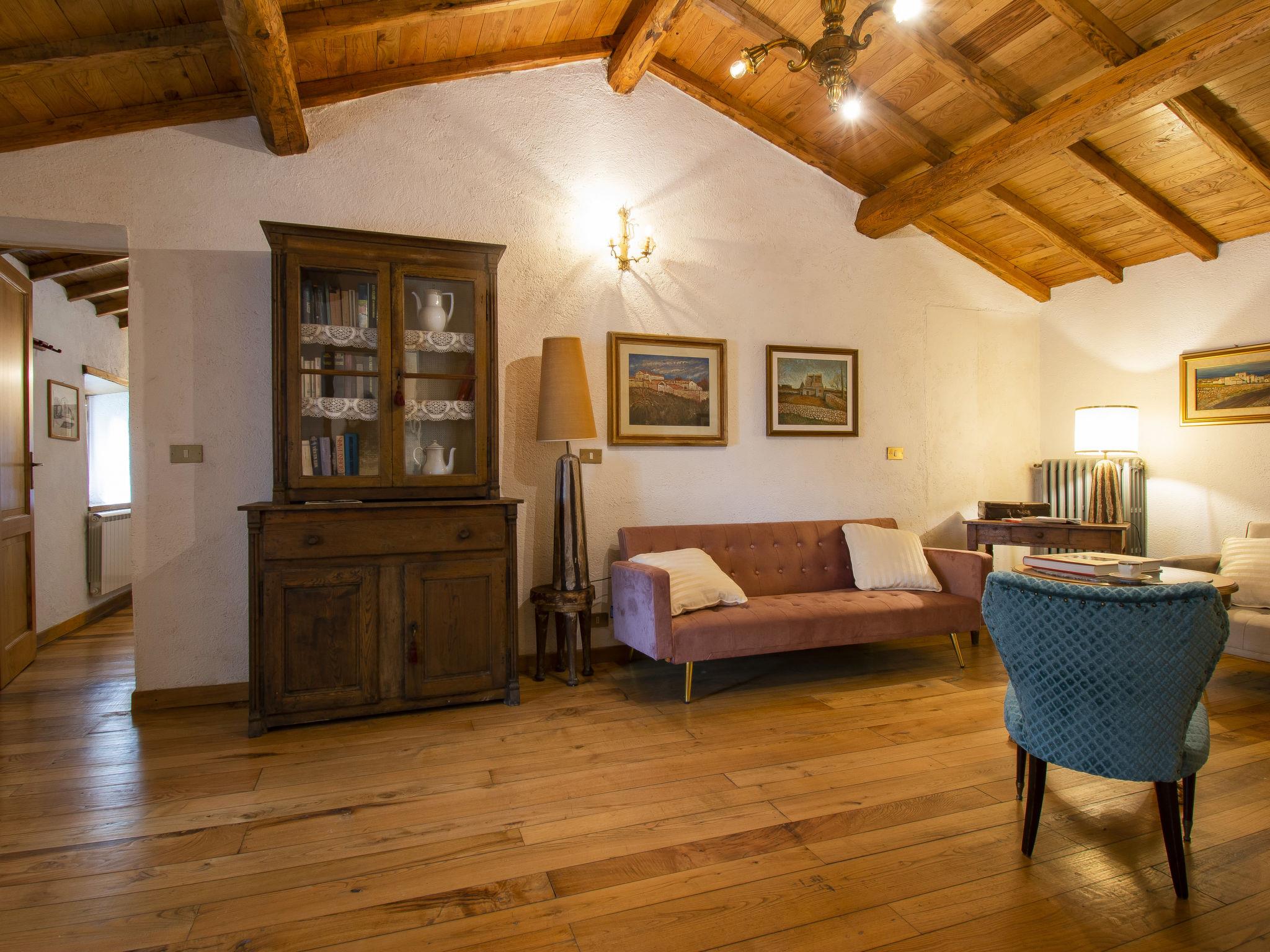 "I 3 Faggi", 4-room house 160 m2. Comfortable and rustic furnishings: 1 double bedroom with open-hearth fireplace. Open kitchen (4 hot plates, oven, dishwasher, microwave) with open-hearth fireplace, dining table and digital TV. Bath/shower. Wood heating. Upper floor: open living room with digital TV. 1 double bedroom. 1 double bedroom with 1 bed. Bath/shower/WC. Wooden floors. Comfortable furnishings in the country house style. Terrace furniture, balcony furniture, barbecue, deck chairs. Panoramic view of the mountains. Facilities: washing machine, iron, mosquito net, baby cot for up to 2 year olds, hair dryer, logs (extra). Internet (WiFi, free). Please note: maximum 1 pet/ dog allowed. Smoke alarm, fire extinguisher. IT047024C2MGAQ8RSS