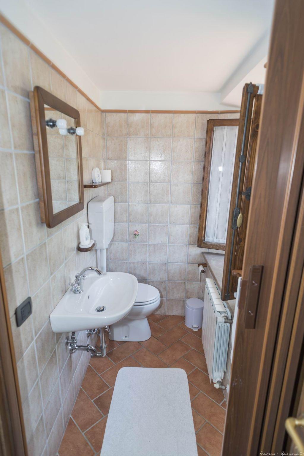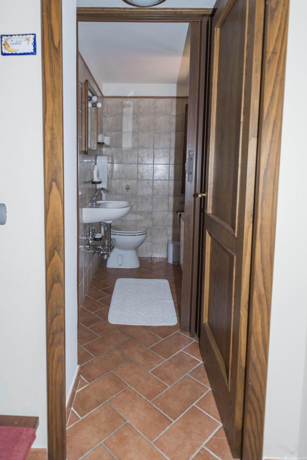 Beautiful holiday flat with garden view. 70 sqm: Entrance via external staircase and small balcony. Divided into two floors: 1st floor: kitchen-living room. - 2nd floor: living room with fireplace and satellite TV; 2 double bedrooms (1 with extra bed); bathroom with shower/WC/bidet; guest WC. Basic Wi-Fi Internet. Private garden area with garden furniture.