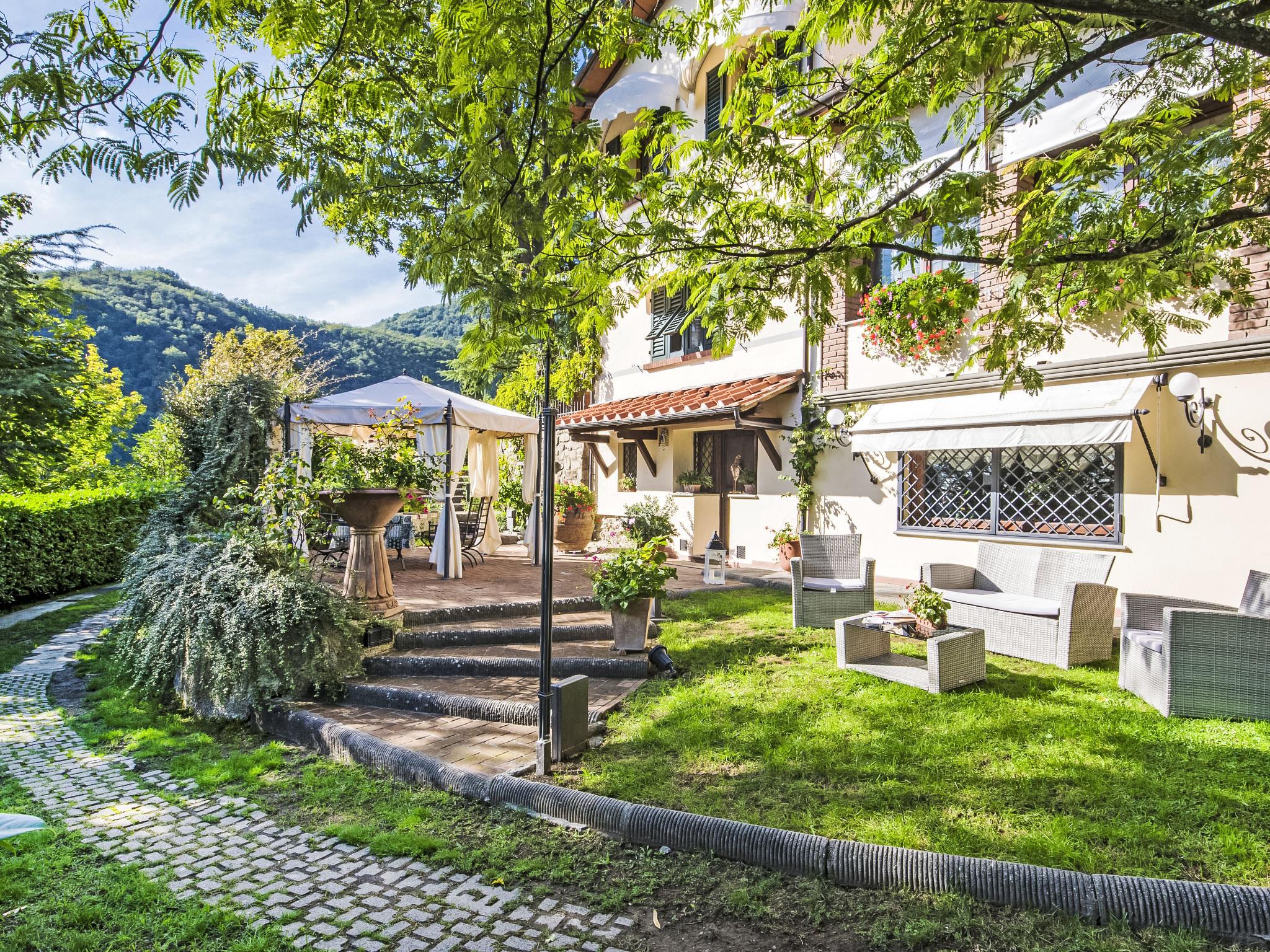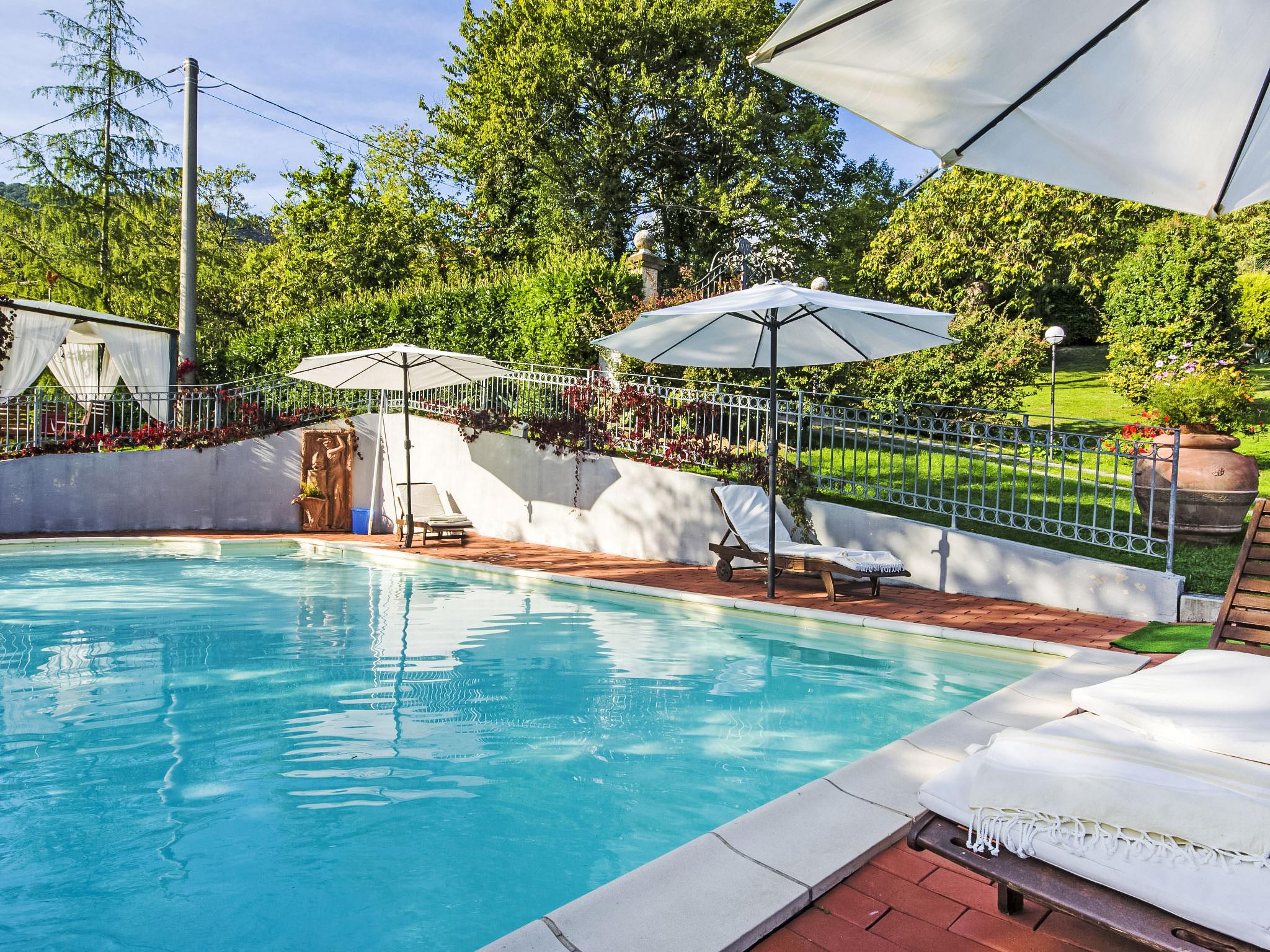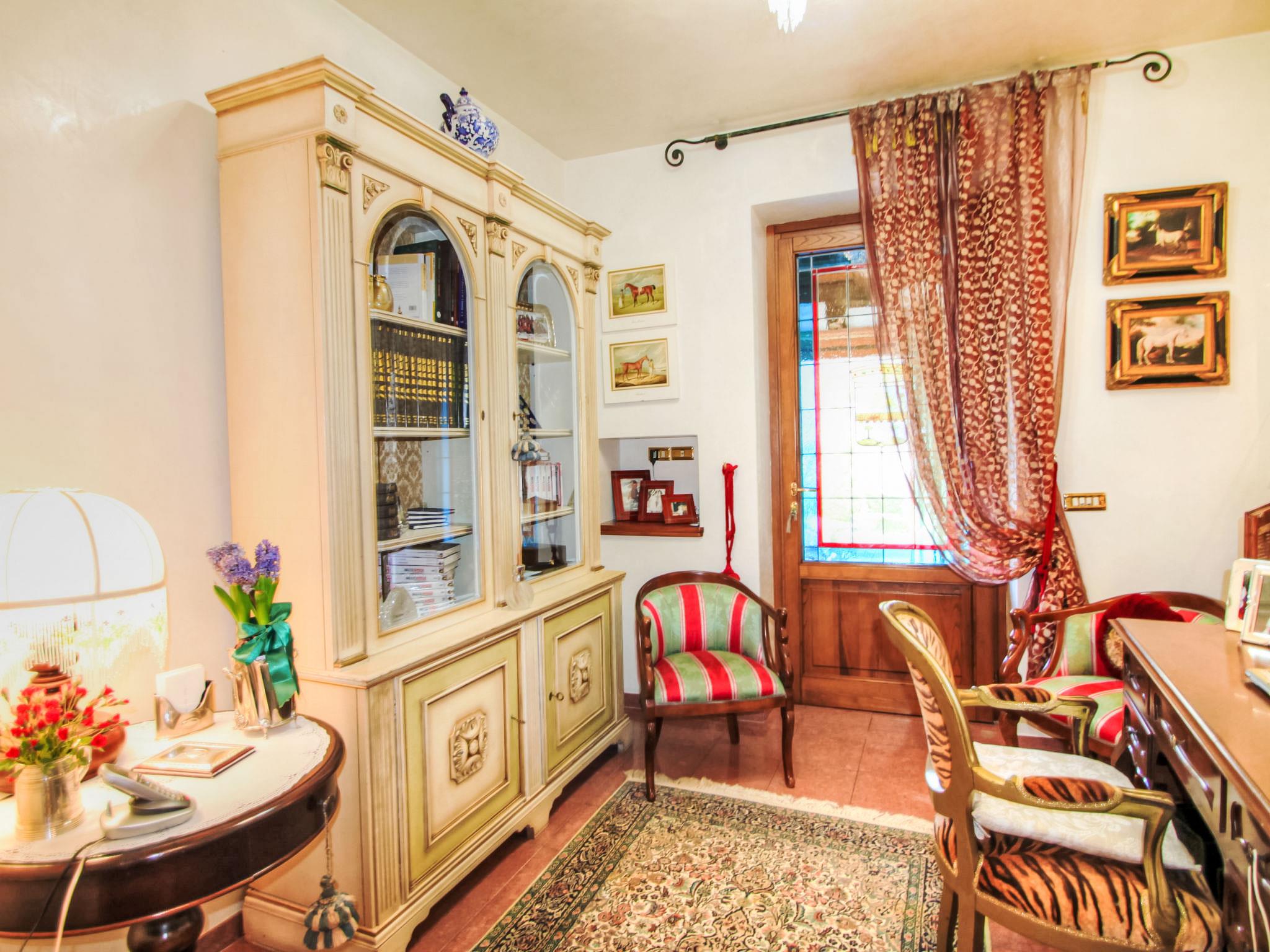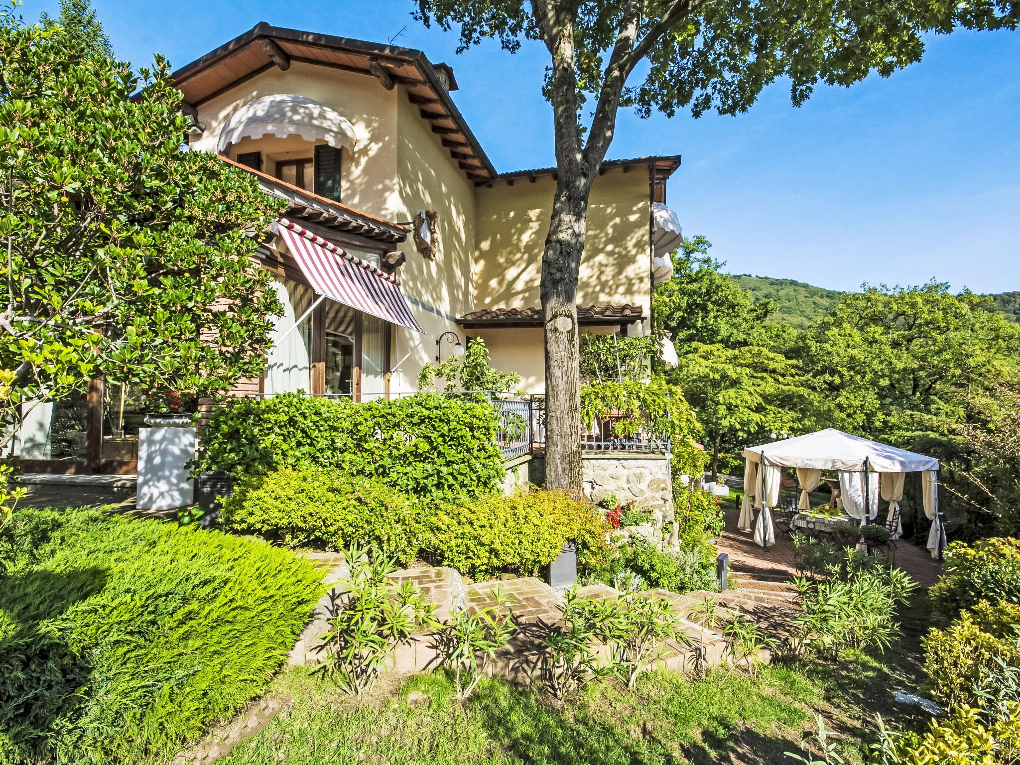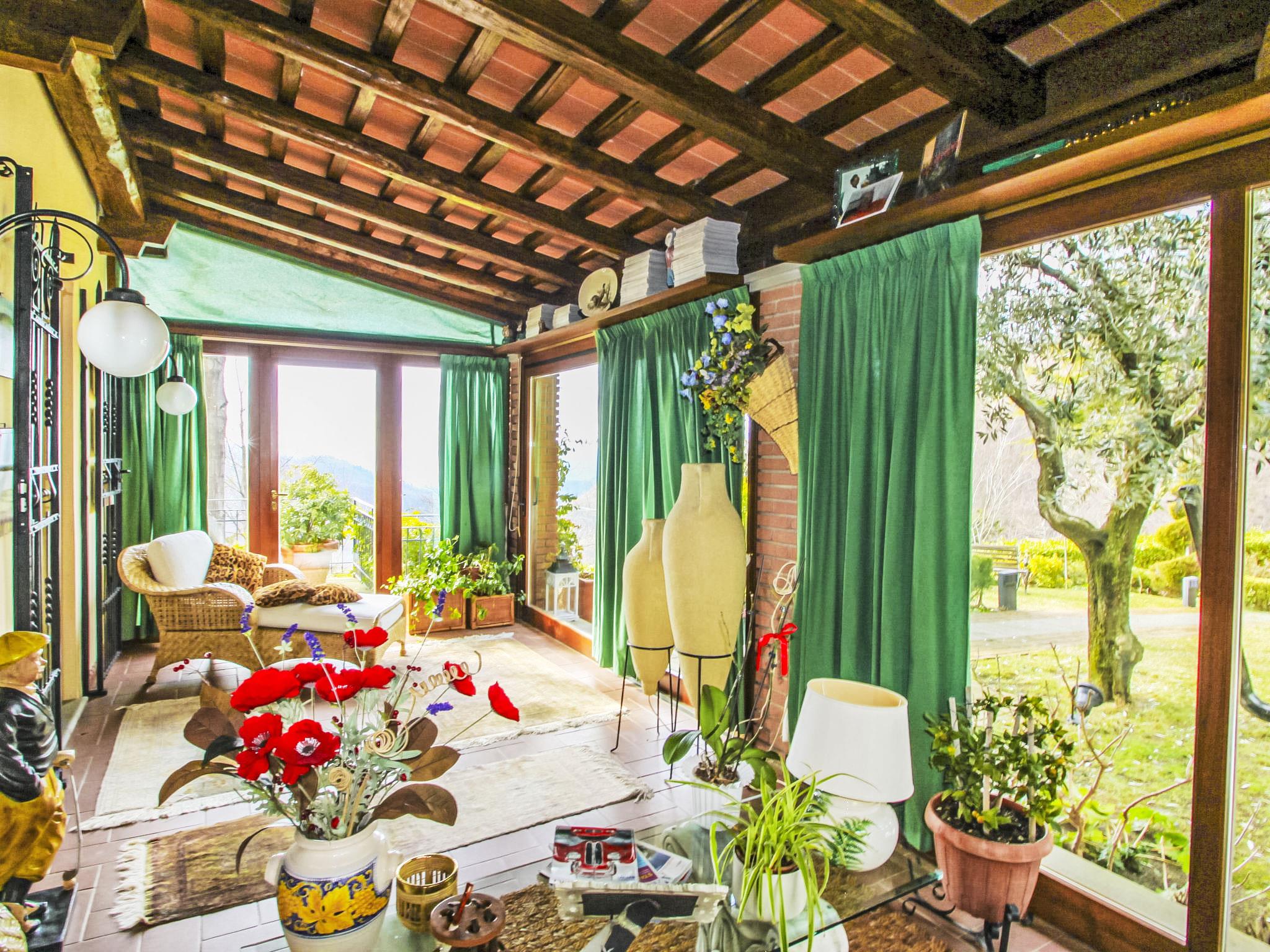 Villa Campo del Mulino is situated on the hills of Pistoia at 400 m above sea level. Ideal for a restful and regenerating holiday in the cool of the green hills. It is a good starting point for daily excursions to the sea and the beaches of Versilia (65 km) as well as the cities of art and historical towns of Tuscany: Lucca 50 km, Pisa 75 km and Siena 110 km villa "Villa Campo del Mulino", detached. 10 km from the centre of Pistoia, 45 km from the centre of Firenze, 70 km from the centre of Forte dei Marmi, in a secluded, sunny, elevated position on top of a hill, 70 km from the sea, in the countryside. Private: property 15'000 m2 (fenced), swimming pool (12 x 6 m, depth 120 cm, seasonal availability: 12.Apr. - 27.Sep.). Tennis (1 x hard court), garden furniture, barbecue. In the house: billiard table, heating to be paid on the spot, heating available only from 01.Nov. - 07.Apr.. Room cleaning weekly (included). Airport transfer (extra). Parking at the house. E-charging station. Grocery 3 km, bus stop 1.5 km, sandy beach "Viareggio - Forte dei Marmi" 70 km, thermal baths "Montecatini Terme" 25 km. Golf course (18 hole) 25 km. Guests have access to a tennis court (artificial grass), which can also be used as a football pitch. Fitness equipment. Sun terrace.
