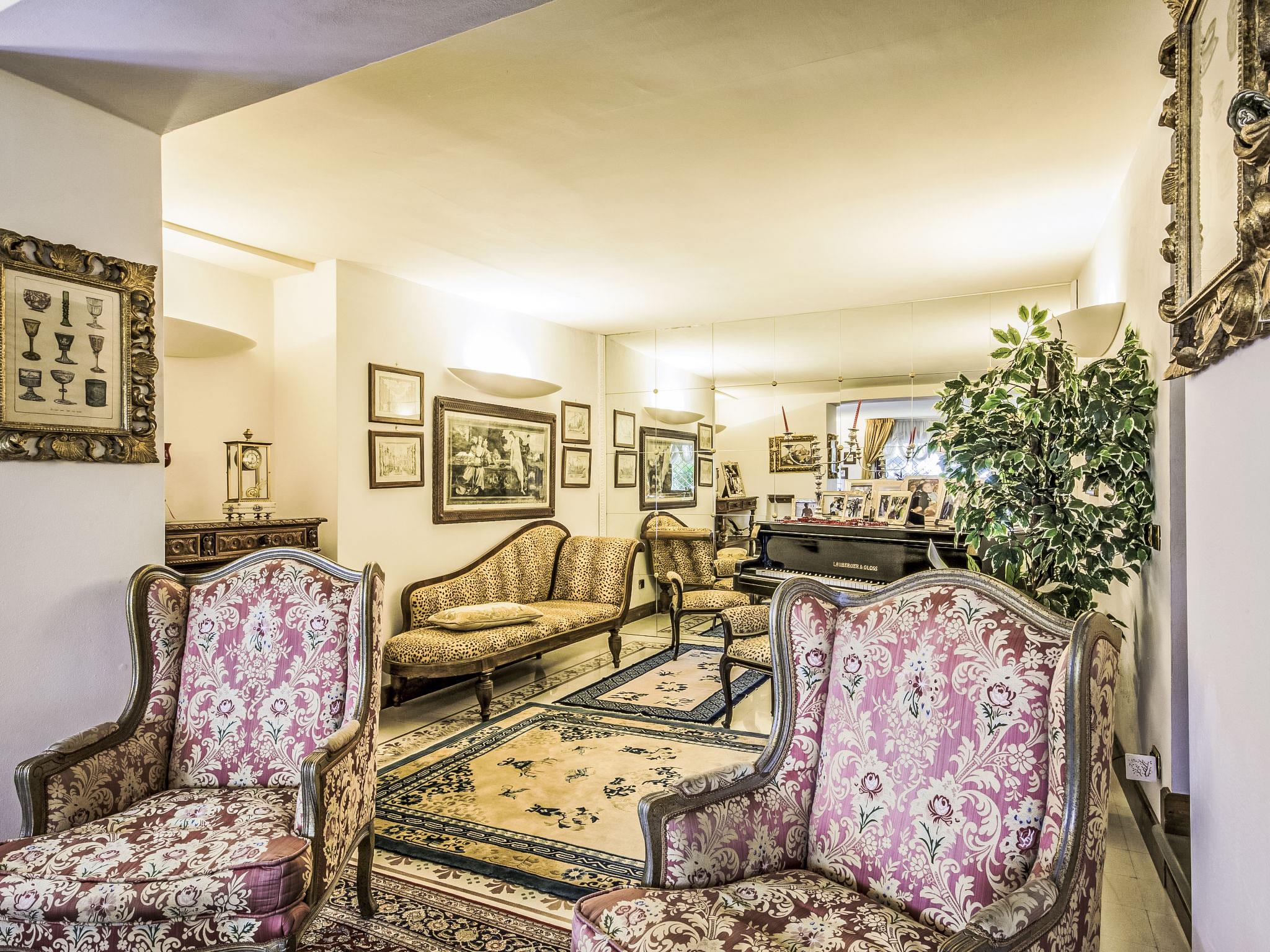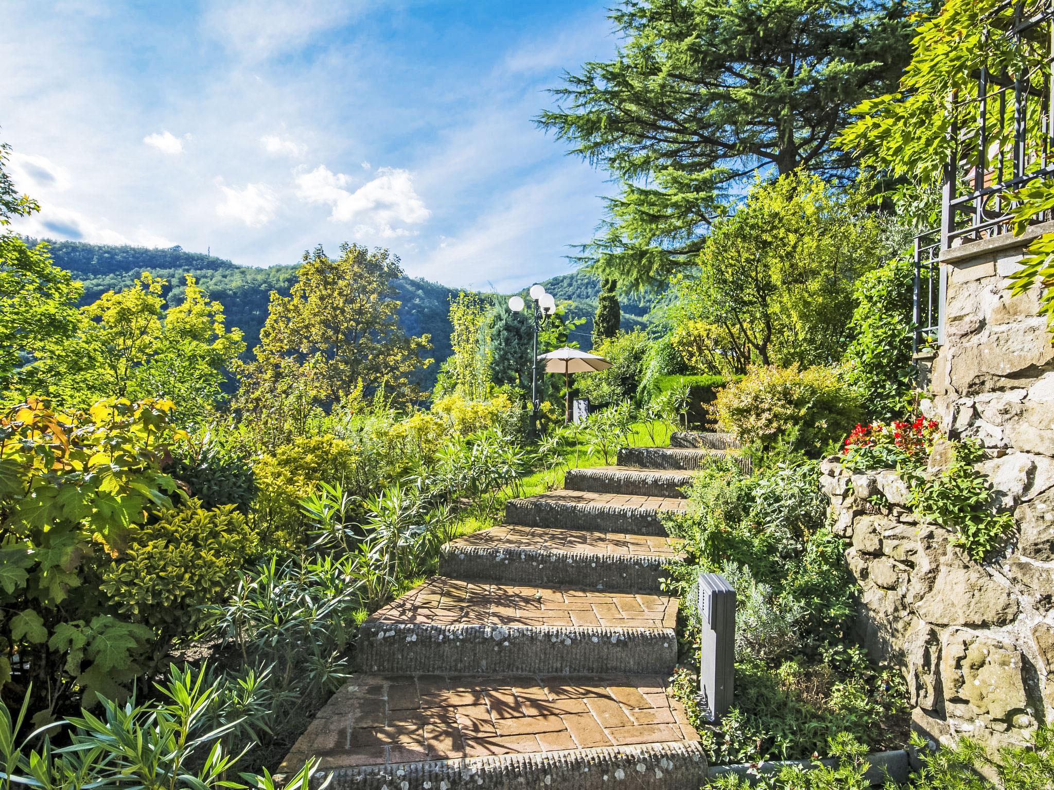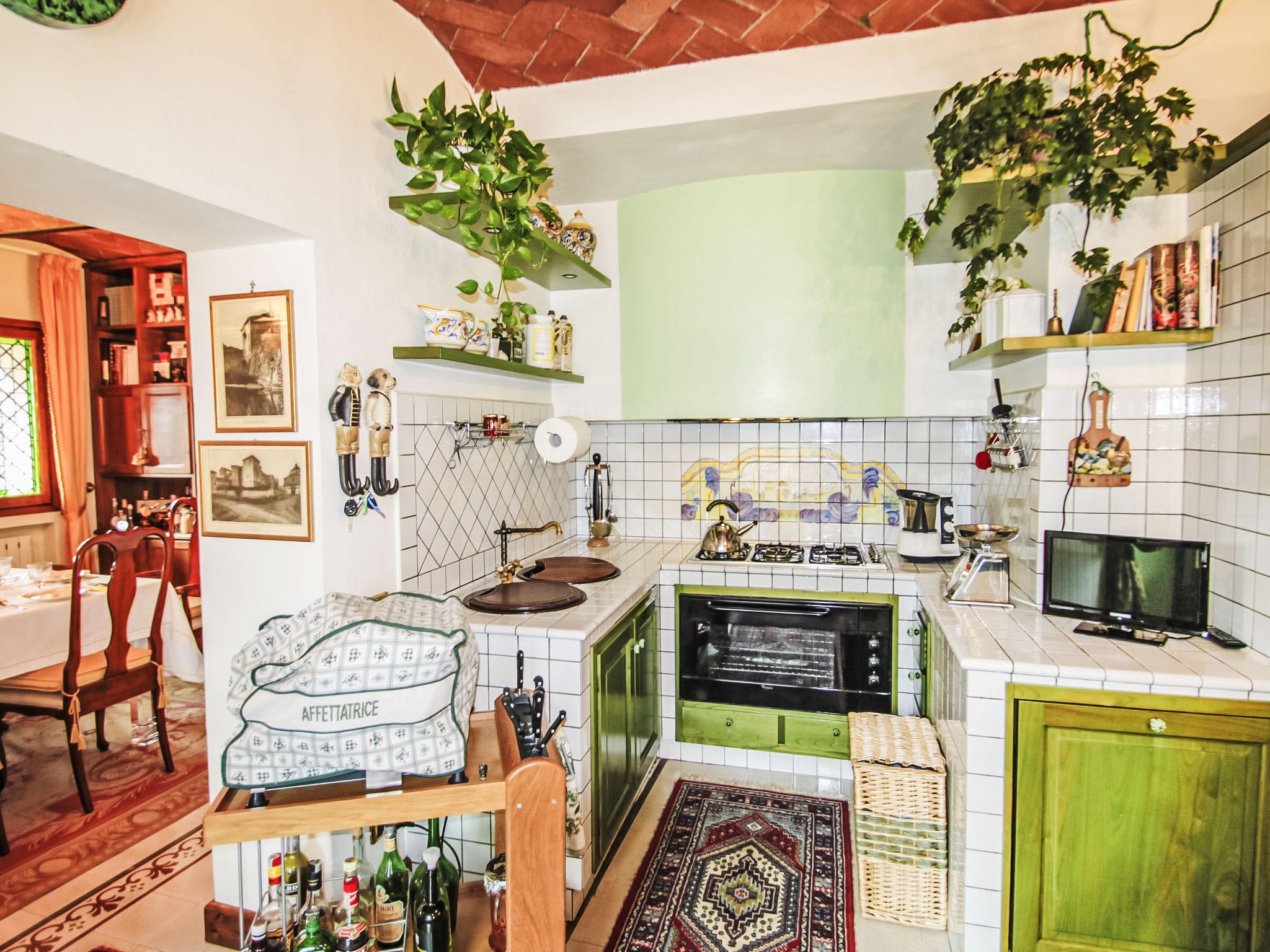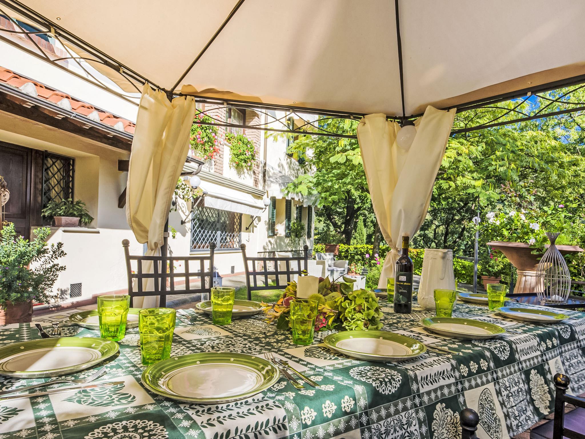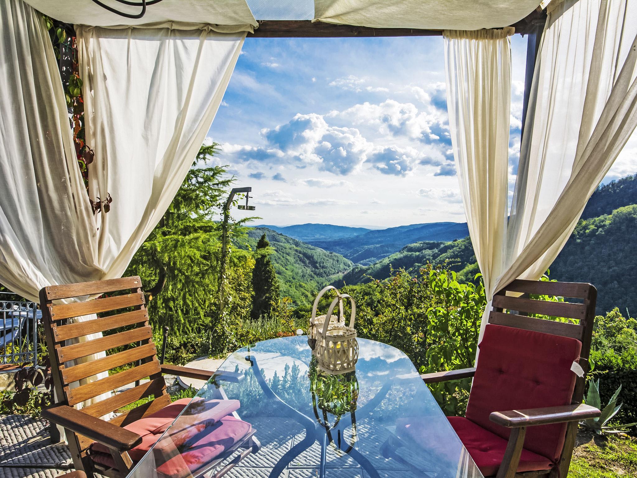 Villa Campo del Mulino is situated on the hills of Pistoia at 400 m above sea level. Ideal for a restful and regenerating holiday in the cool of the green hills. It is a good starting point for daily excursions to the sea and the beaches of Versilia (65 km) as well as the cities of art and historical towns of Tuscany: Lucca 50 km, Pisa 75 km and Siena 110 km villa "Villa Campo del Mulino", detached. 10 km from the centre of Pistoia, 45 km from the centre of Firenze, 70 km from the centre of Forte dei Marmi, in a secluded, sunny, elevated position on top of a hill, 70 km from the sea, in the countryside. Private: property 15'000 m2 (fenced), swimming pool (12 x 6 m, depth 120 cm, seasonal availability: 12.Apr. - 27.Sep.). Tennis (1 x hard court), garden furniture, barbecue. In the house: billiard table, heating to be paid on the spot, heating available only from 01.Nov. - 07.Apr.. Room cleaning weekly (included). Airport transfer (extra). Parking at the house. E-charging station. Grocery 3 km, bus stop 1.5 km, sandy beach "Viareggio - Forte dei Marmi" 70 km, thermal baths "Montecatini Terme" 25 km. Golf course (18 hole) 25 km. Guests have access to a tennis court (artificial grass), which can also be used as a football pitch. Fitness equipment. Sun terrace.