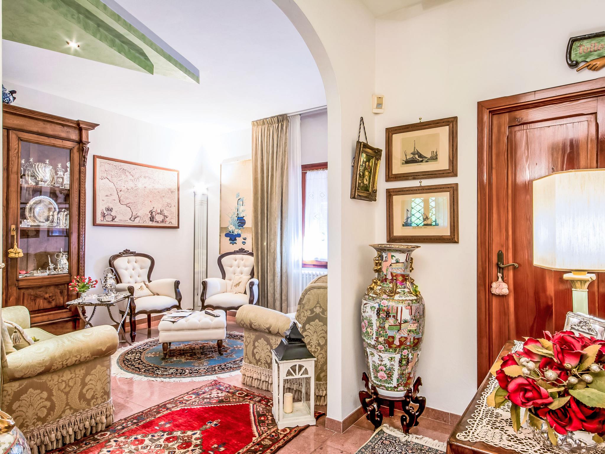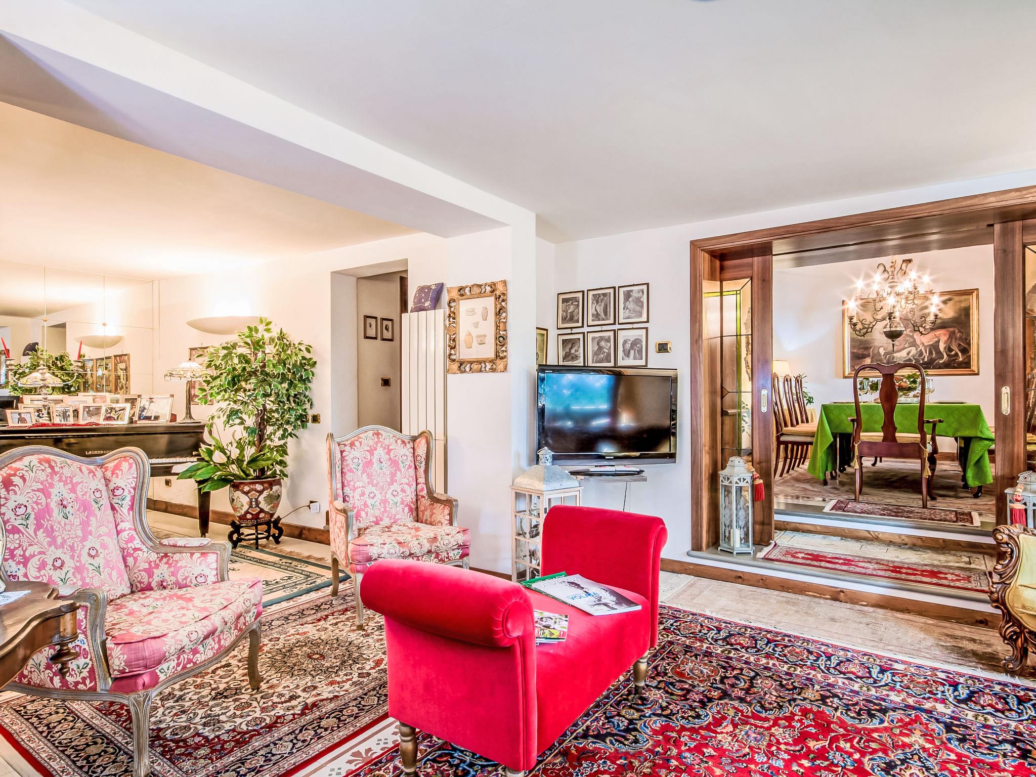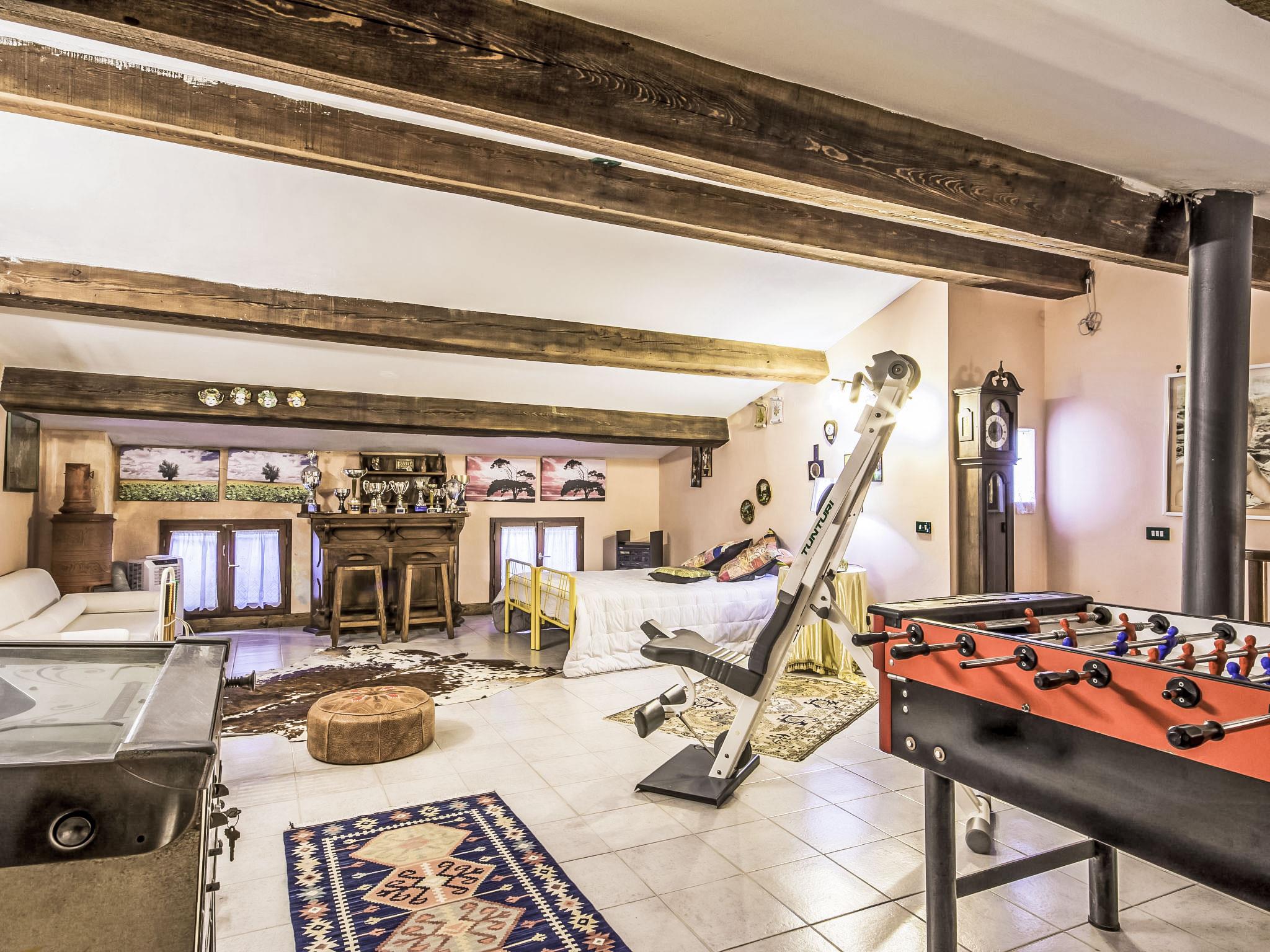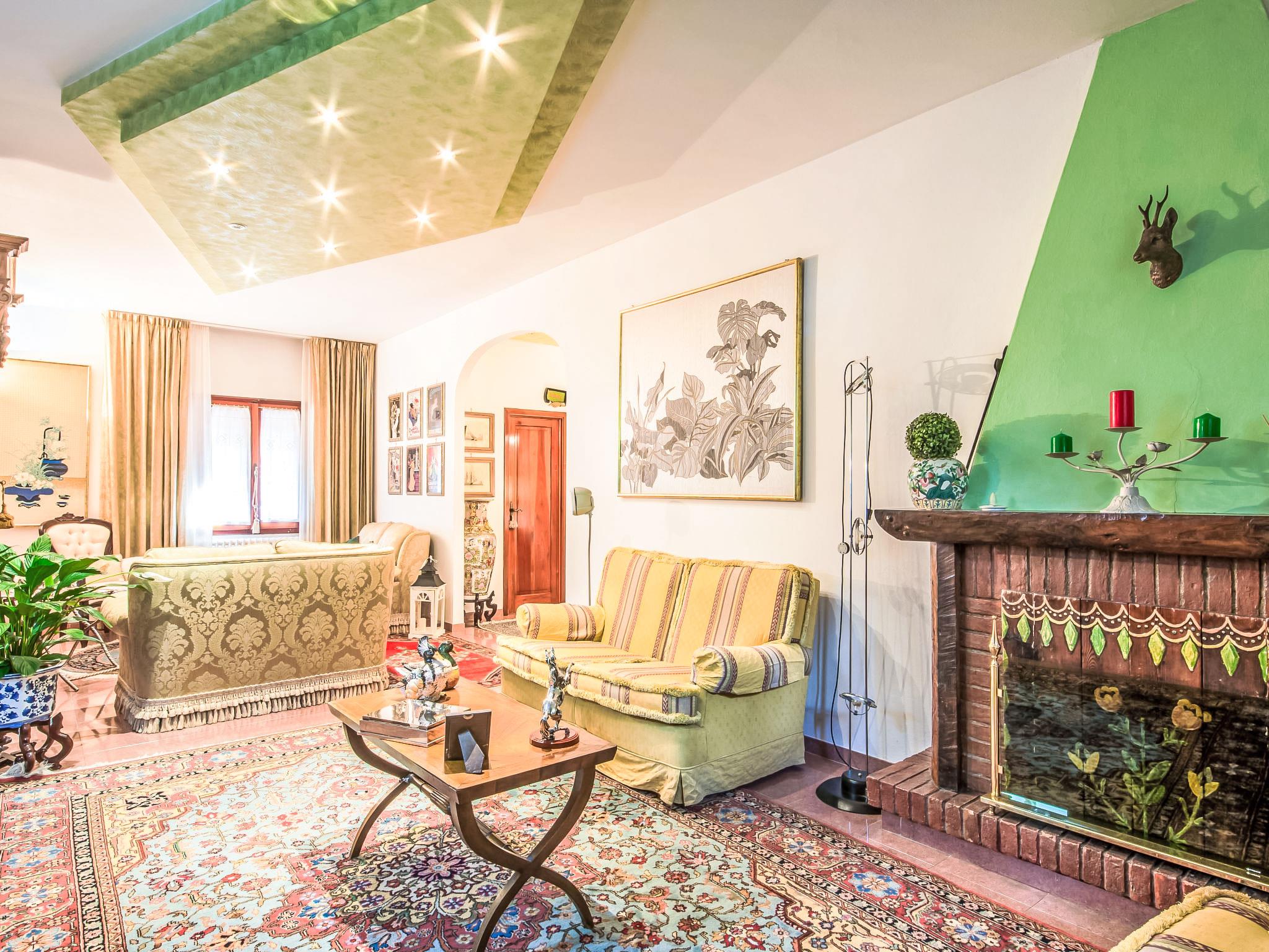 13-room house 650 m2 on 3 levels. Open living room with open-hearth fireplace. Open lounge. Dining room. Kitchen (5 hot plates, oven, dishwasher, toaster, kettle, freezer). Shower/bidet/WC. Upper floor: small lounge. Exit to the veranda. Living room with open-hearth fireplace and satellite TV. Playroom. Living room with open-hearth fireplace and satellite TV. 1 small room with 1 bed. 1 double bedroom with shower. Kitchenette (5 hot plates, oven, dishwasher, freezer). Bath/bidet/WC. 2nd upper floor: 1 room with sloping ceilings, ceiling height 175 - 300 cm with 2 beds. 1 room with 1 bed. 2 double bedrooms. Bath/bidet/WC. Garden. Terrace furniture. Facilities: washing machine. Internet (WiFi, free). Please note: smoke alarm, fire extinguisher. The bathroom on the second floor has a hydromassage bath. IT047014C2ZW4OOC2U