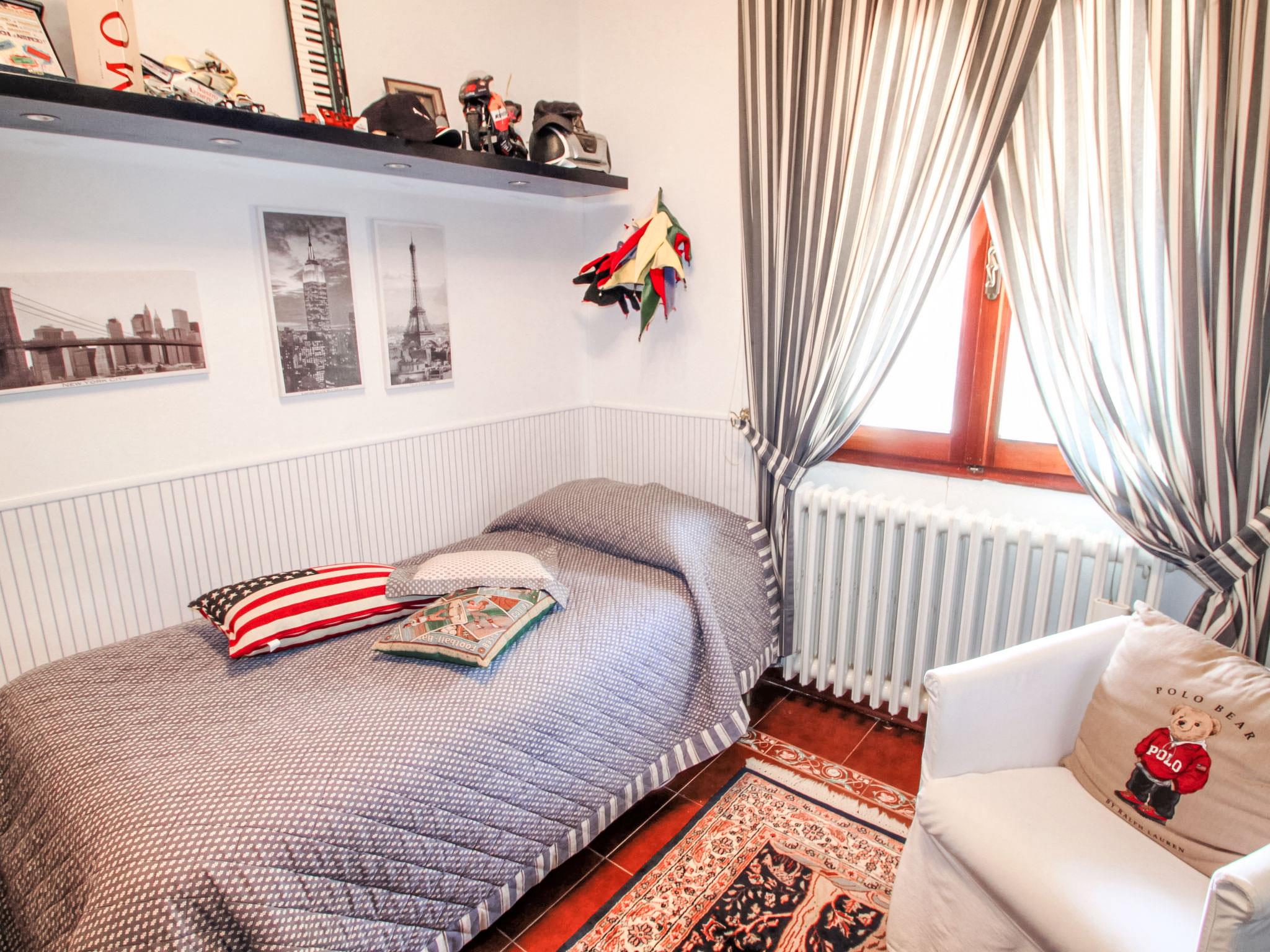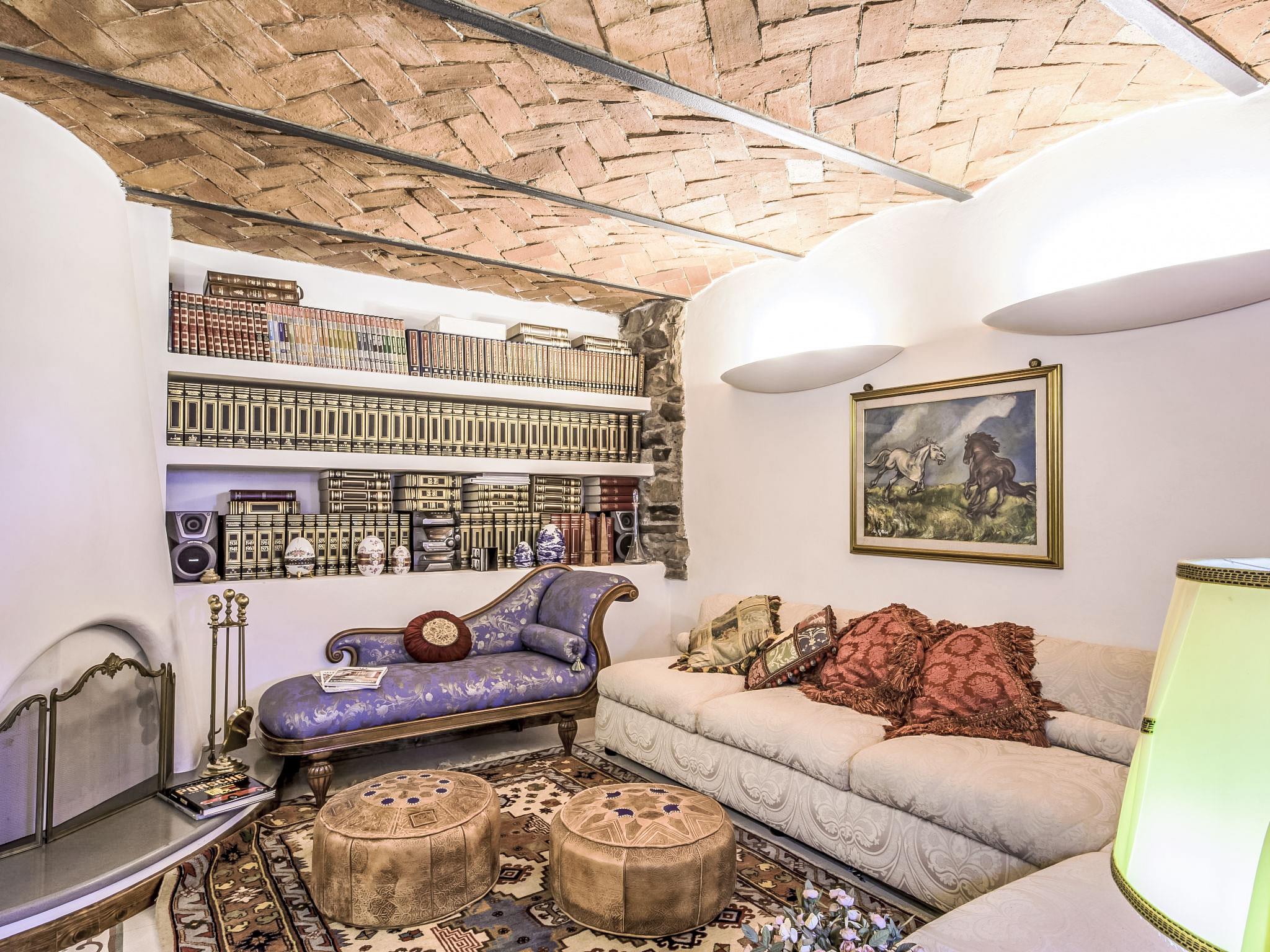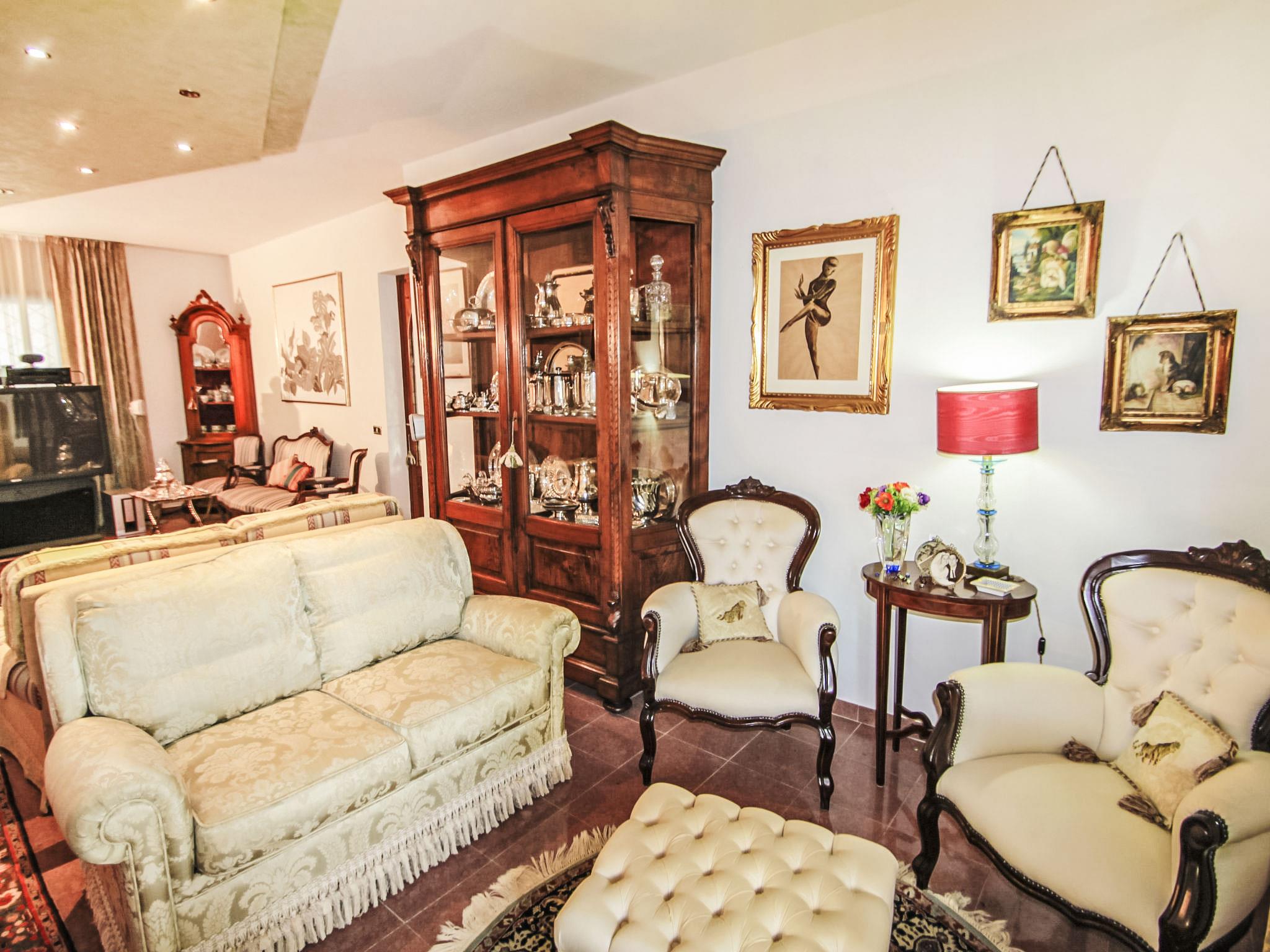 13-room house 650 m2 on 3 levels. Open living room with open-hearth fireplace. Open lounge. Dining room. Kitchen (5 hot plates, oven, dishwasher, toaster, kettle, freezer). Shower/bidet/WC. Upper floor: small lounge. Exit to the veranda. Living room with open-hearth fireplace and satellite TV. Playroom. Living room with open-hearth fireplace and satellite TV. 1 small room with 1 bed. 1 double bedroom with shower. Kitchenette (5 hot plates, oven, dishwasher, freezer). Bath/bidet/WC. 2nd upper floor: 1 room with sloping ceilings, ceiling height 175 - 300 cm with 2 beds. 1 room with 1 bed. 2 double bedrooms. Bath/bidet/WC. Garden. Terrace furniture. Facilities: washing machine. Internet (WiFi, free). Please note: smoke alarm, fire extinguisher. The bathroom on the second floor has a hydromassage bath. IT047014C2ZW4OOC2U