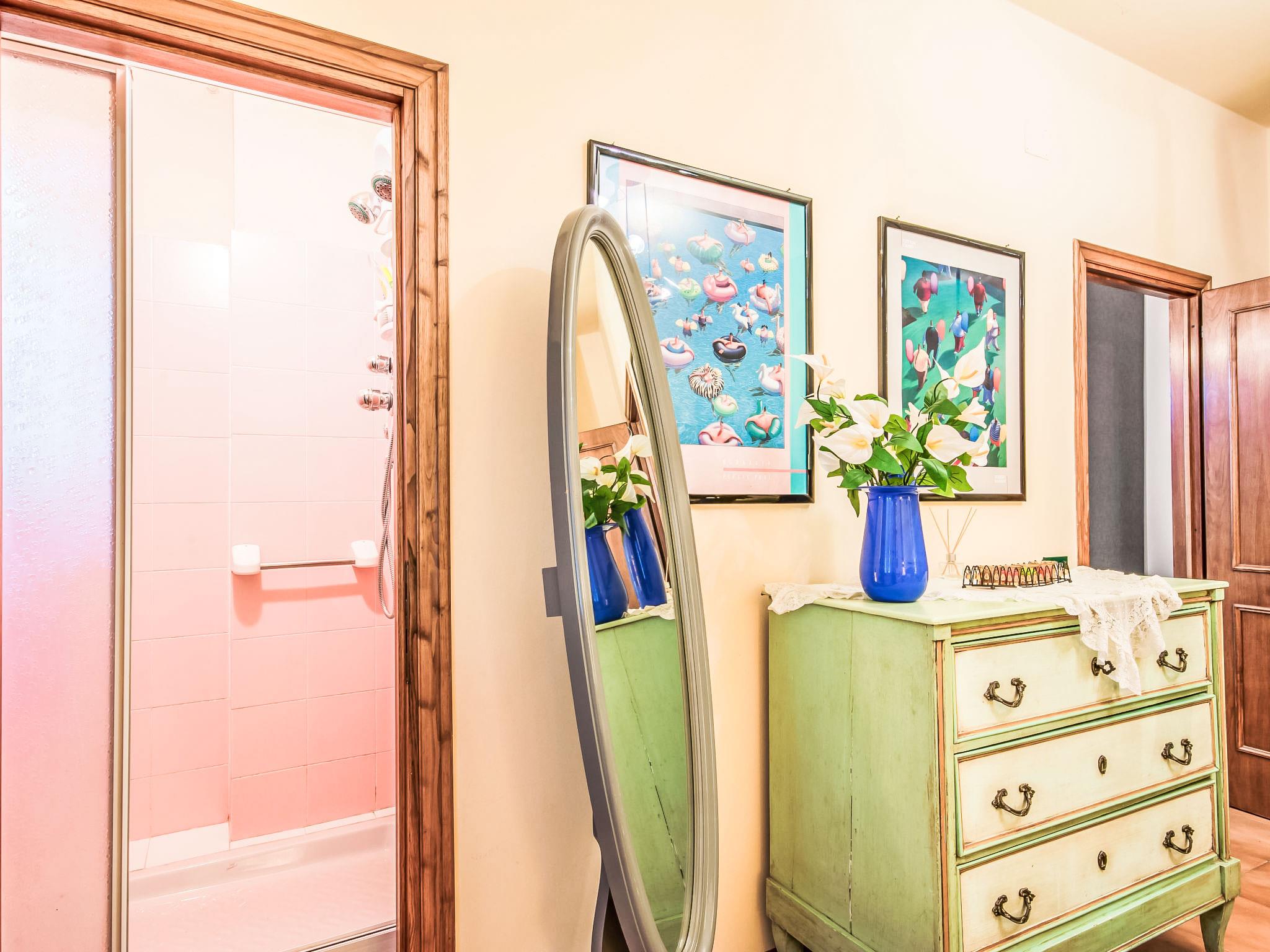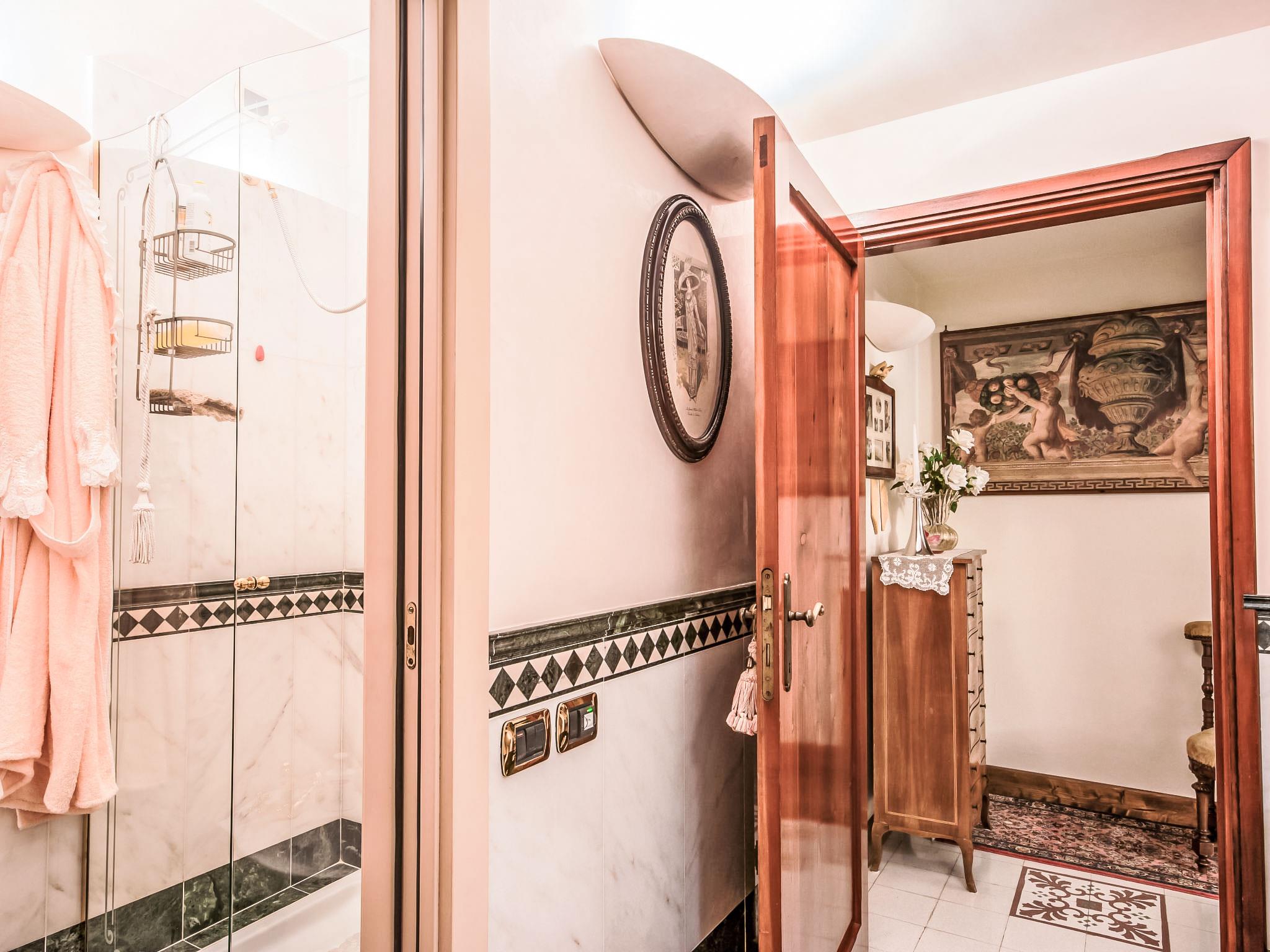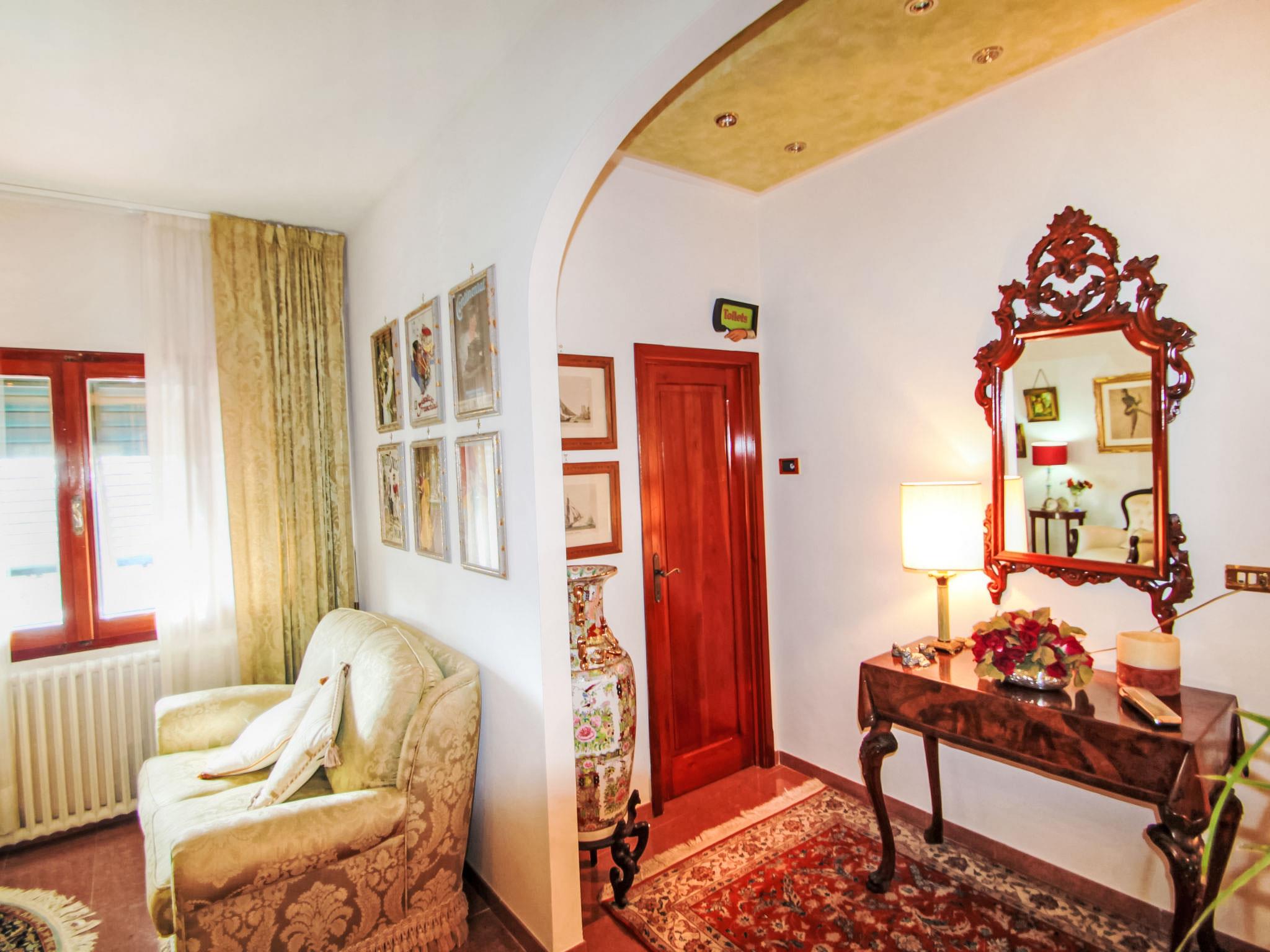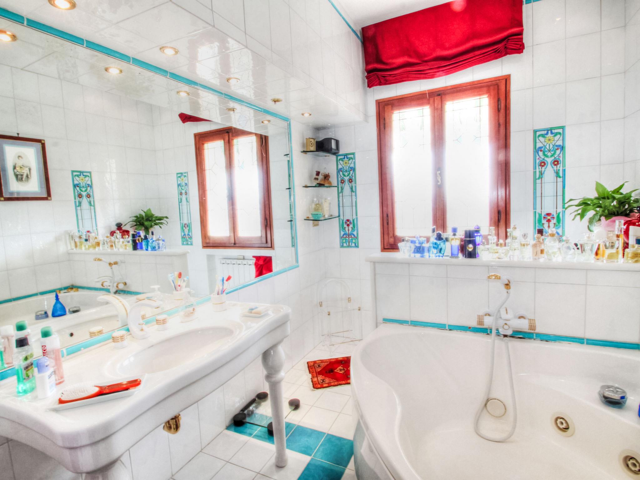 13-room house 650 m2 on 3 levels. Open living room with open-hearth fireplace. Open lounge. Dining room. Kitchen (5 hot plates, oven, dishwasher, toaster, kettle, freezer). Shower/bidet/WC. Upper floor: small lounge. Exit to the veranda. Living room with open-hearth fireplace and satellite TV. Playroom. Living room with open-hearth fireplace and satellite TV. 1 small room with 1 bed. 1 double bedroom with shower. Kitchenette (5 hot plates, oven, dishwasher, freezer). Bath/bidet/WC. 2nd upper floor: 1 room with sloping ceilings, ceiling height 175 - 300 cm with 2 beds. 1 room with 1 bed. 2 double bedrooms. Bath/bidet/WC. Garden. Terrace furniture. Facilities: washing machine. Internet (WiFi, free). Please note: smoke alarm, fire extinguisher. The bathroom on the second floor has a hydromassage bath. IT047014C2ZW4OOC2U