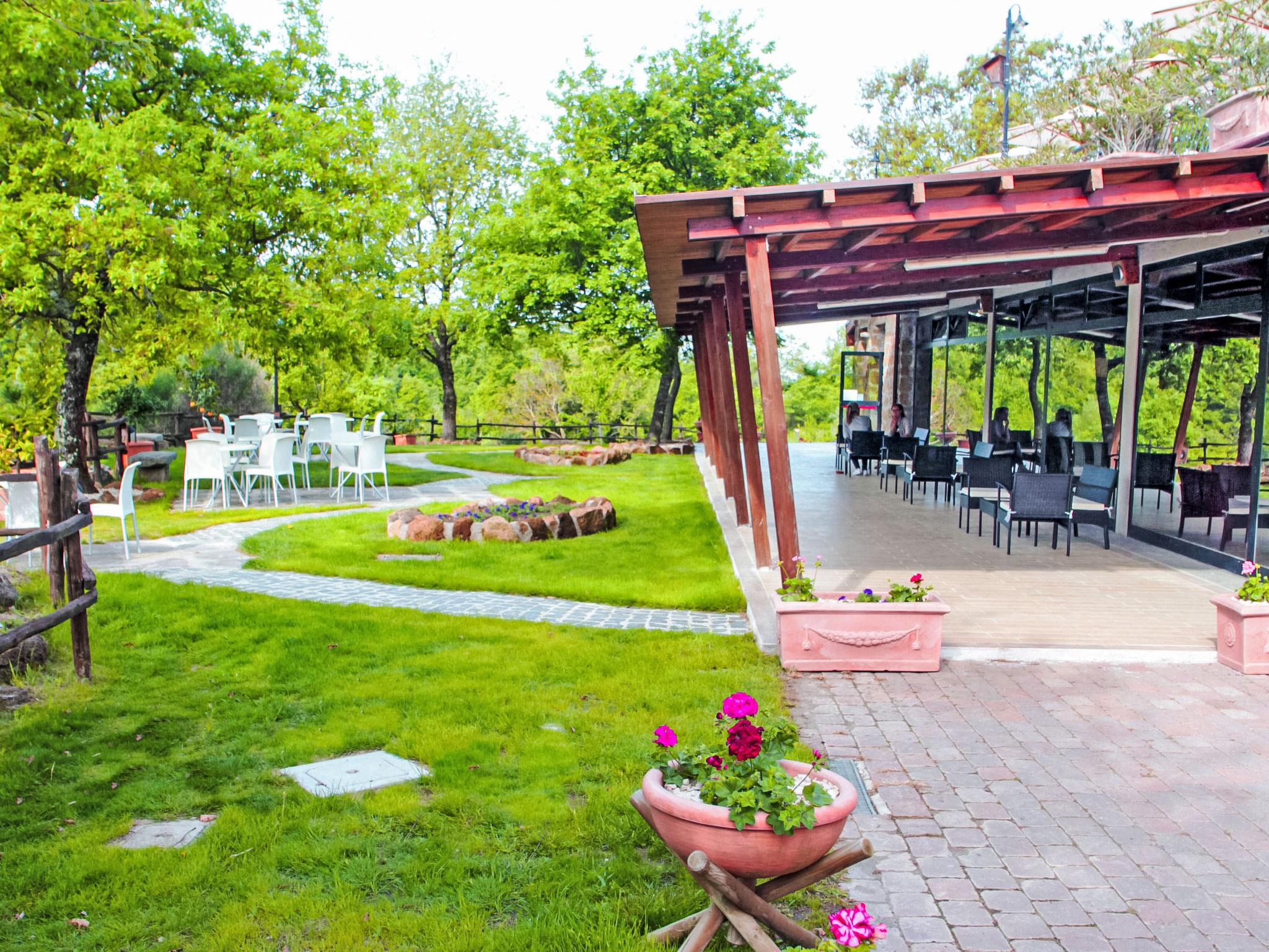 Very beautiful holiday village "Oak". 24 apartments in the residence. In the resort Sorano, 10 km from the centre of Pitigliano, 30 km from the centre of Manciano, in a sunny, elevated position, 60 km from the sea, 25 km from the lake, located by a road. For shared use: park 20'000 m2, beautiful garden to relax, swimming pool kidney-shaped (20 x 8 m, seasonal availability: 01.May. - 30.Sep.). Outdoor shower, table tennis, garden furniture, barbecue, barbecue house, children's playground. In the complex: restaurant, bar, breakfast room with TV, internet access, sauna (extra). Massage (extra). Steam room (all extra), spa area, central heating system, air conditioning, heating available only from 01.Nov. - 15.Apr.. Breakfast possible (extra). Parking on the premises. Shop 1 km, grocery 1 km, restaurant 1 km, sandy beach "Albinia" 59 km, thermal baths 3 km, bathing lake "Bolsena" 25 km. Golf course (18 hole) 35 km, riding stable 15 km. Nearby attractions: Saturnia 34 km, Orvieto 46 km, Argentario 60 km. Please note: suitable for families. The complex has night security. Residence with electric gates. The photograph shows a typical example. In the solarium there is another swimming pool with waterfall (10x5 90cm).Pool towels available: 10,00€ per week per person.