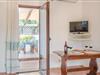 Træd ind i en rummelig stue med en dobbelt sovesofa, perfekt til ekstra gæster. Nyd dine yndlingsprogrammer på tv'et, saml dig omkring spisebordet til måltider, eller slap af i det hyggelige opholdsområde. Stuen er udstyret med aircondition, hvilket sikrer en behagelig atmosfære uanset vejret. Det åbne køkken er fuldt udstyret, så du nemt kan tilberede lækre hjemmelavede måltider. Moderne apparater og rigelig bordplads gør madlavning til en fornøjelse. Kun en kort gåtur på 450 meter til havet kan du nemt bruge dine dage på at sole dig i solen, svømme eller nyde vandsport. Lokale butikker, restauranter og attraktioner er også inden for rækkevidde, hvilket gør denne lejlighed til en fantastisk base for at udforske området. Nyd dine måltider på verandaen, hvor et spisebord venter. Nyd din mad i den friske luft, eller læn dig tilbage på liggestolene og nyd solen. Dette udendørsområde er perfekt til morgenkaffe, aftencocktails eller blot at slappe af med en bog. Lejligheden har parkeringsfaciliteter, hvilket giver bekvemmelighed og ro i sindet for dem, der rejser med et køretøj.