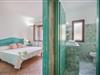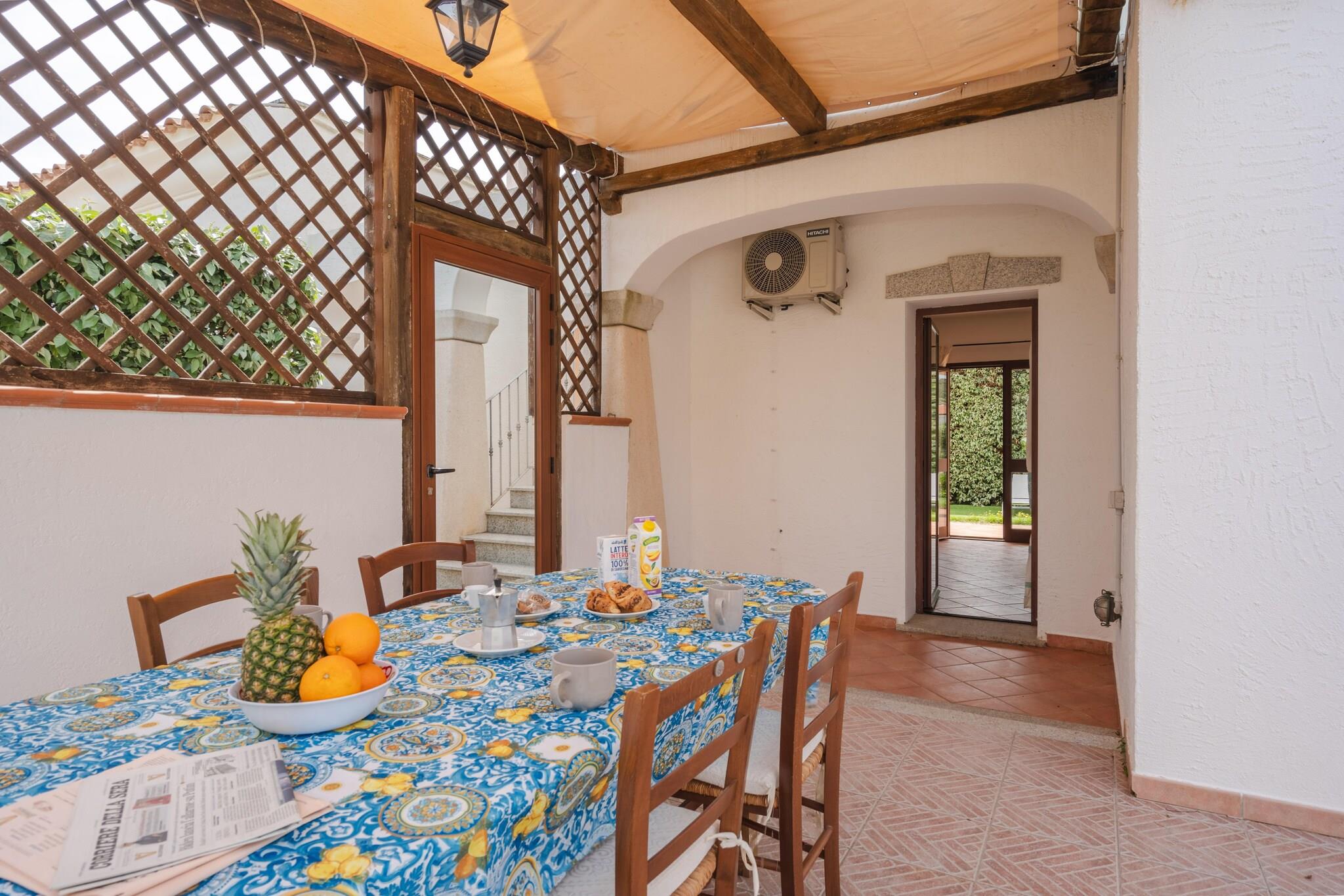 På 1. etage: (Stue(dobbeltsovesofa, Fjernsyn, spisebord, sofahjørne, klimaanlæg), åbent køkken(kogeplade, emhætte, ovn, køle-fryseskab), soveværelse(dobbeltseng), soveværelse(køjeseng), badeværelse(bruser, håndvask, toilet, bidet, vaskemaskine), veranda(spisebord, liggestole)) parkering