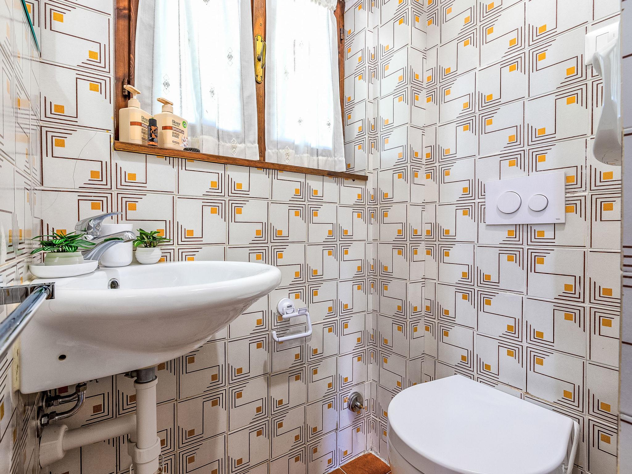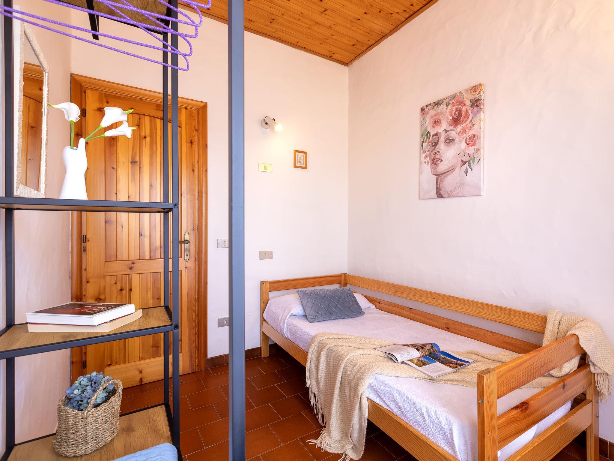 5-room house 50 m2 on 2 levels. Cosy furnishings: living/dining room with 1 sofabed and TV (flat screen). Exit to the terrace. Small kitchen (4 hot plates, oven, toaster, kettle). Shower/bidet/WC. Upper floor: 1 double bedroom. 2 rooms, each room with 1 bed. Shower/bidet/WC. Air-conditioning, forced-air heating. Heating not available in all rooms. Small balcony, large terrace roofed. Terrace furniture, barbecue, deck chairs, sitting area. Facilities: washing machine, iron, hair dryer. Maximum 1 pet/ dog allowed. IT090047C2000T4071