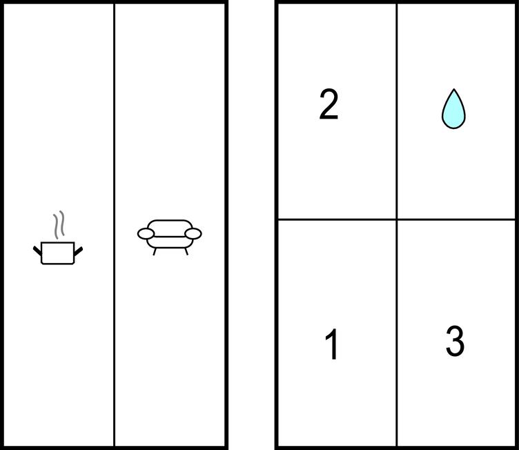Køkken - 1 Soveplads. (Sofa, madras eller lignende).