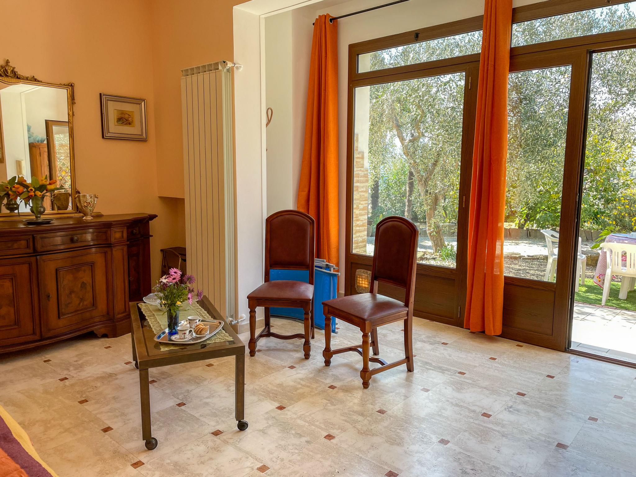 Beautiful apartment house detached. 4 apartments in the property. 1.2 km from the centre of Poggi, on the outskirts, 4 km from the centre of Imperia, 28 km from the centre of San Remo, in the residential district, 3.5 km from the sea, in the countryside. For shared use: large garden 5'000 m2 (fenced) with plants and trees. Boccia, patio, garden furniture. In the complex: table football. Shop 1.2 km, supermarket 4 km, bus stop 500 m, sandy beach "Imperia Borgo Prino" 3.5 km. The owner does not accept any youth groups. Local sale of farm products. Please note: the owner lives in the same residence.