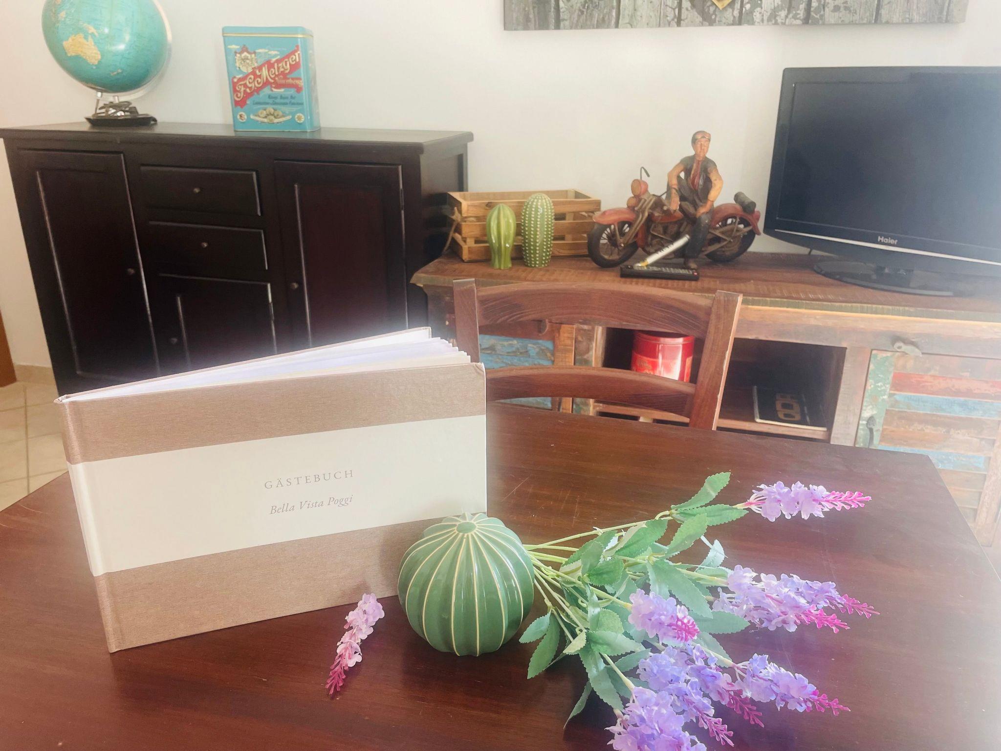 On the large terrace & natural garden (approx. 700 square metres) you can relax or play badminton, etc. There is also a table football table in the middle of the olive trees with a view of the sea.